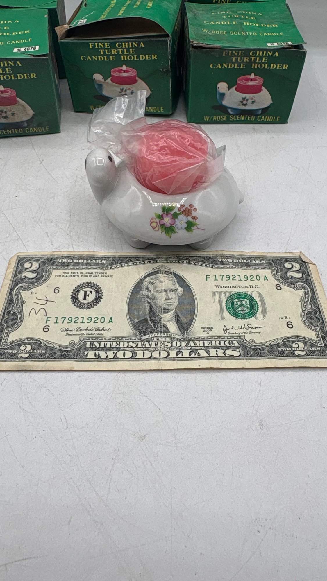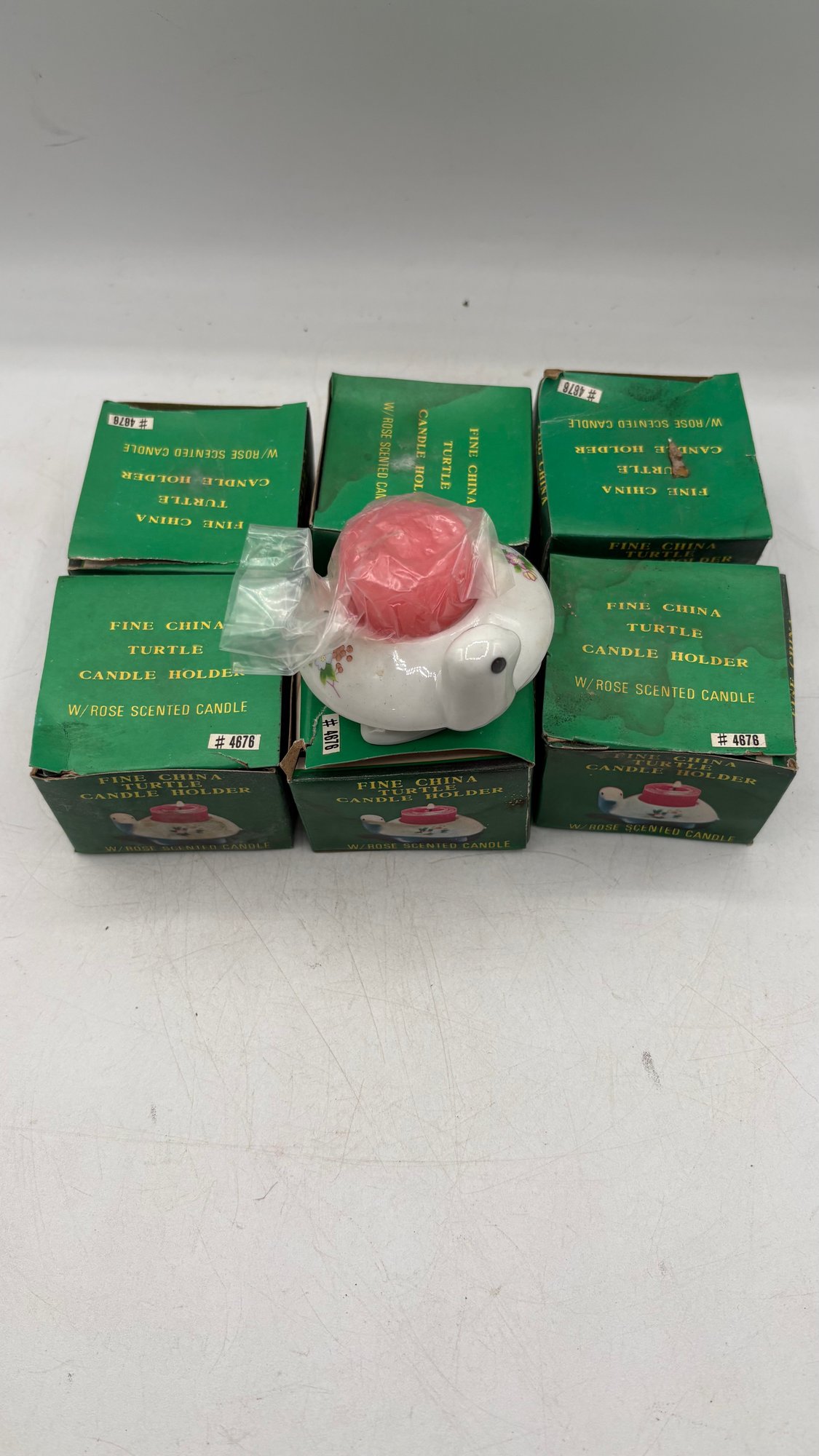Lot of 6 charming fine china turtle candle holders, each paired with a rose-scented candle. These decorative pieces are brand new, perfect for gifting, display, or adding a whimsical touch to your home décor.