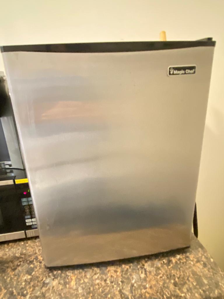 Magic Chef Mini Fridge In Stainless Look Model # MCAR24SE2