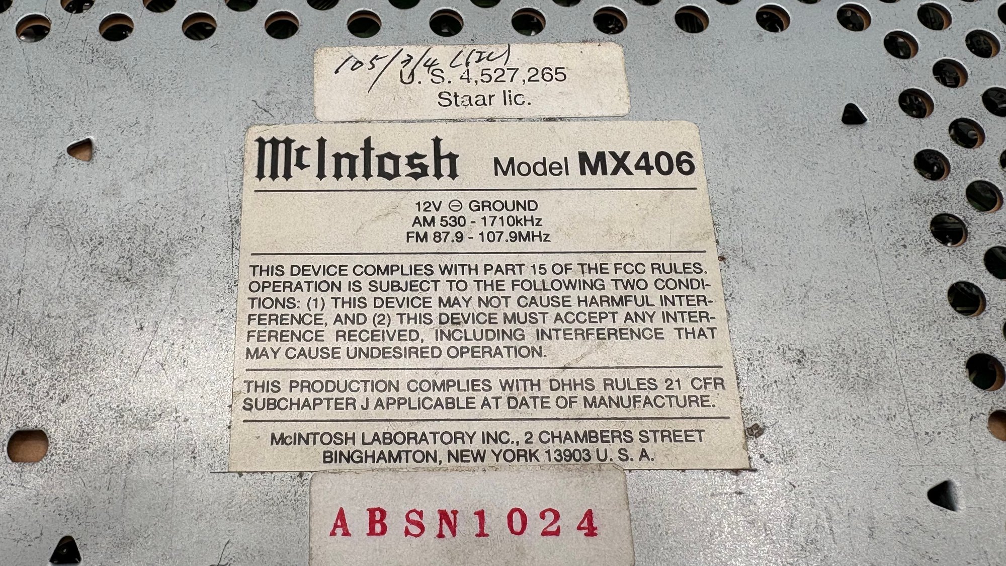 Up for sale is a McIntosh Model MX406 Audio/Video Control Center, a high-quality home audio preamplifier from the renowned McIntosh lineup. Known for their premium build quality and signature sound performance, McIntosh components are highly sought after by audiophiles and collectors.