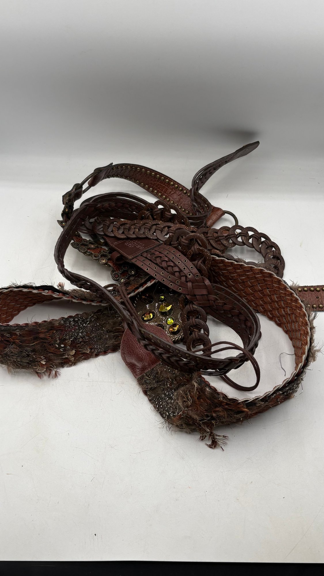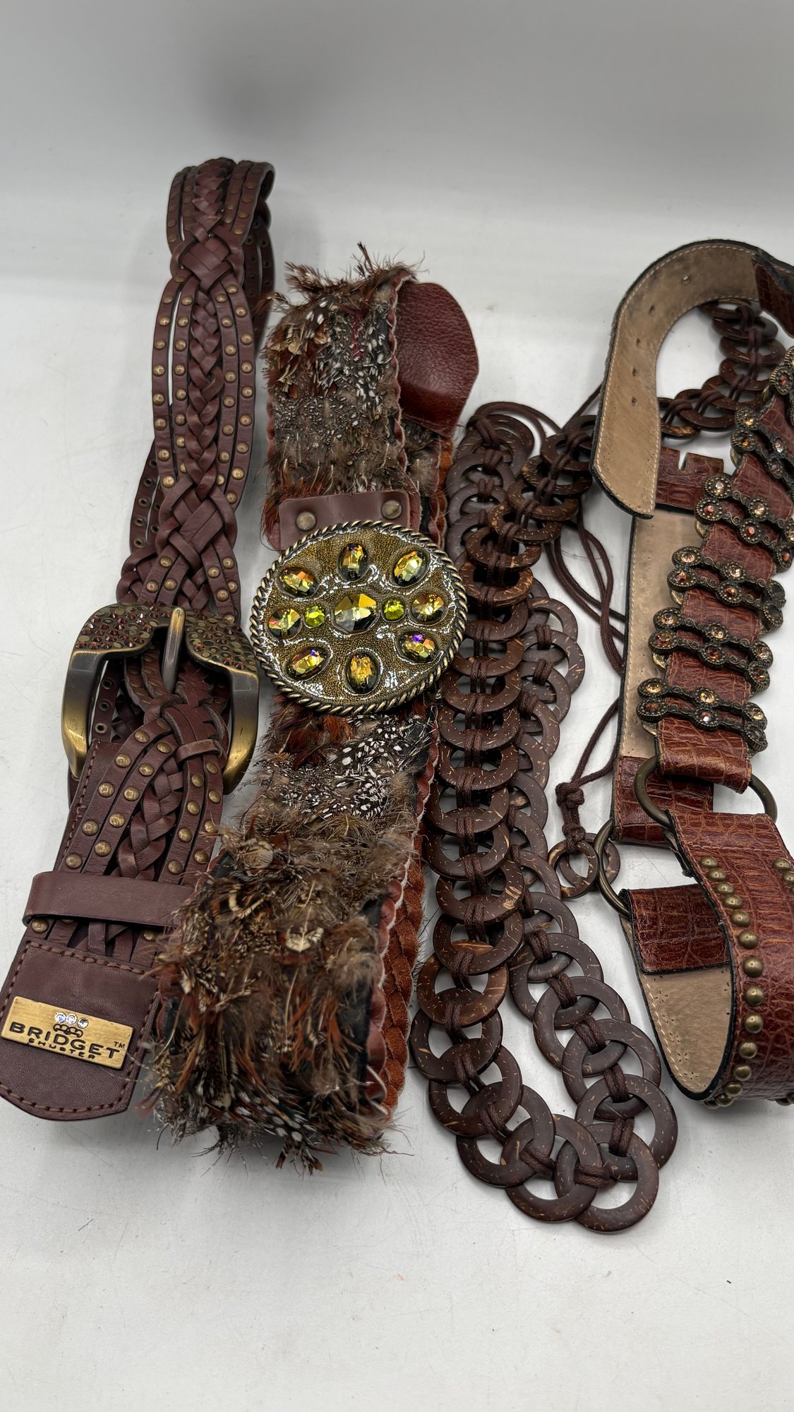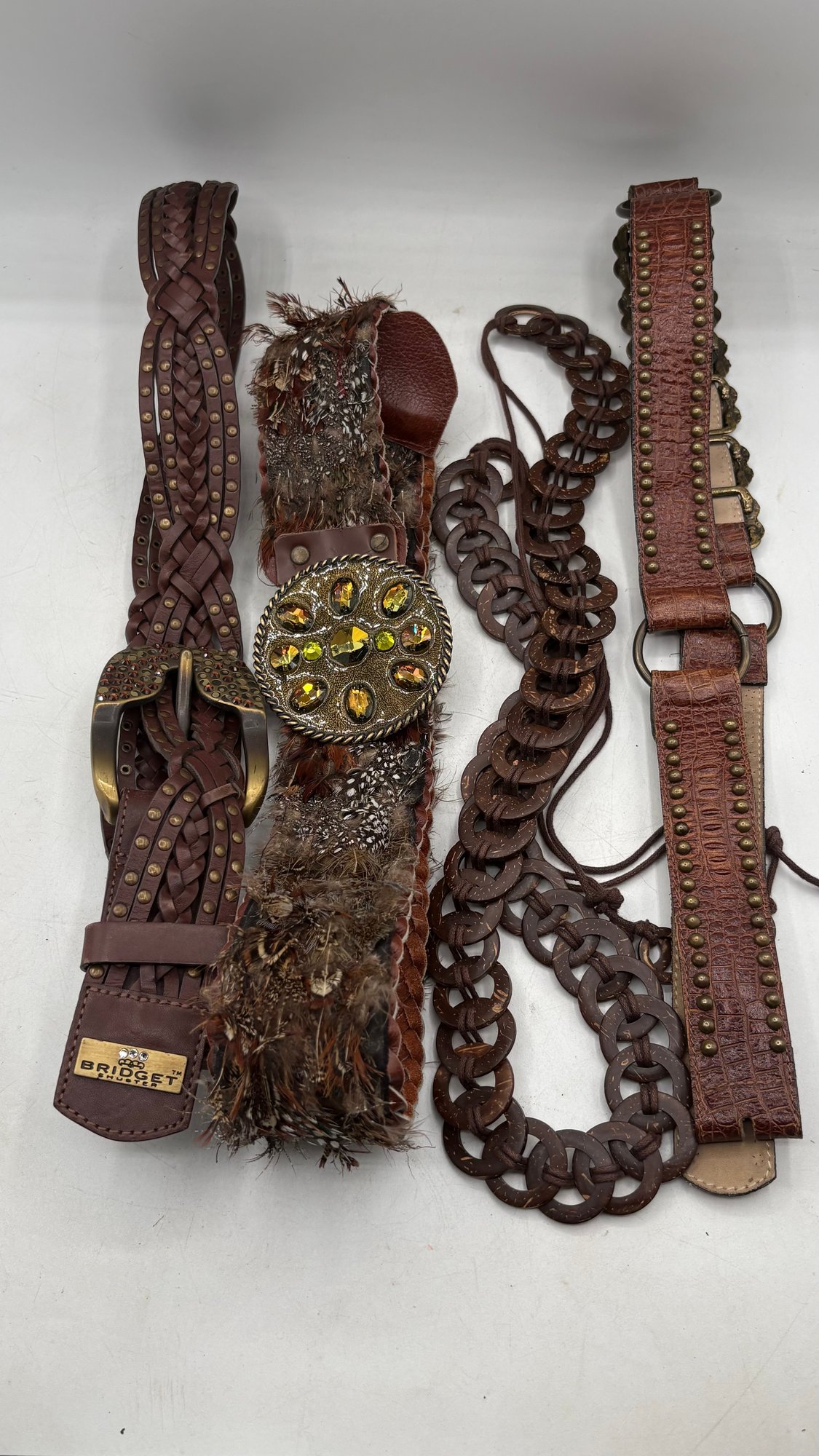 Group of four leather belts offered together as a mixed lot. Includes a variety of styles, colors, and buckle designs, suitable for everyday wear, resale, or wardrobe use.
