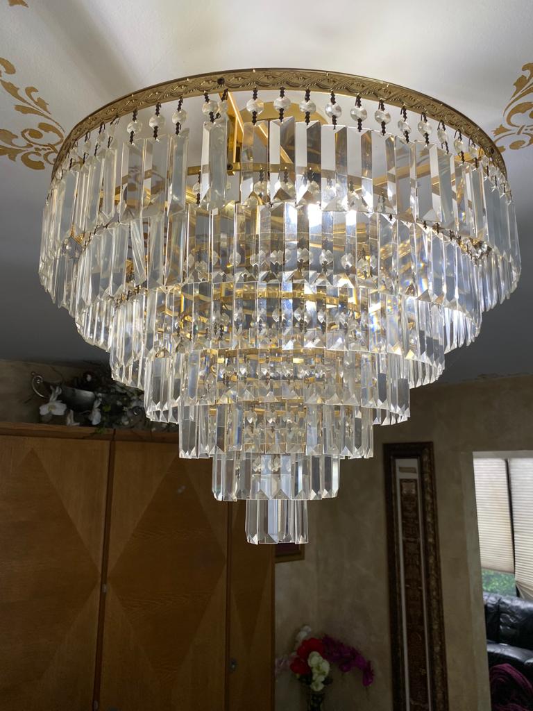 Gold And Crystal Convertible Chandelier 9 Lights good working condition
