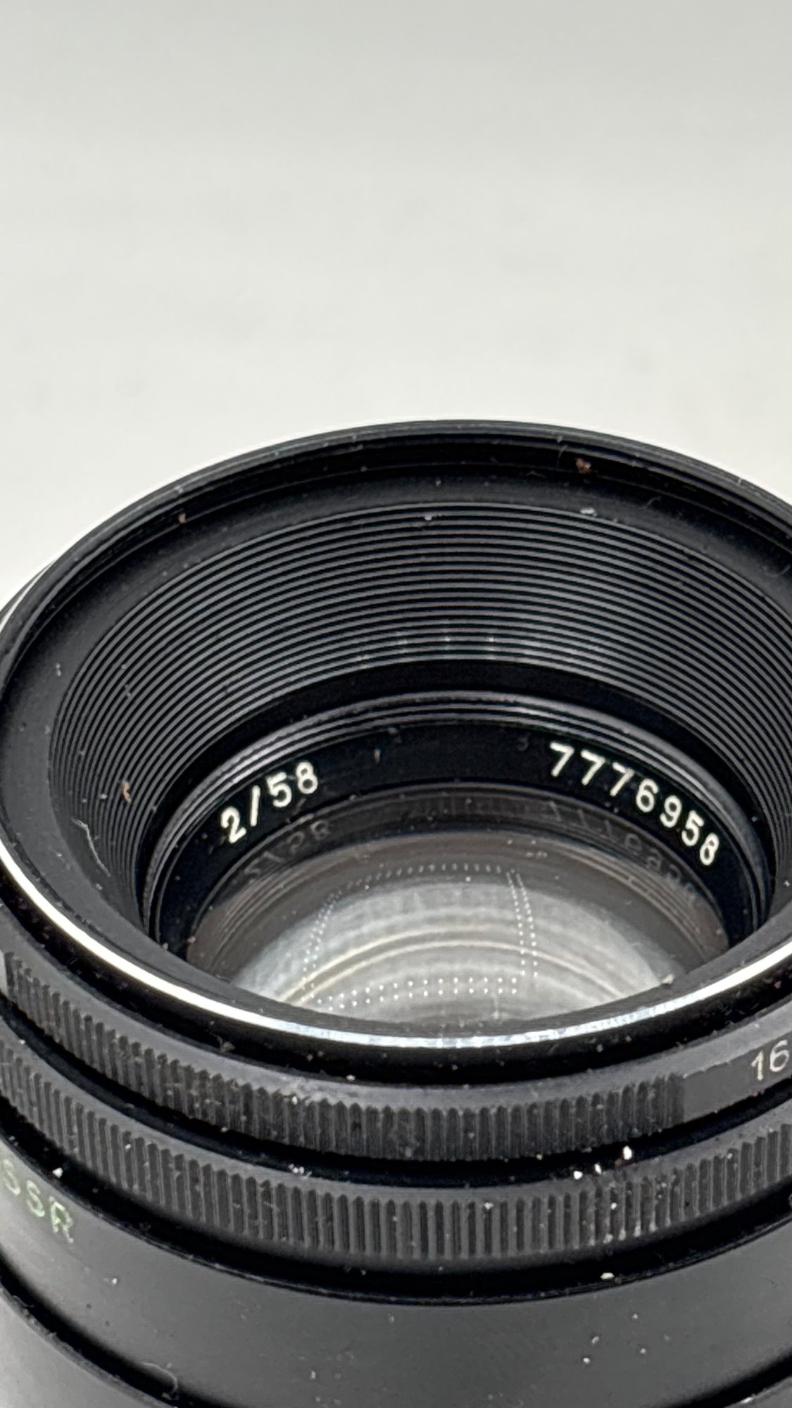 Includes a 58mm f/2 lens (Helios-style lens typical for this model).