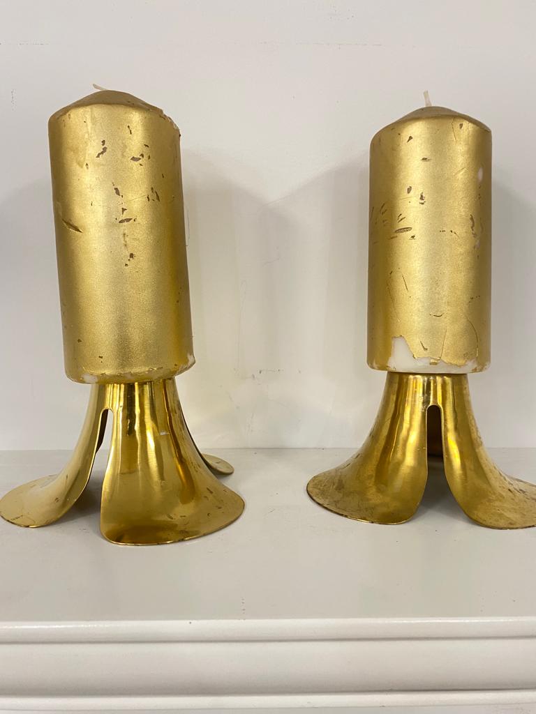 Set of 2- 2'' Gold Cylinder Candles With A Gold Candle Holder