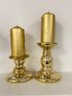 set of 2- 2'' Gold Cylinder Candles With A Gold Candle Holder