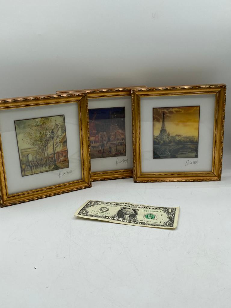 Set Of 3 Small Framed Paris Street Scene Painting signed Paris 2009
