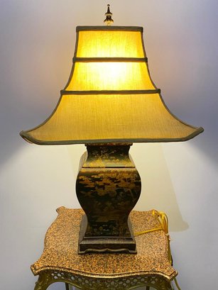 Unique Wood Hand Painted Asian Table Lamp