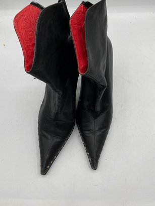 Vis A Vie Black Leather Studded Stiletto Booties Size 7 M