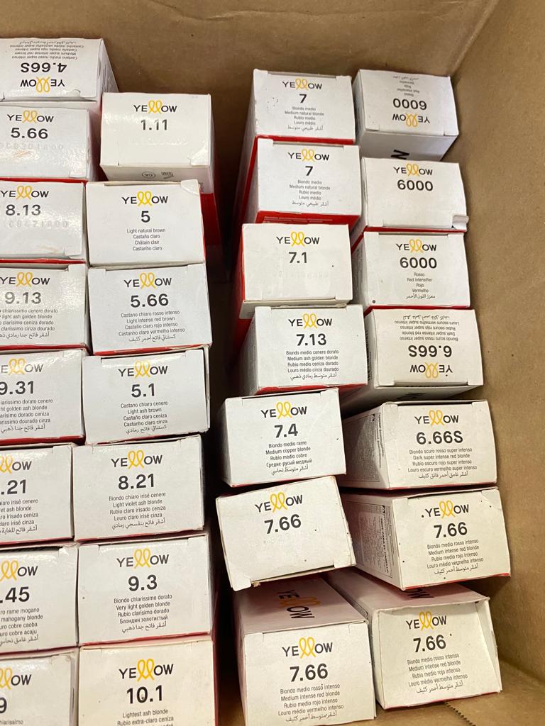 Yellow 25 Pieces Color Argan Oil & Aloetrix Brand Manufacturing Box, Permanent cosmetic coloring cream.