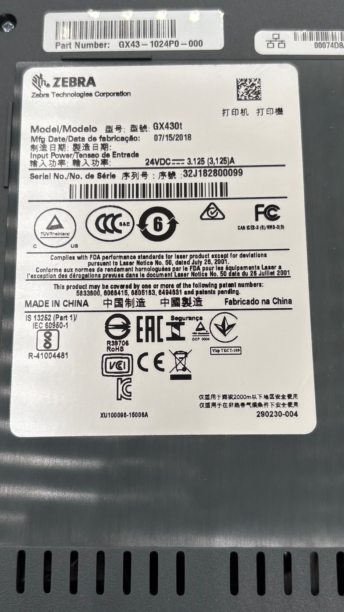 Zebra GX430T Desktop Barcode Label Printer (Model GX430T)