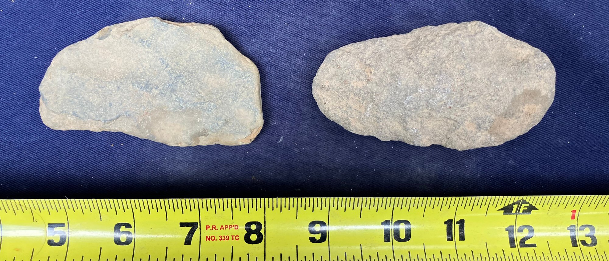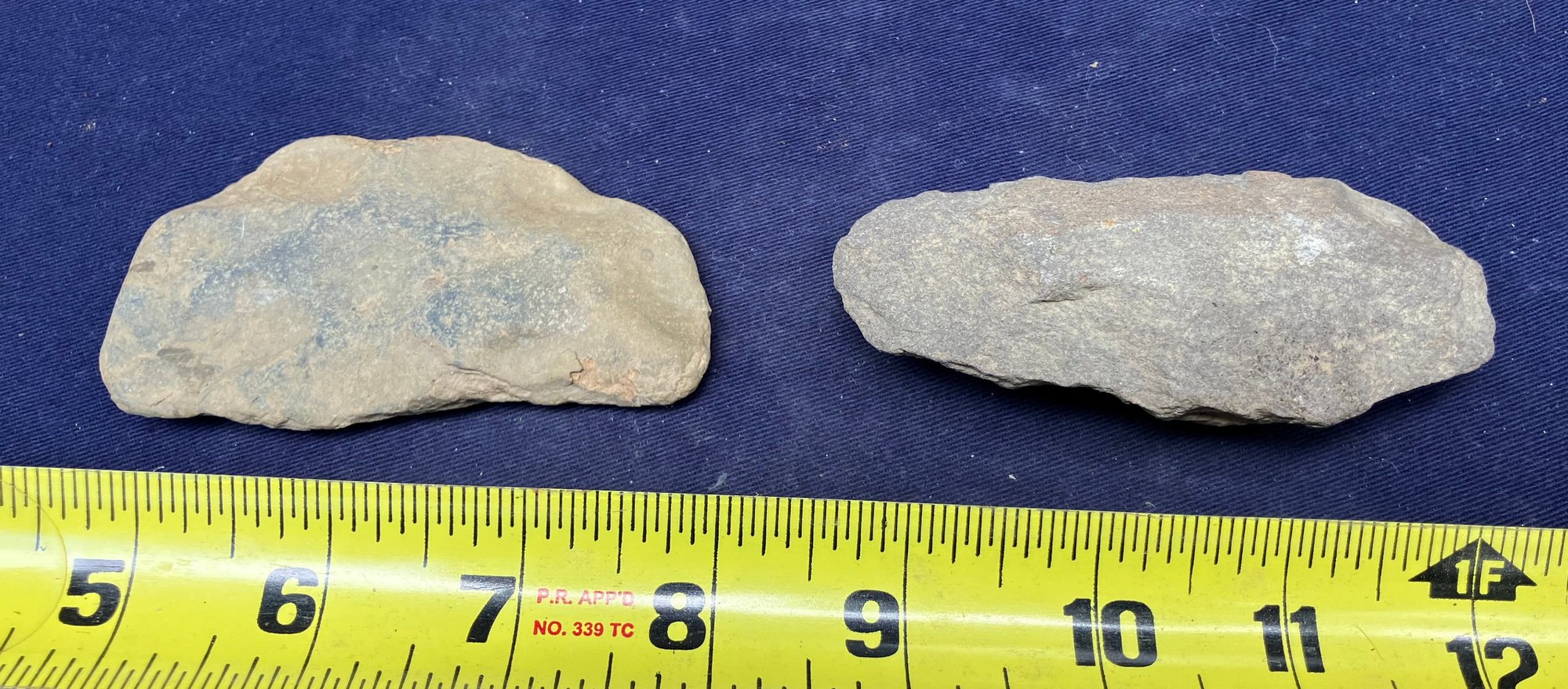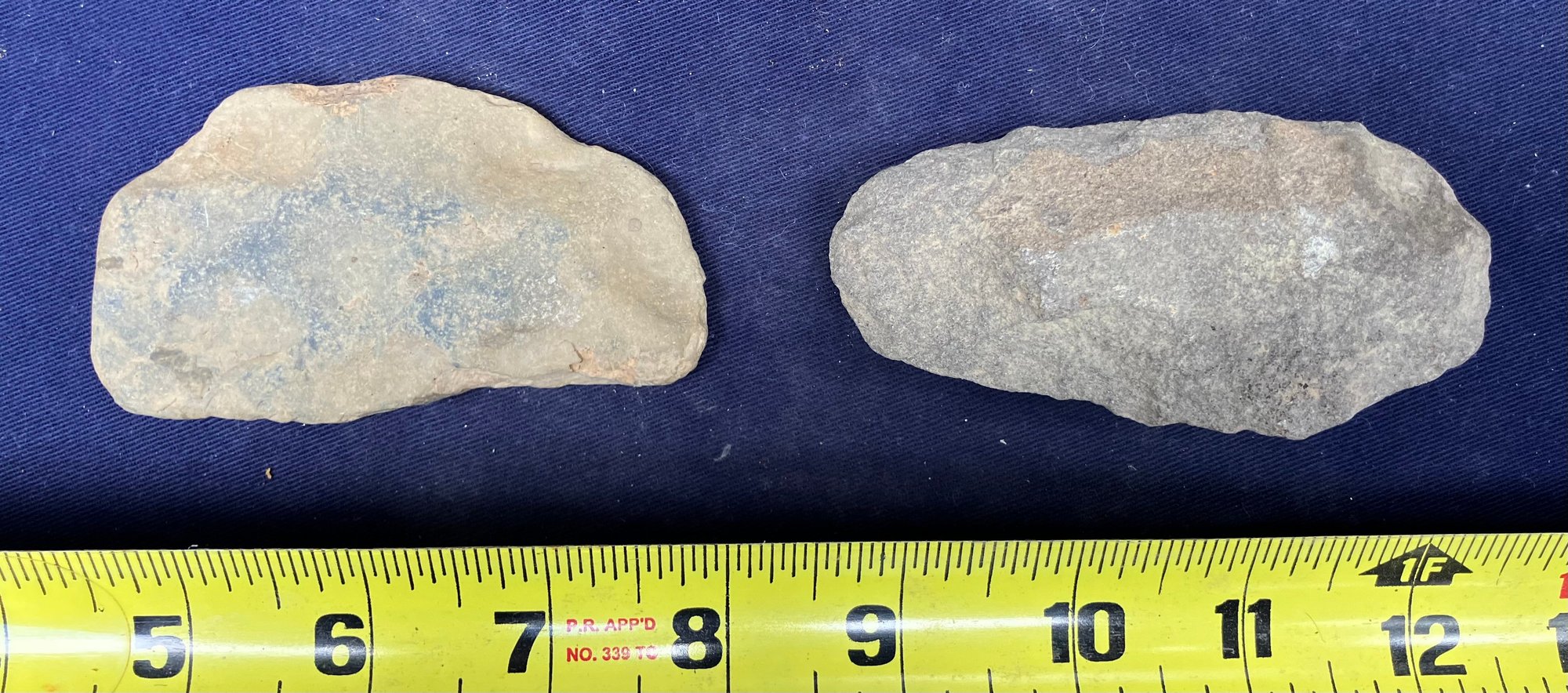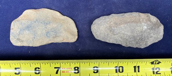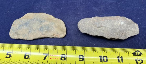 Found at a Native American dig site. Both artifacts show signs of ancient hand knapping and wear from human.