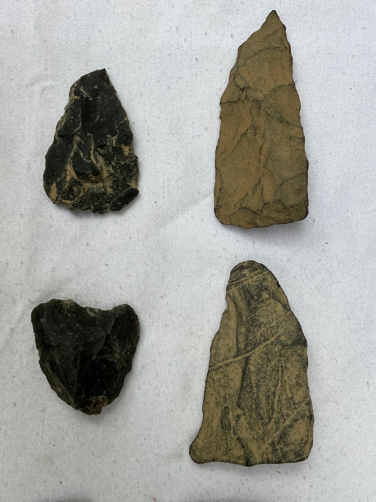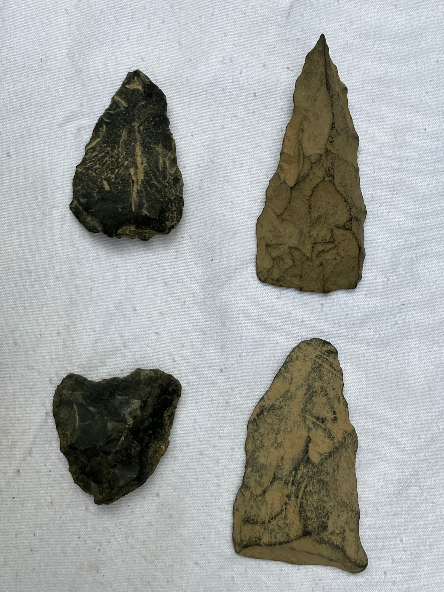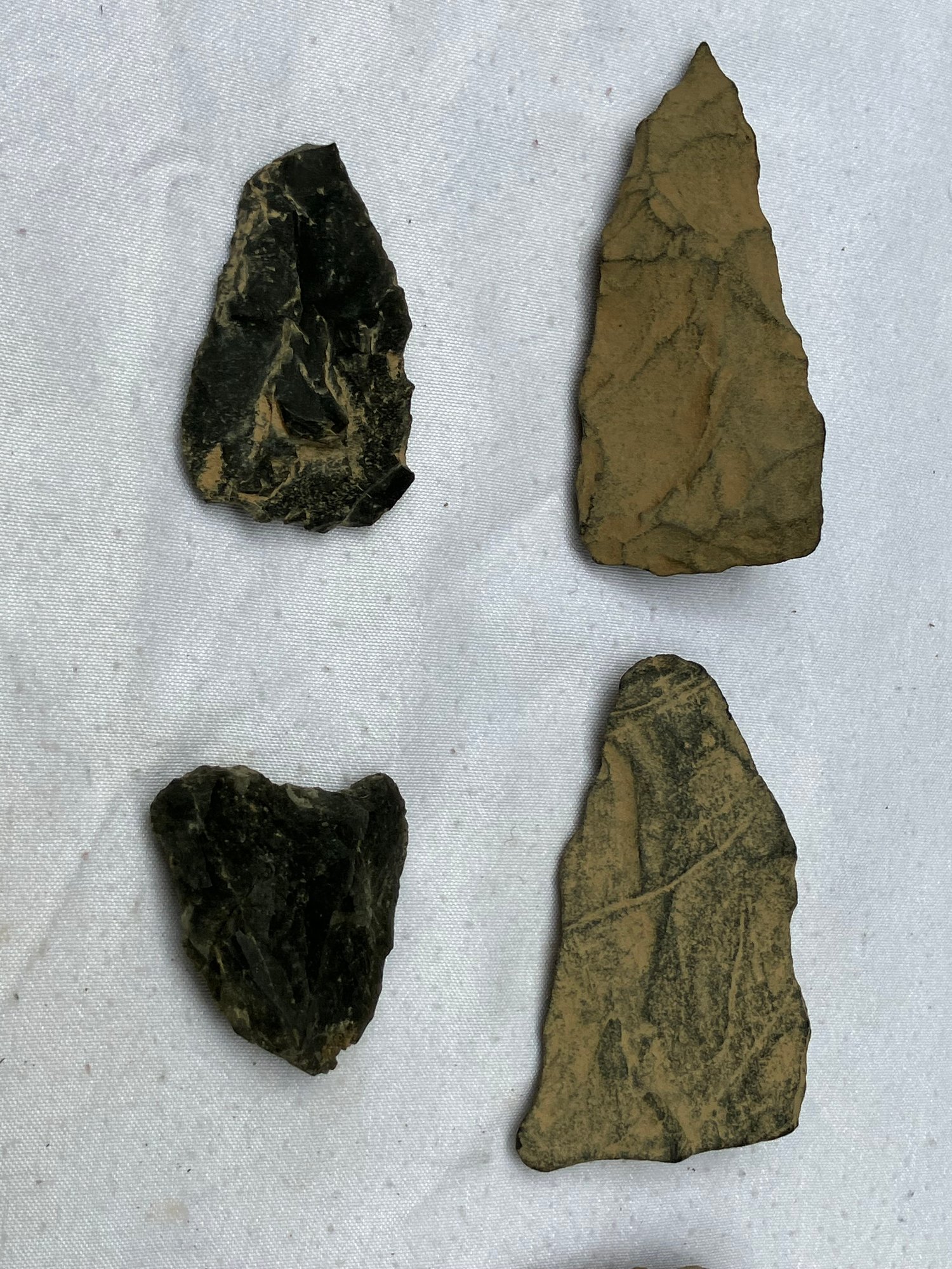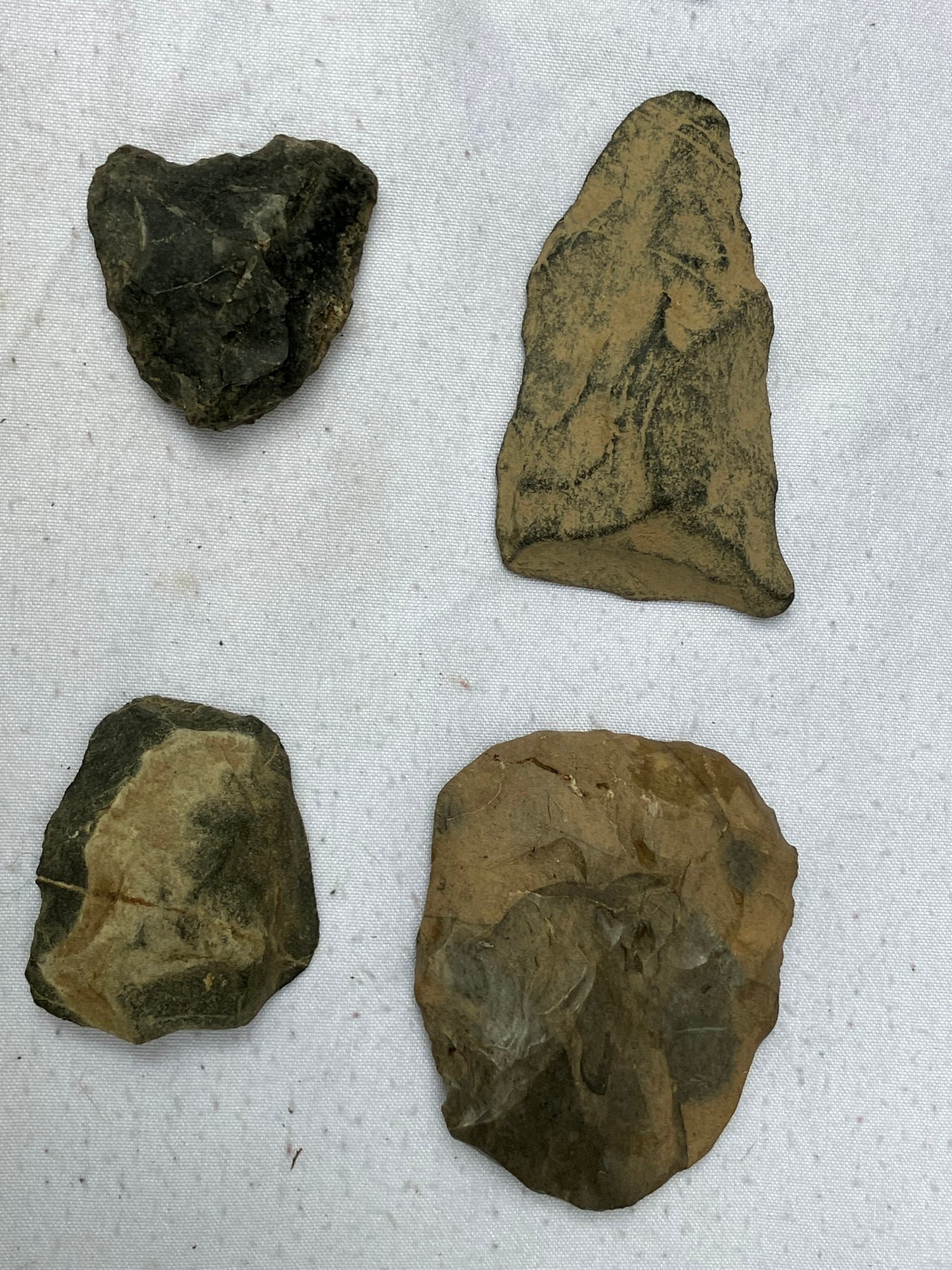 Found at a Native American dig site. Assorted tools consisting of scrapers and bi-facial blades. One large blade has human made scratch marks on both sides. Some are made of flint and Chirt.