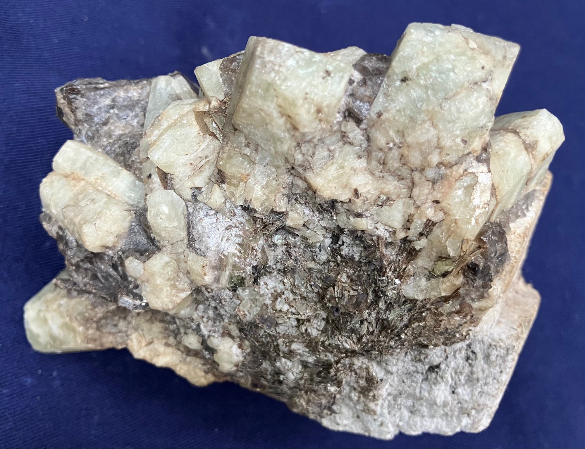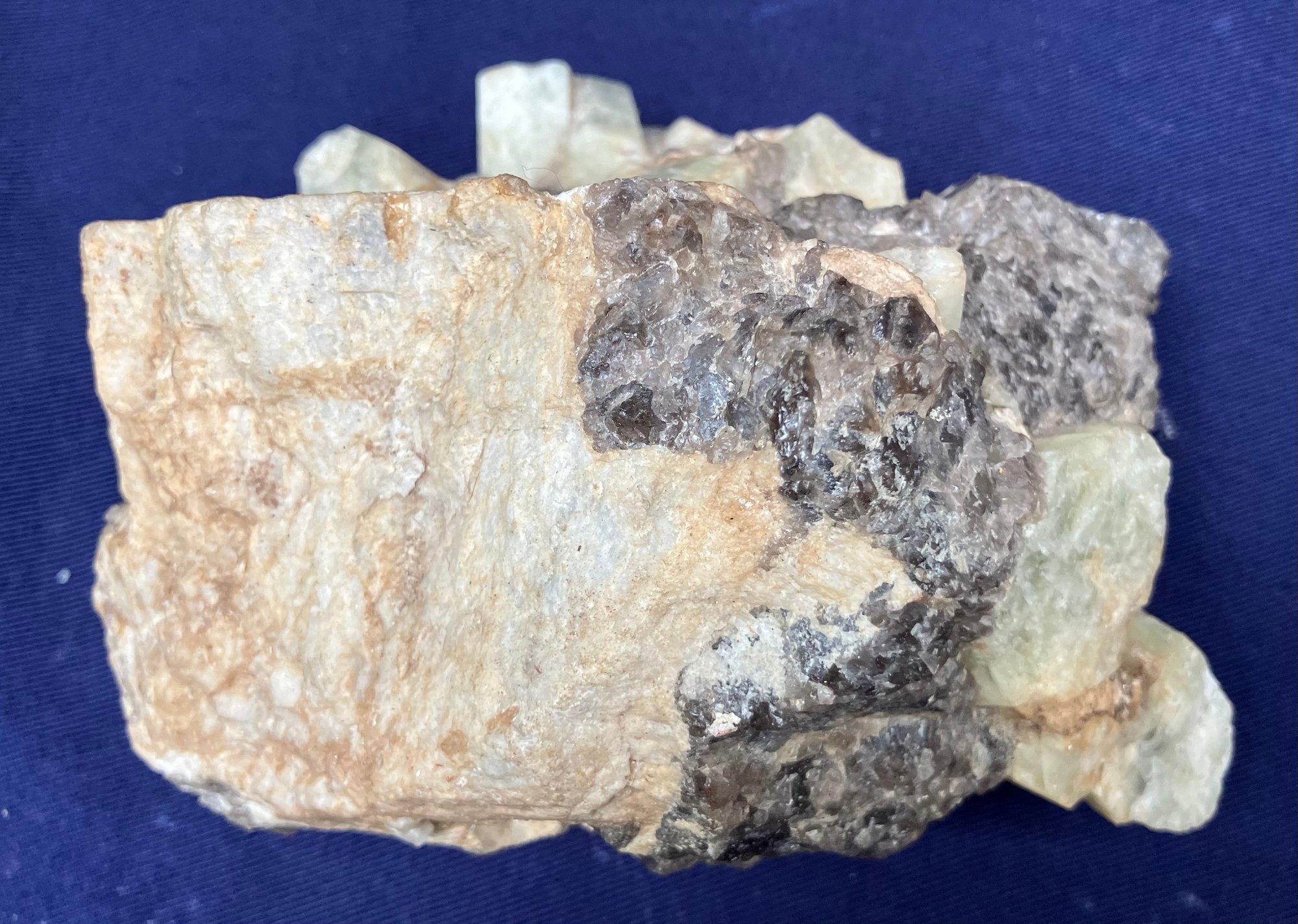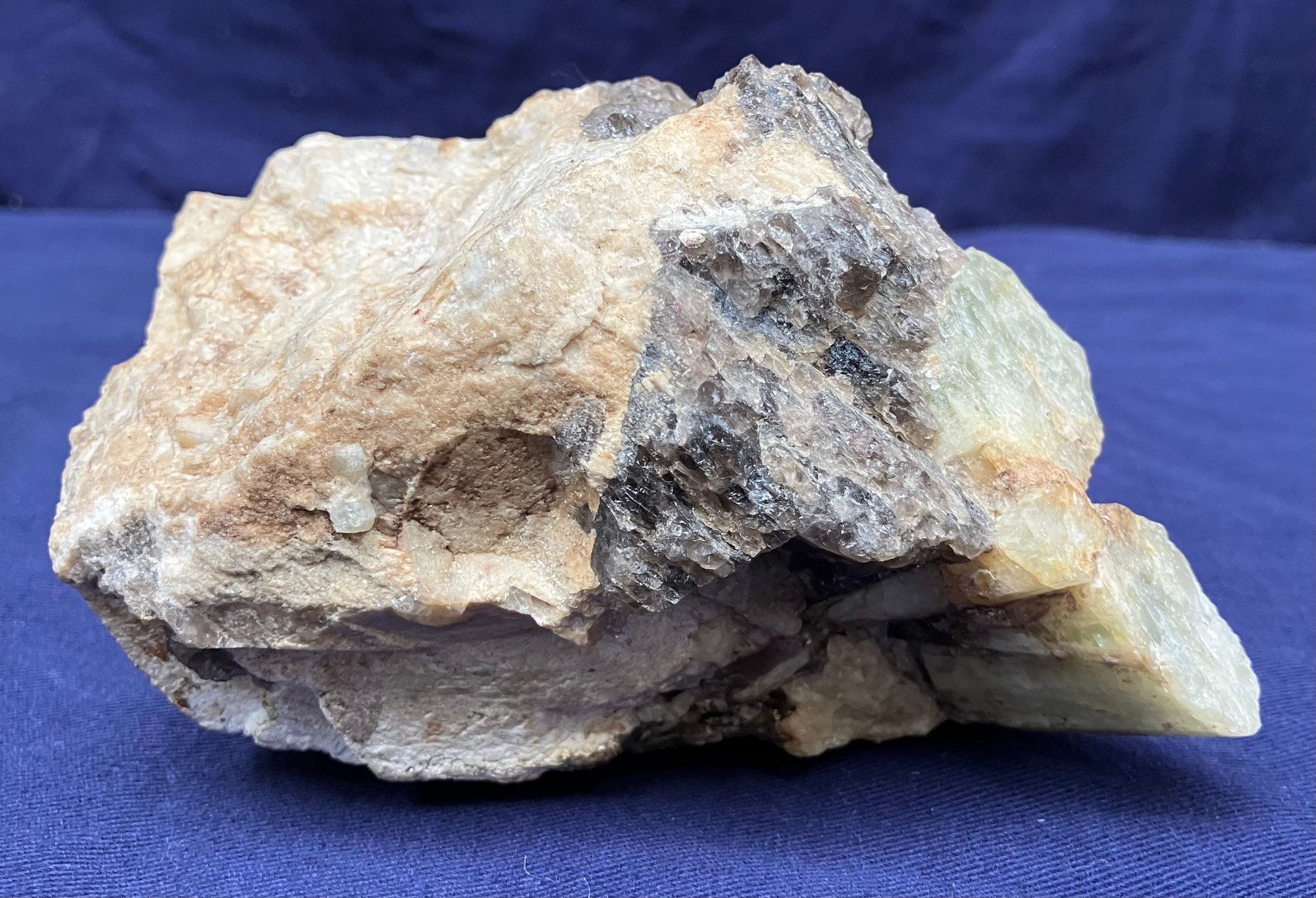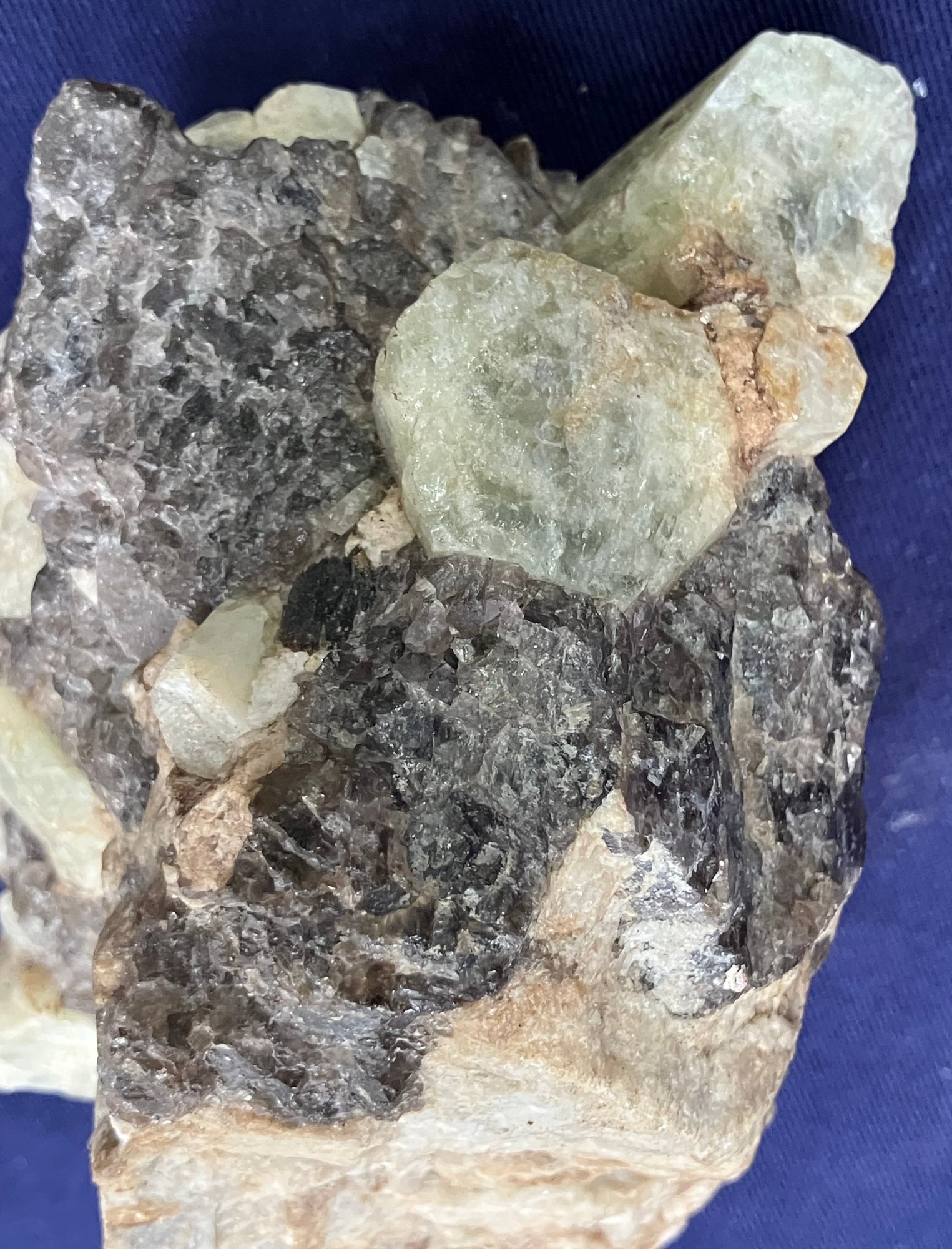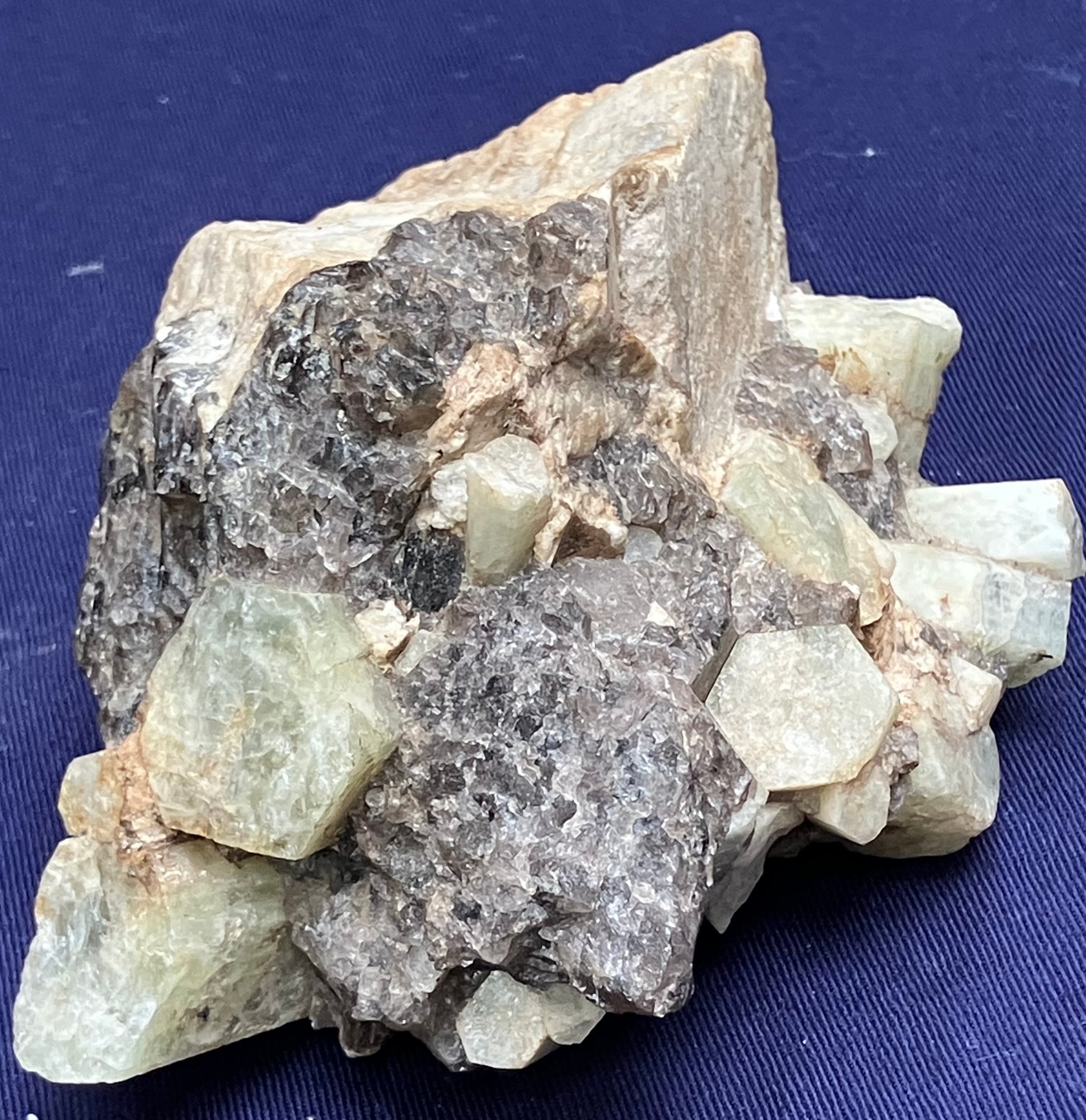 Alstead, New Hampshire Green beryl in matrix of black tourmaline and felspar. Measures: 2 1/4” tall x 5 1/4” long x 3 1/4” wide. Weighs: 1 pound 4 ounces.