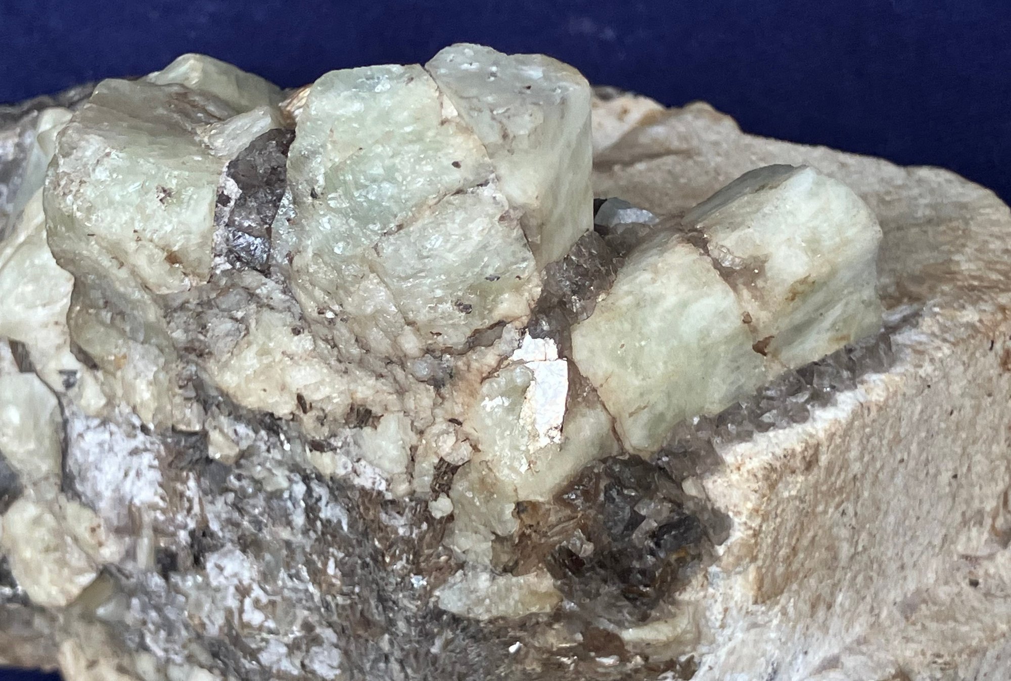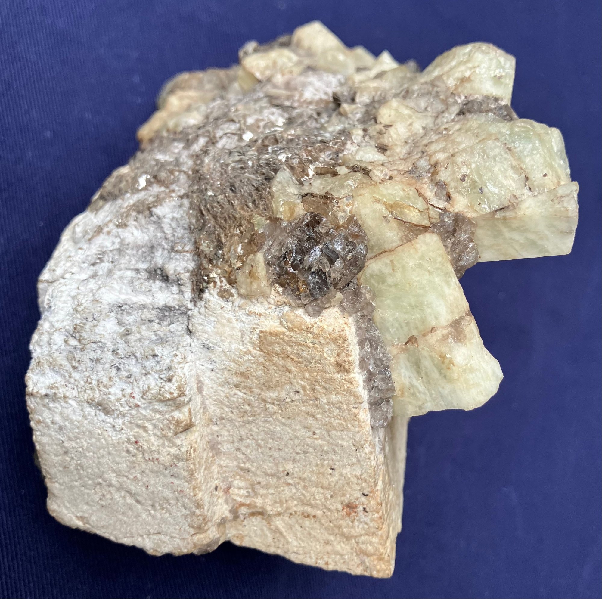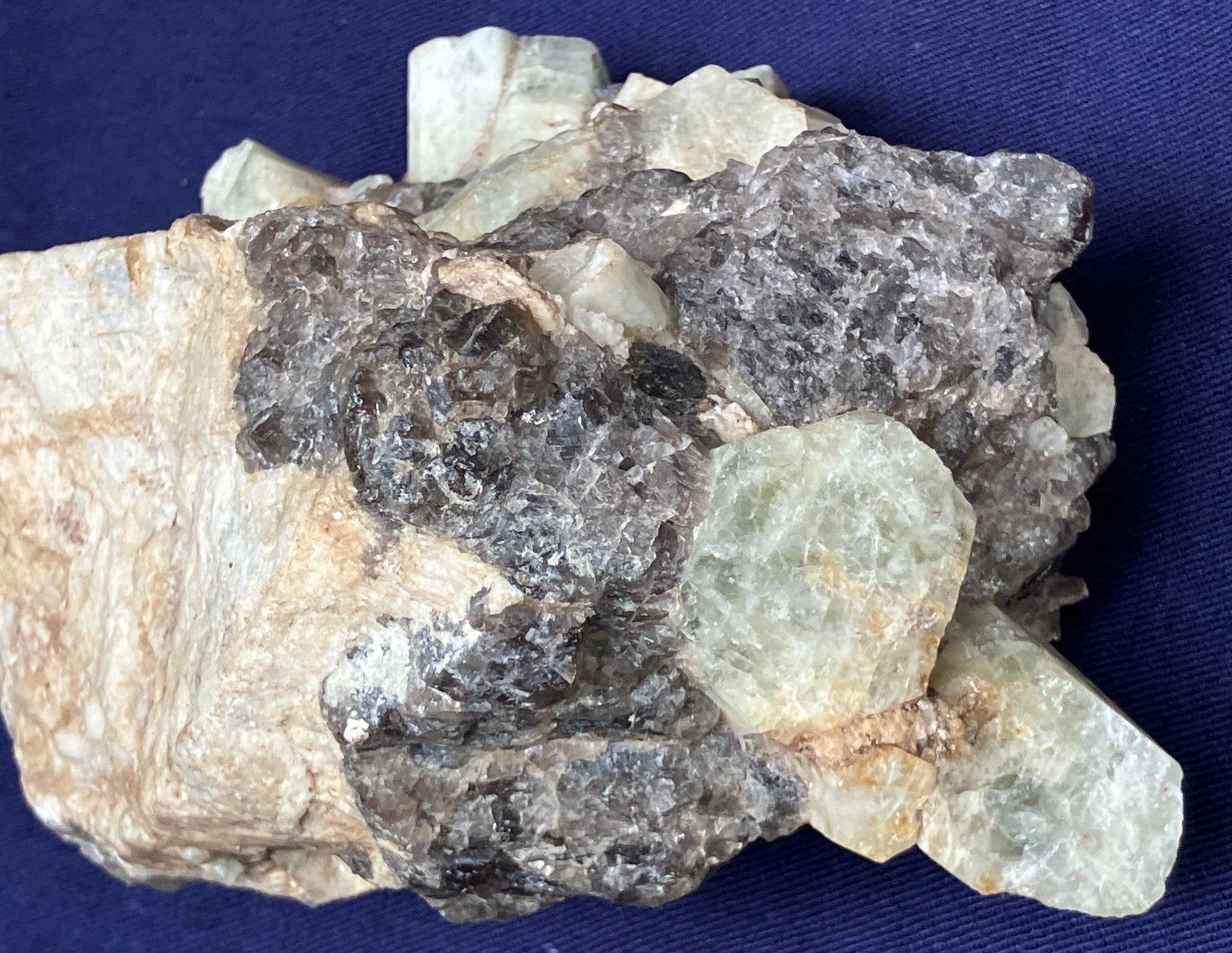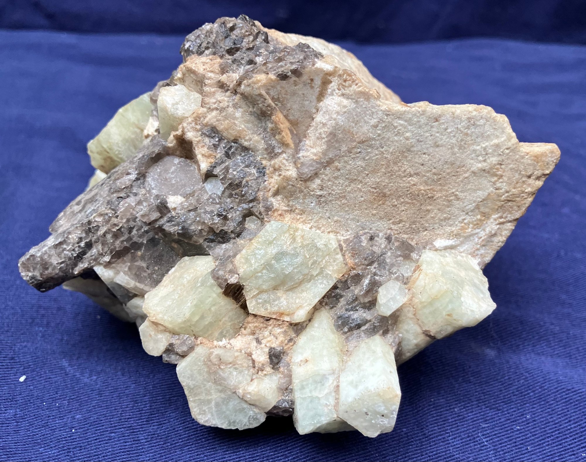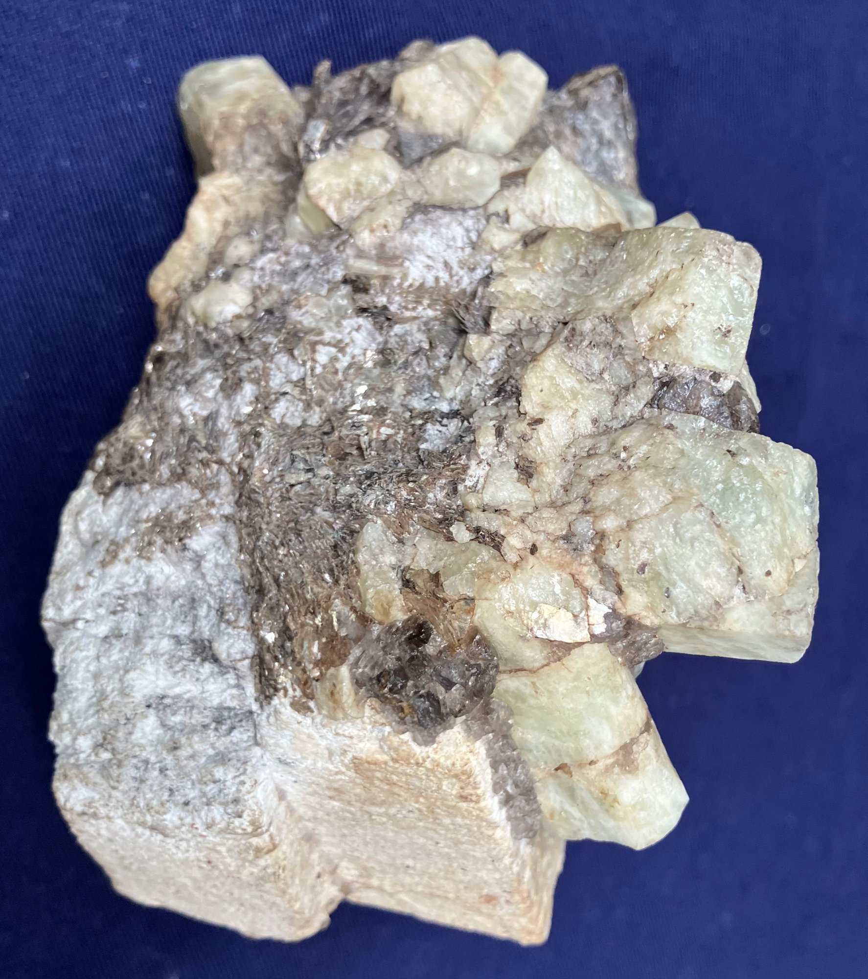 Alstead, New Hampshire Green beryl in matrix of black tourmaline and felspar. Measures: 2 1/4” tall x 5 1/4” long x 3 1/4” wide. Weighs: 1 pound 4 ounces.