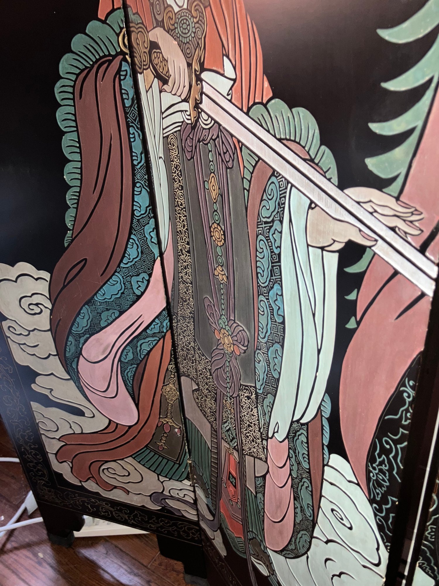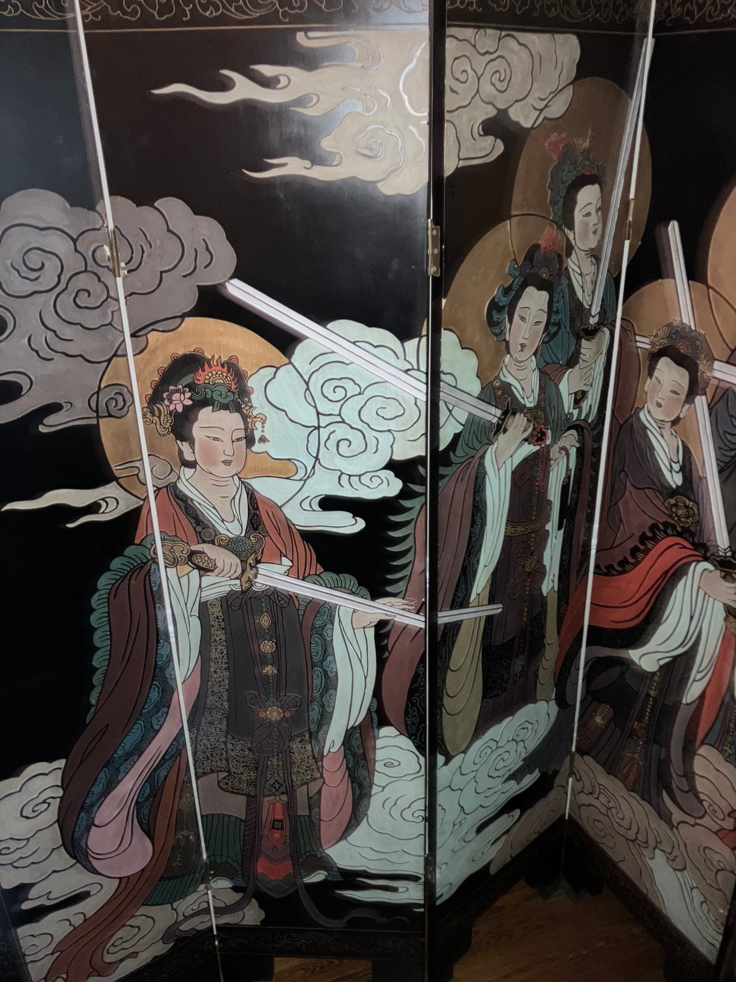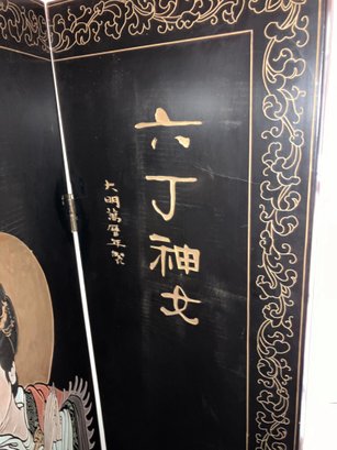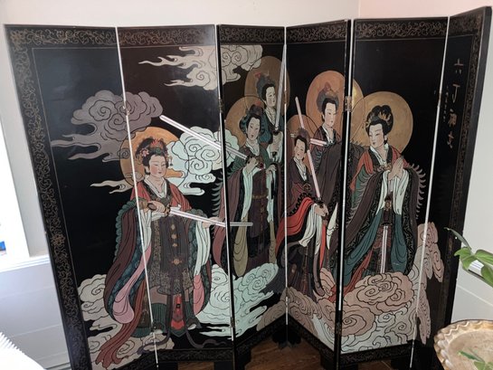 Antique Chinese 6 panel Coromandel screen. Dimensions: 72” tall x 96” wide. Very good condition. This screen was assessed by a Chinese scholar in 1995. Teh-wah-king.