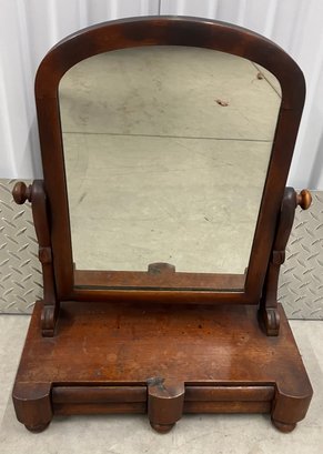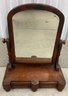 Antique Empire mahogany two drawer shaving stand with mirror. C. 1890’s. Dimensions are: 23” tall x 18” wide x 8 1/4” deep.