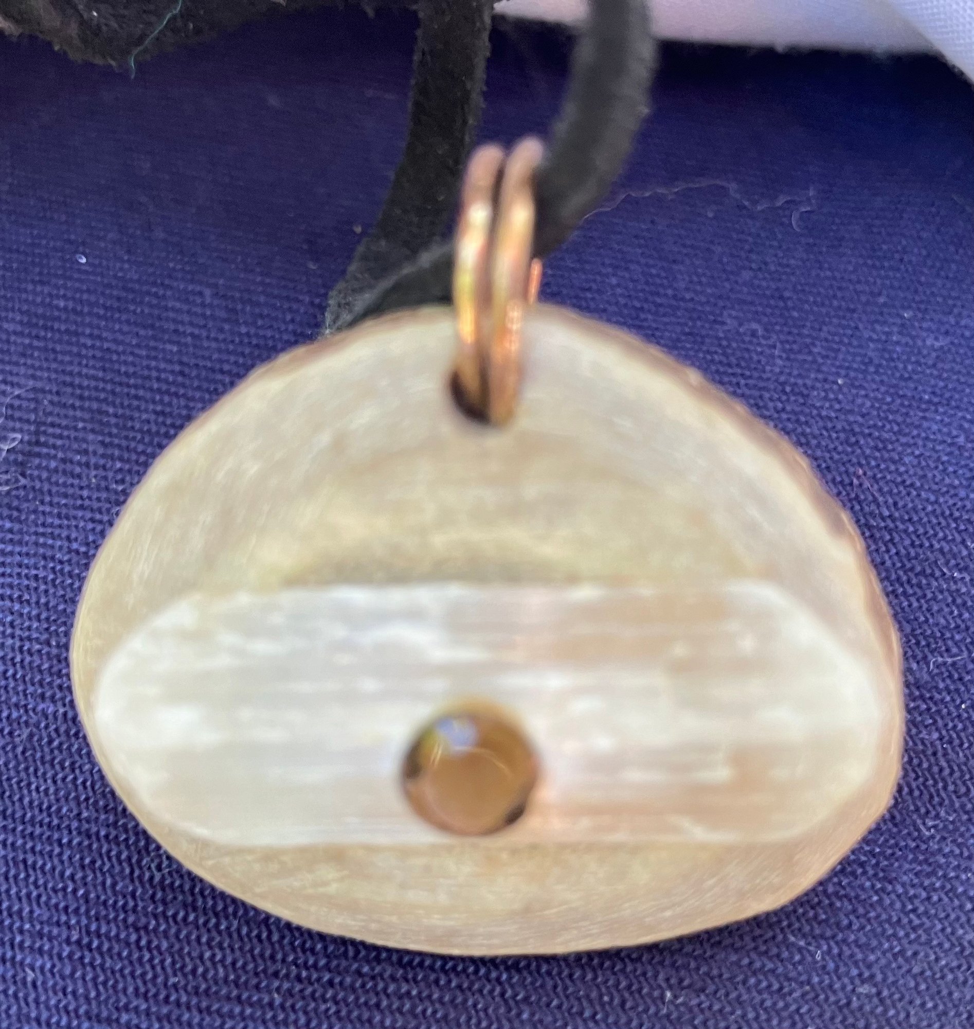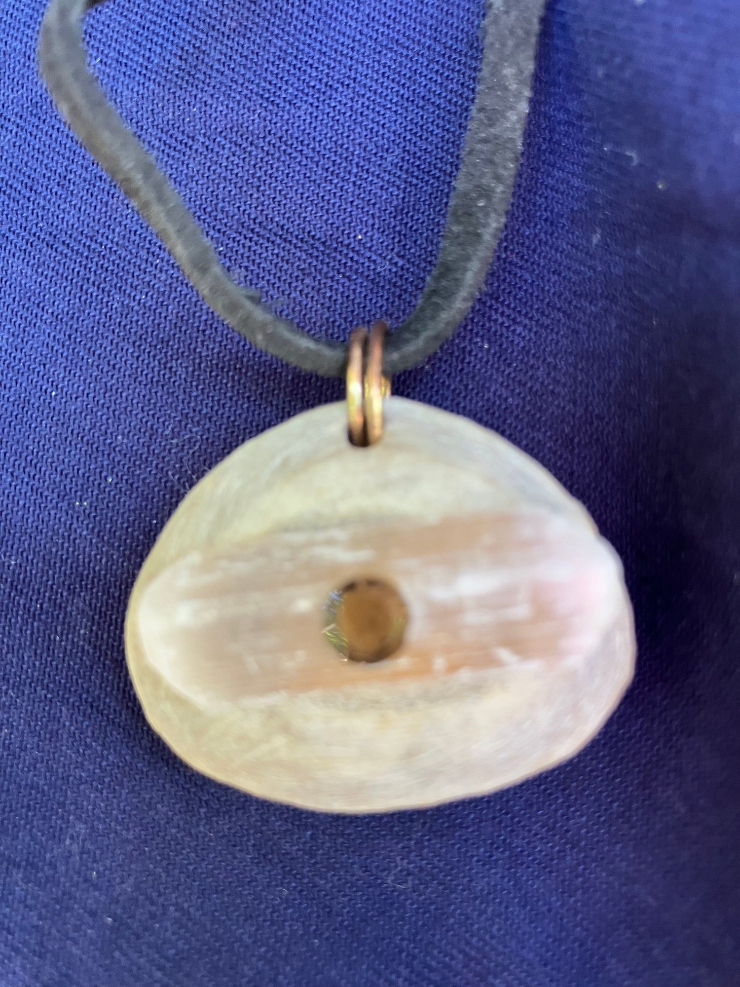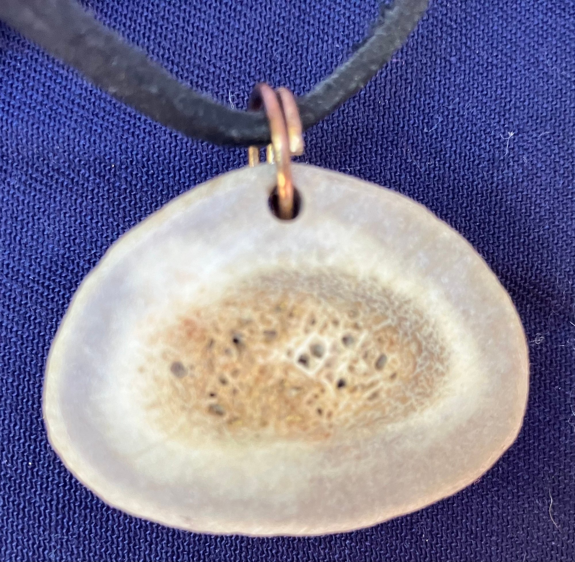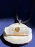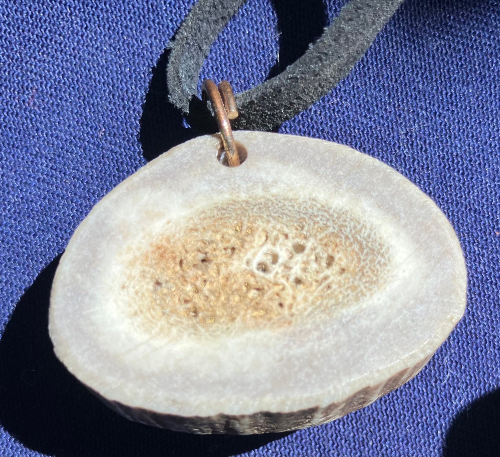 Antler Selenite & Smoky Quartz Cut Gemstones Necklace. It has a leather cord and round cut smoky Quartz. Measures: 12 inches long. The pendant is: 1 1/2” wide x 1 1/4” long.