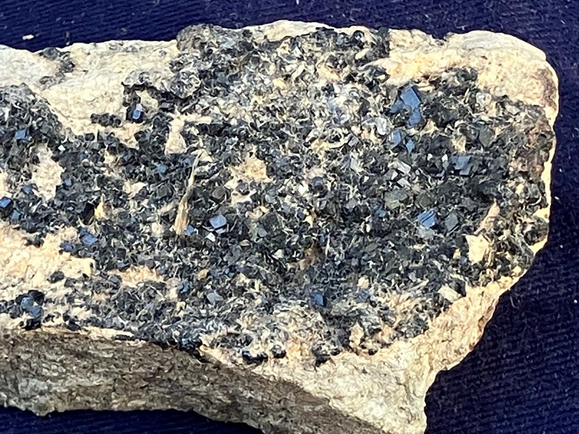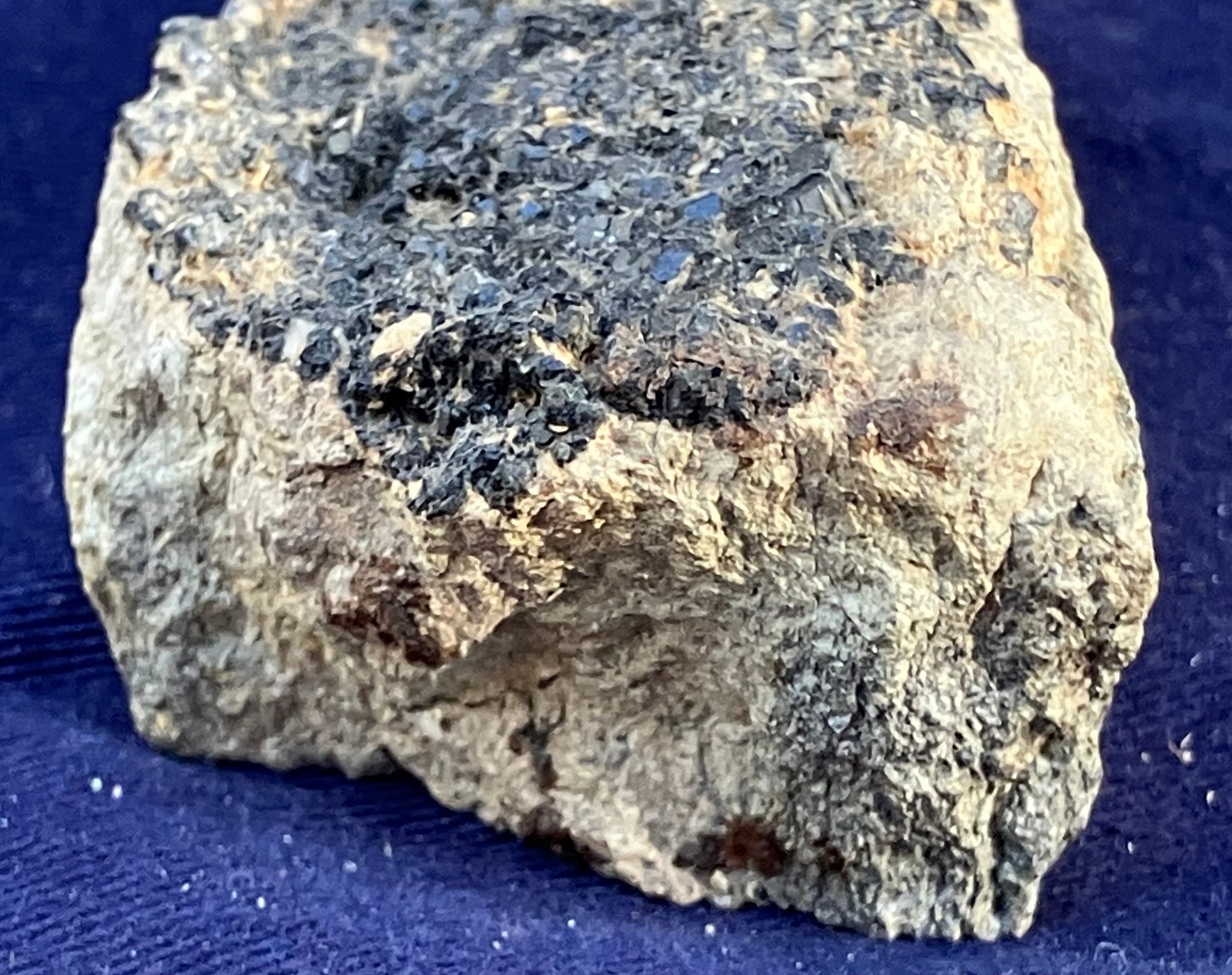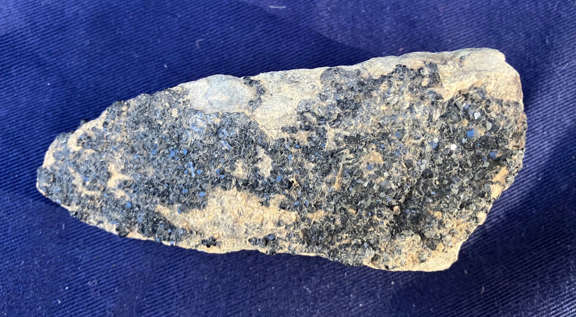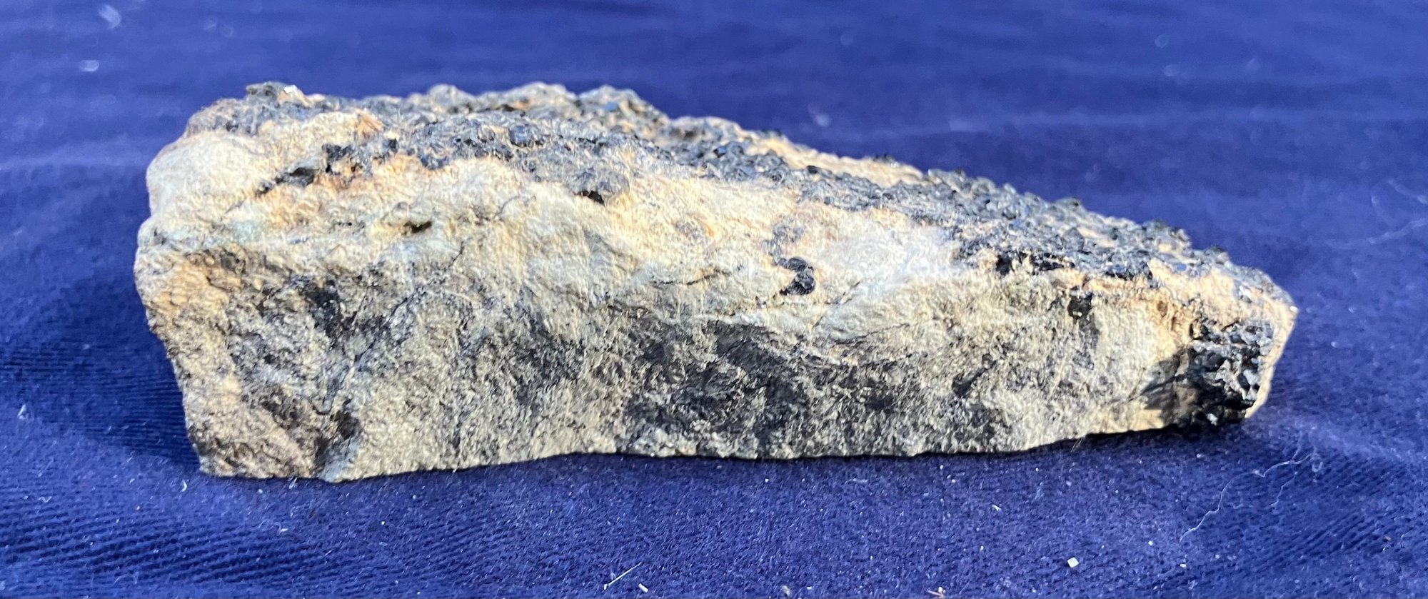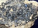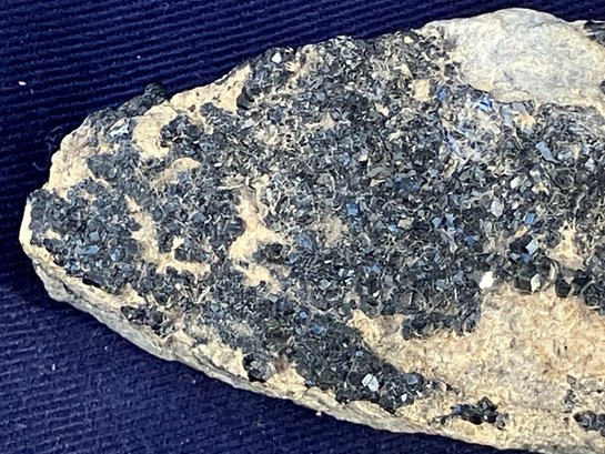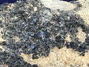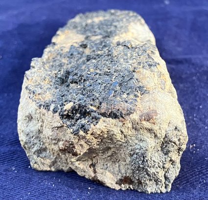 Black garnet composition is Ca3Fe2Si3O12. From San Benito County California. Measures: 1 1/8” tall x 1 5/8” wide x 3 5/8” long. Weighs: 4.6 ounces.