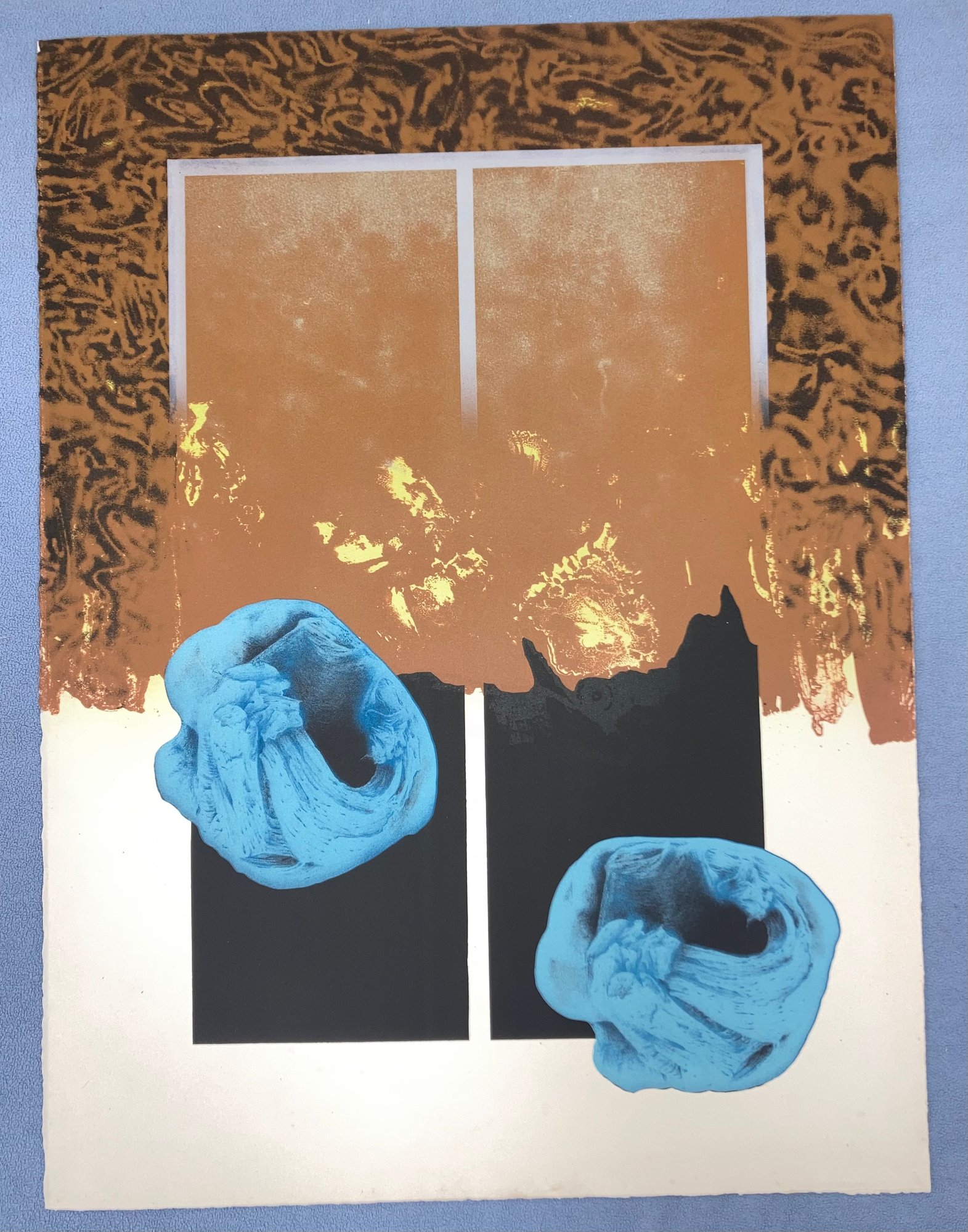 Artist proof by Rex McMnamy ‘77. Dimensions are: 27” tall x 20” wide. Blue hearts and black background. Condition: See photos.