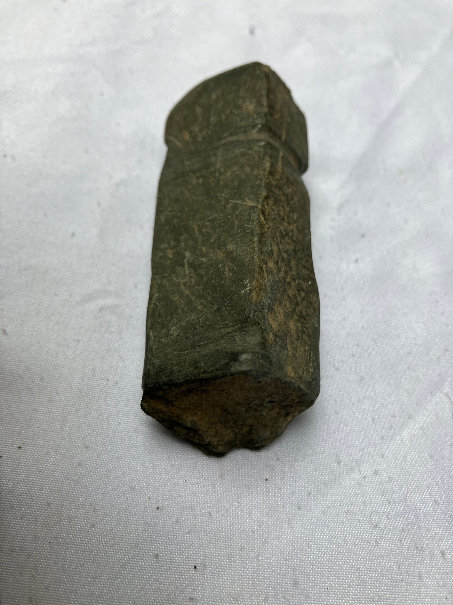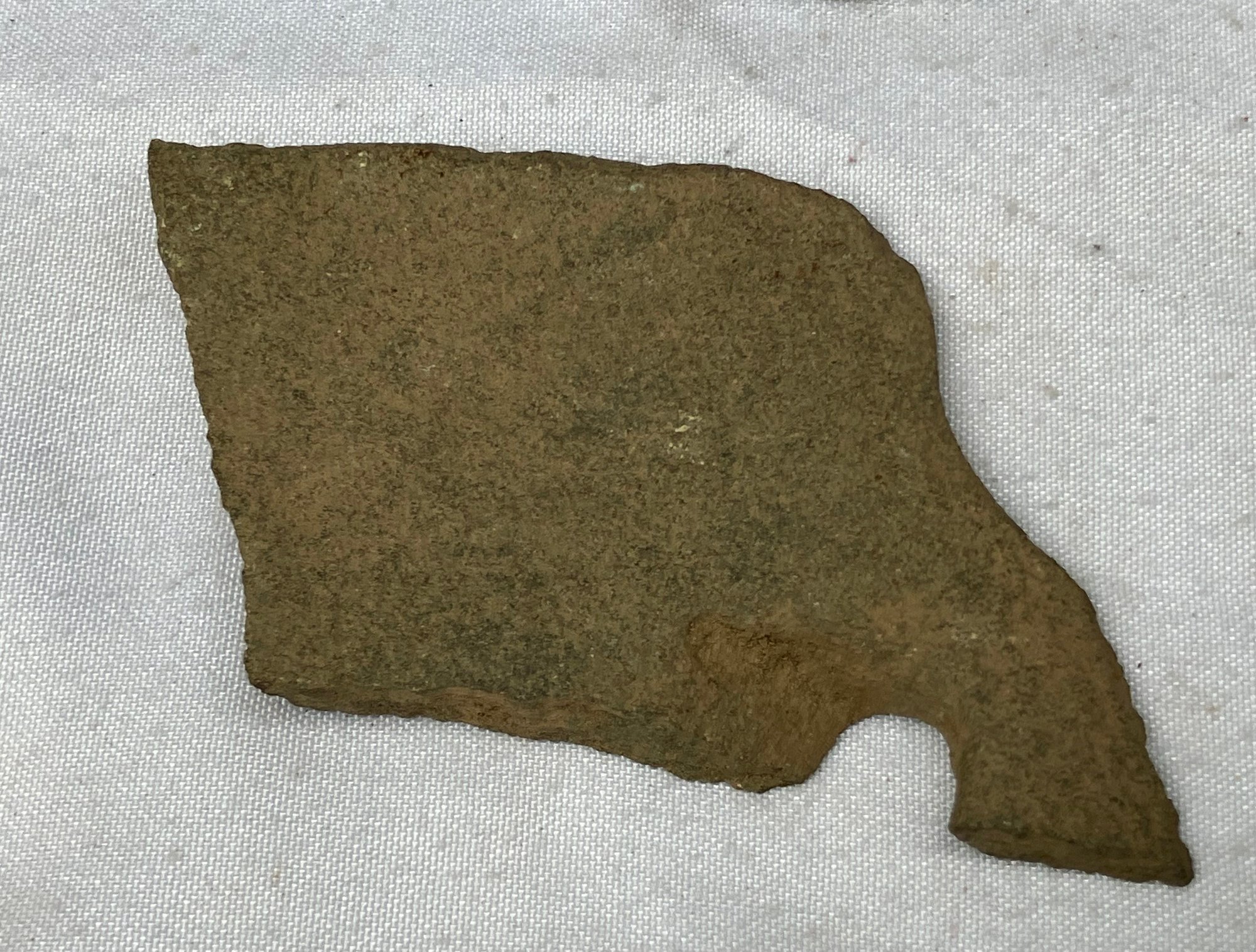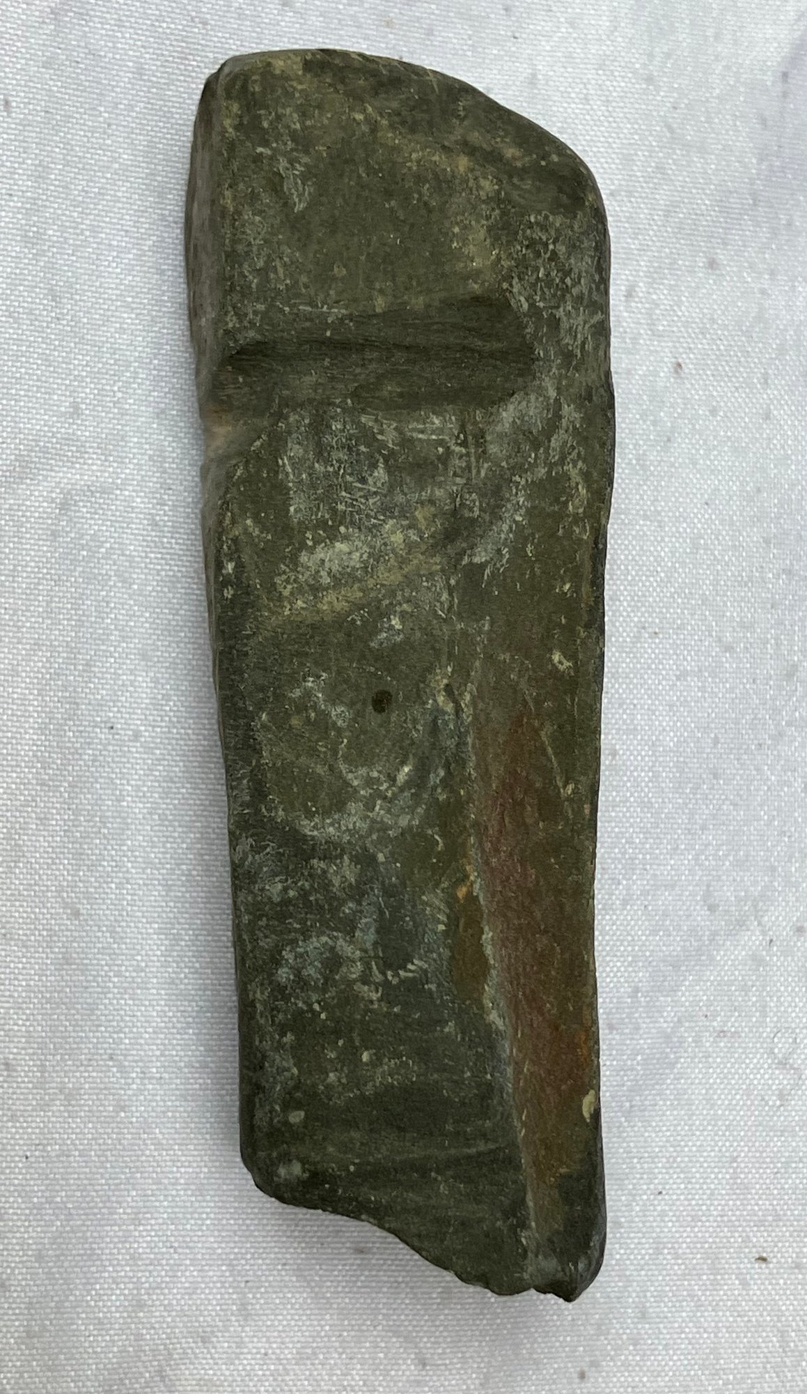 Found at a Native American dig site. One is a four sided stone with man made groove marks. And two others have partially hand drilled holes. Probably pieces from a broken stone gorget.
