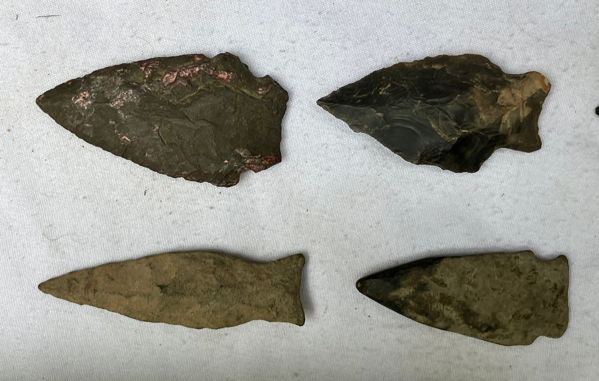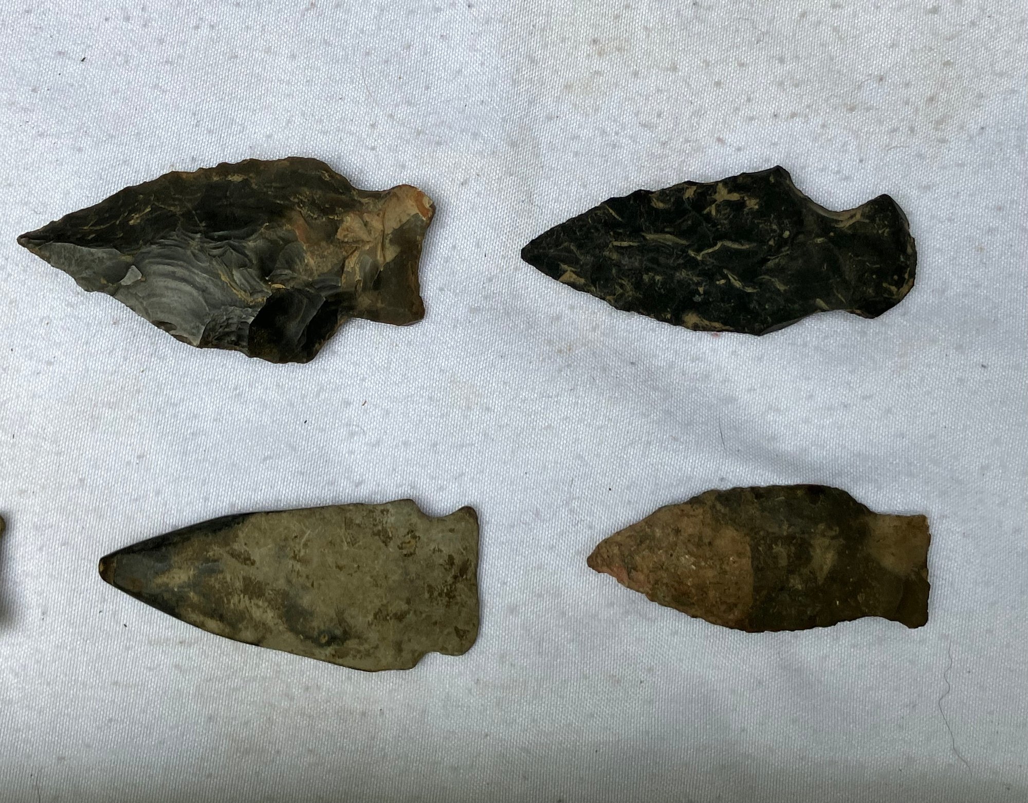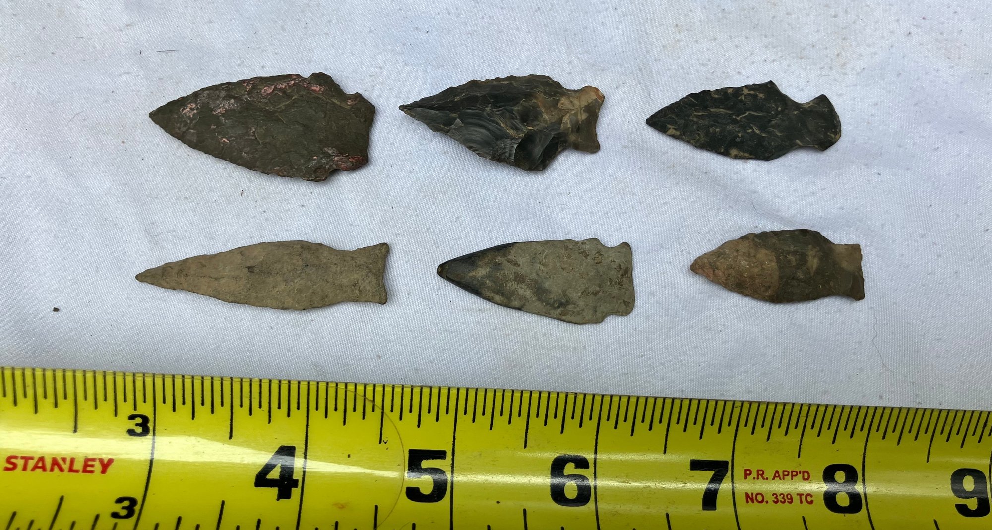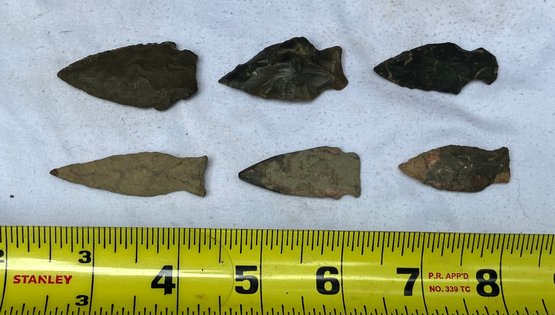 Found at a Native American dig site. Assorted flint and Chirt bi-facial arrow point and Spearpoints.