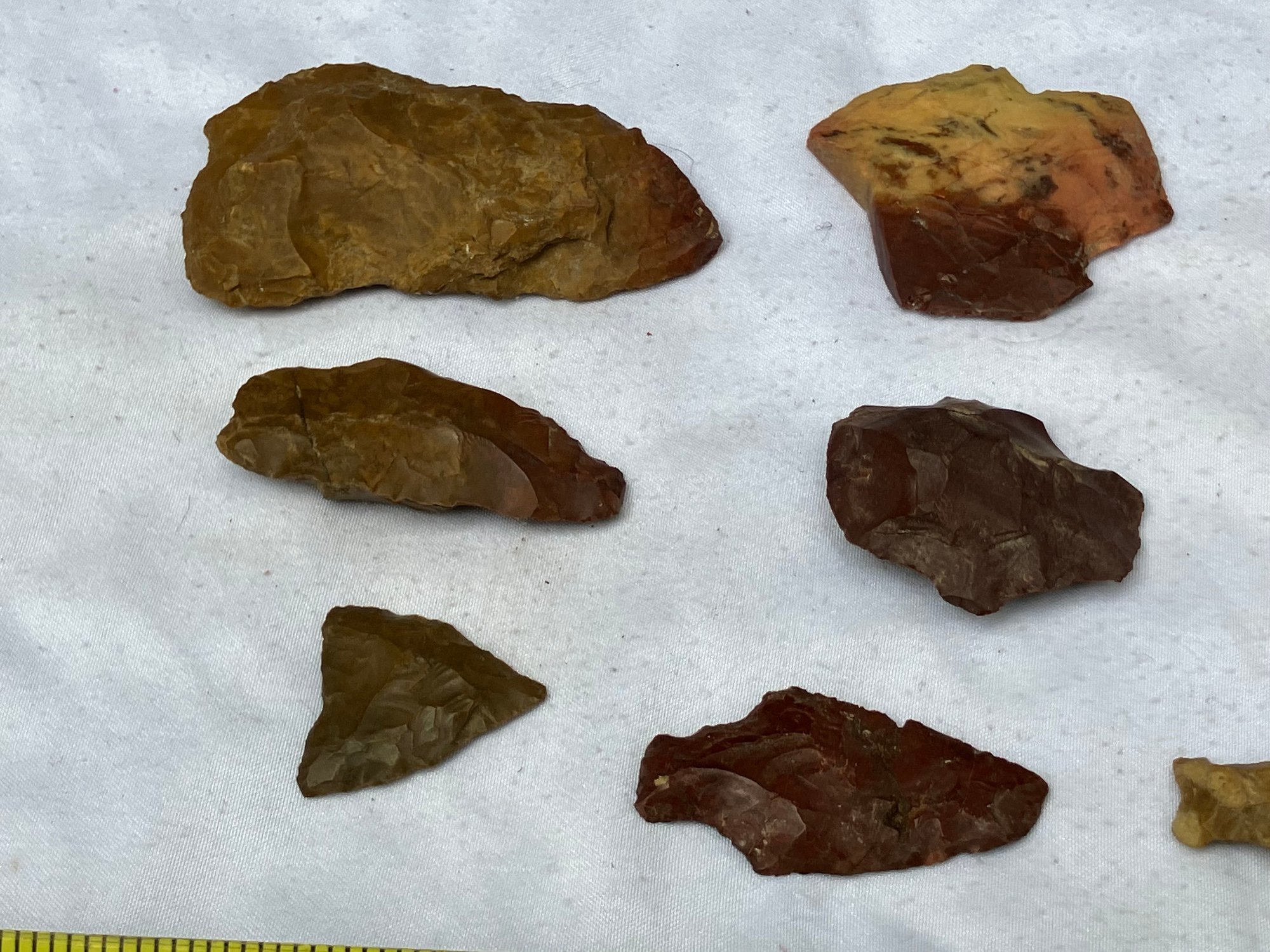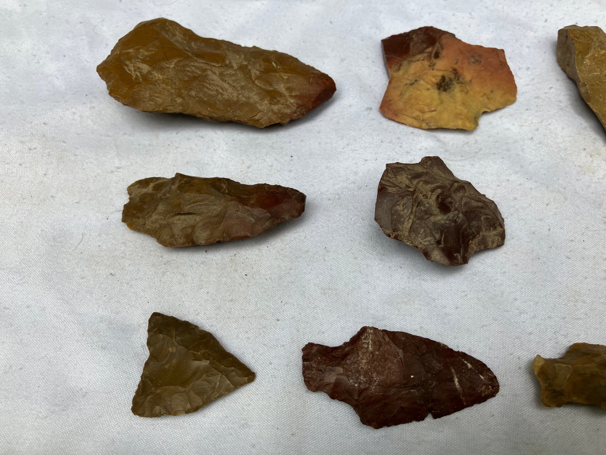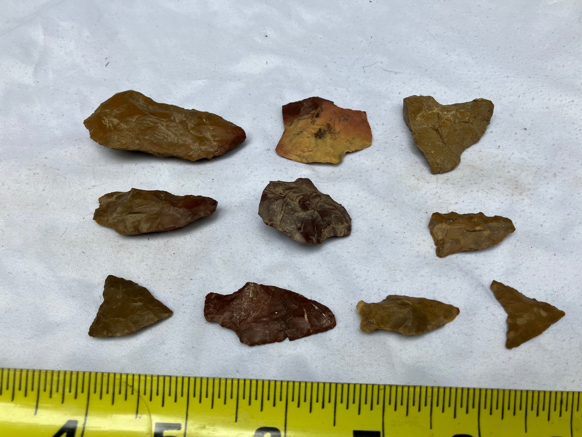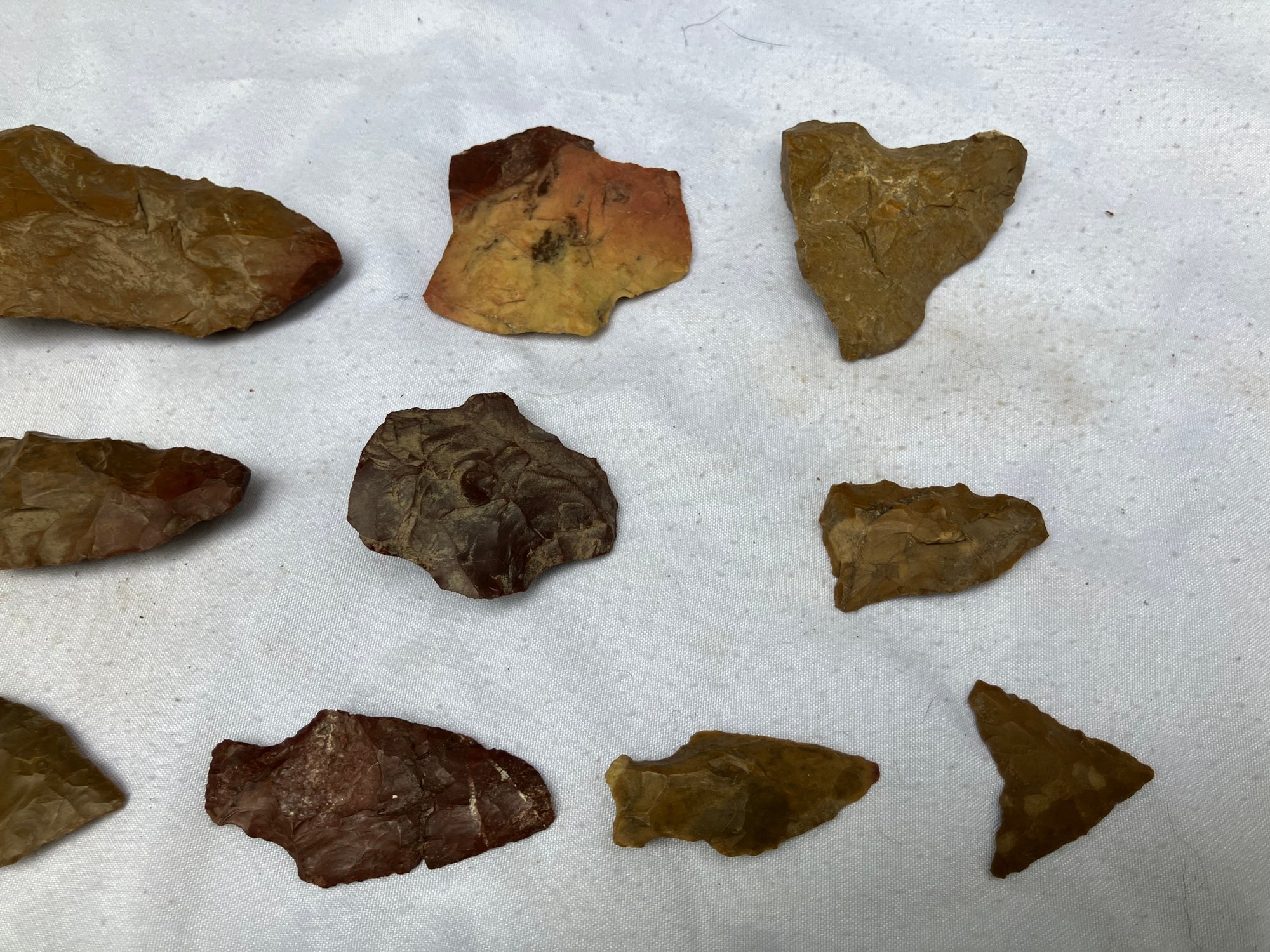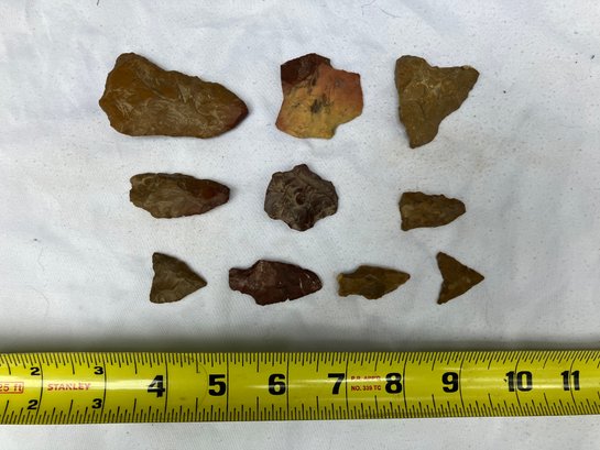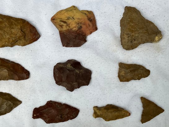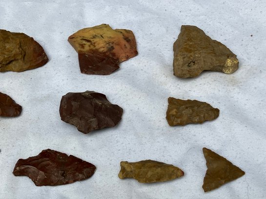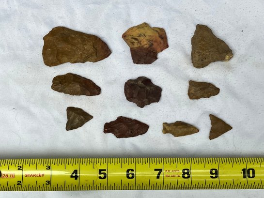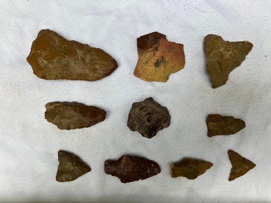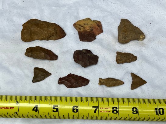 Found at a Native American dig site. Assorted tools and points consisting of scrapers, blades and arrowheads. Most are made from Chirt.