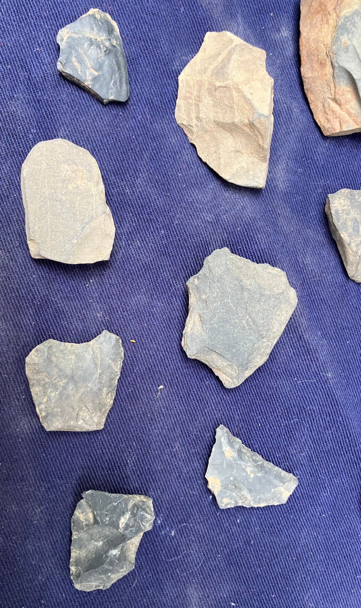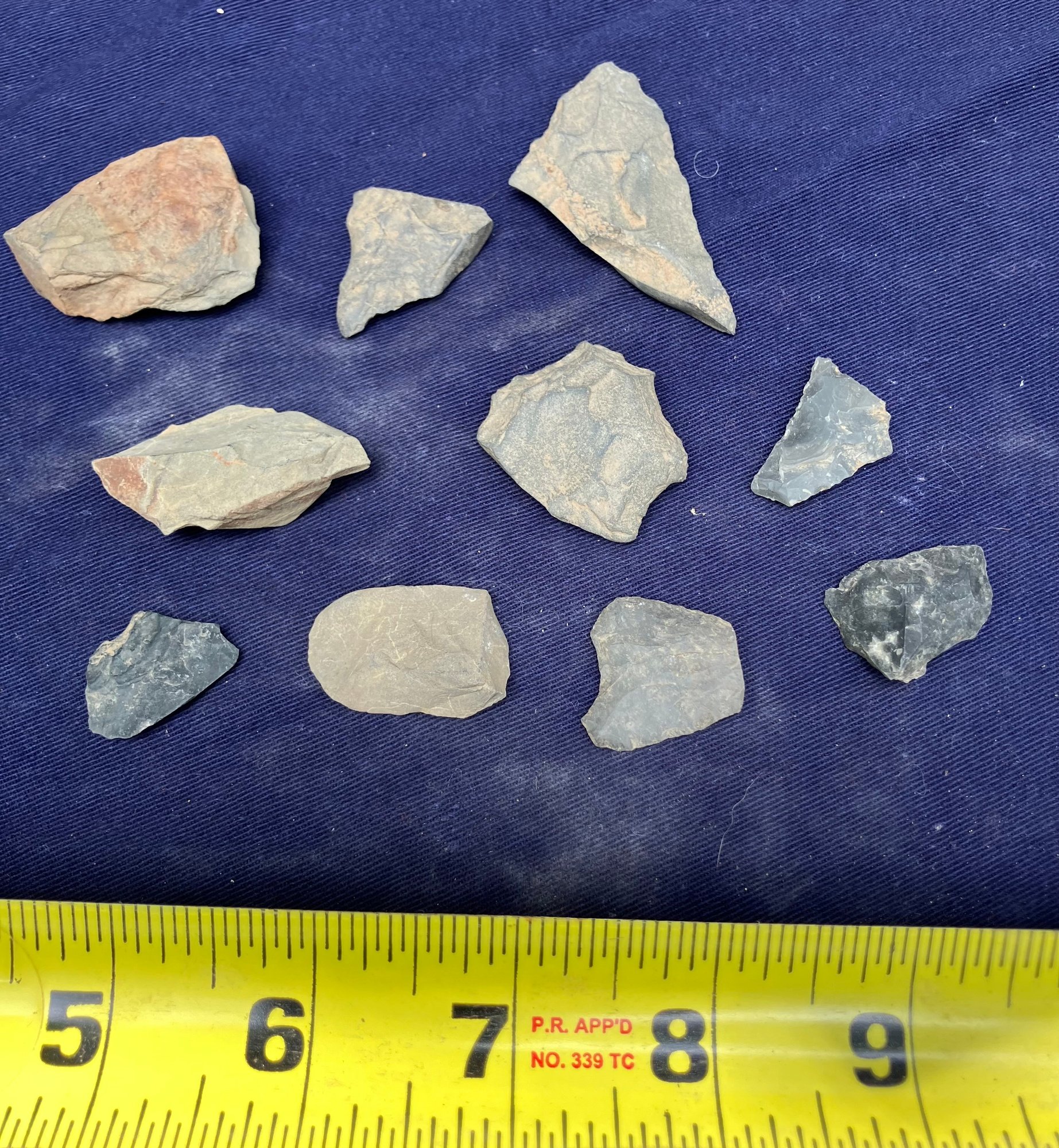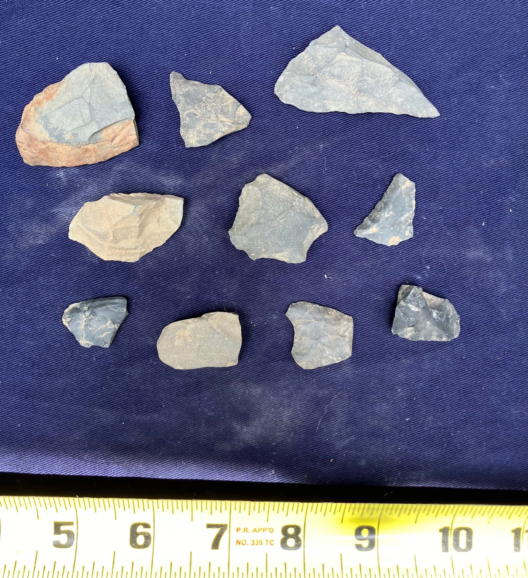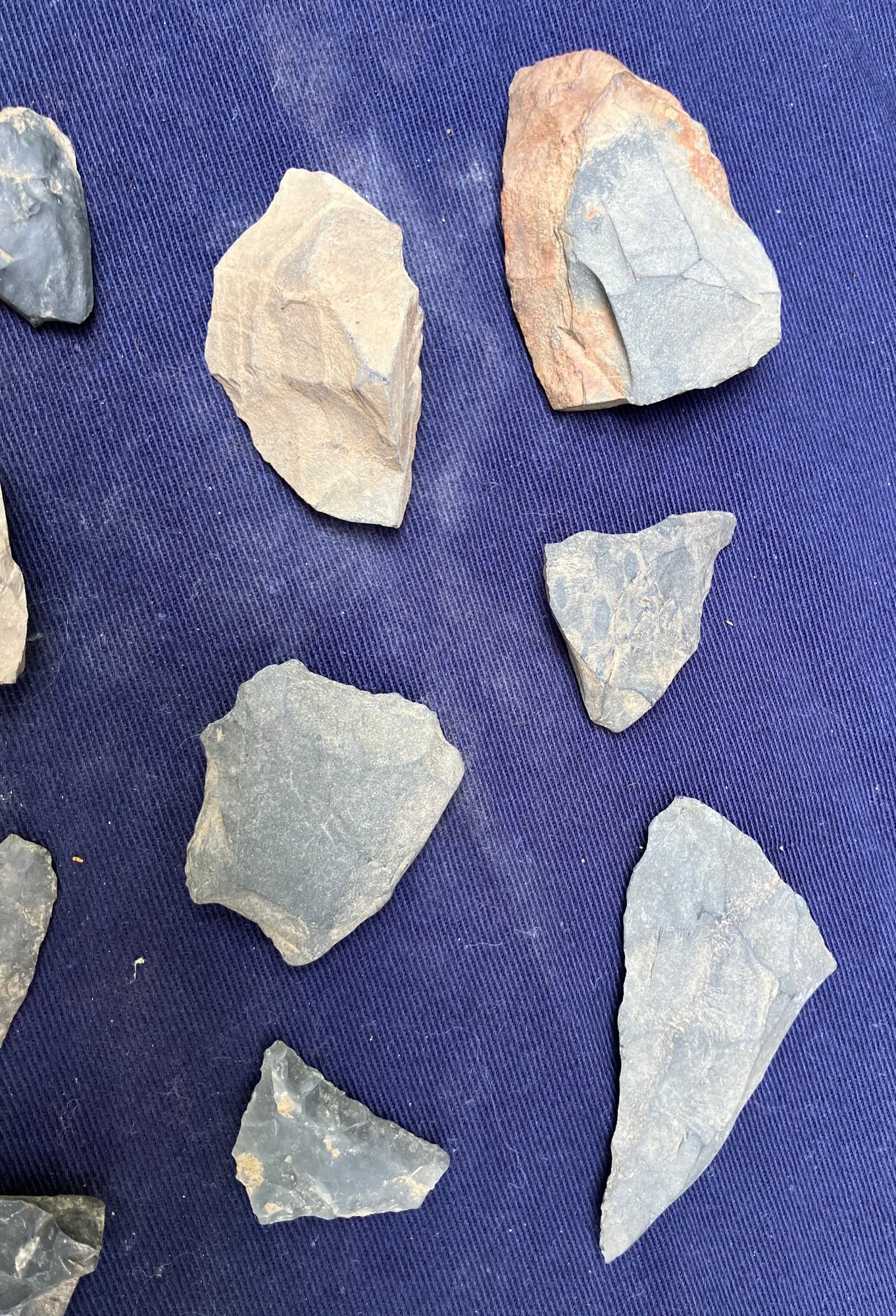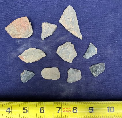 Found at a Native American dig site. Assorted tools, including a drill point, scrapers and knife blades.