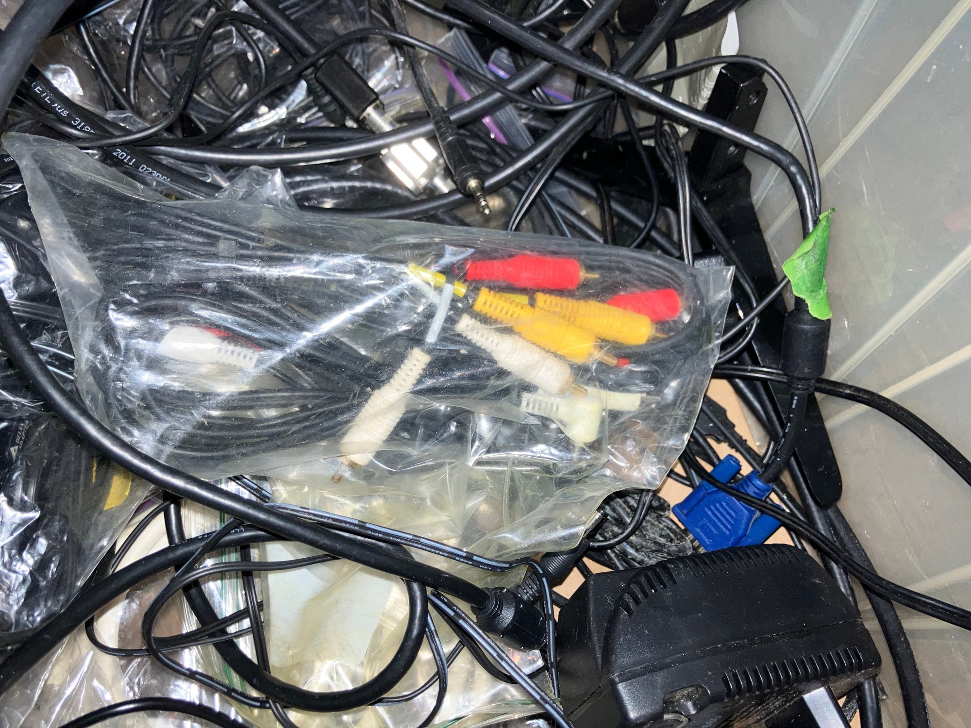 Assortment Of Chargers & Electronics Cords. (Tote not included). Good condition.