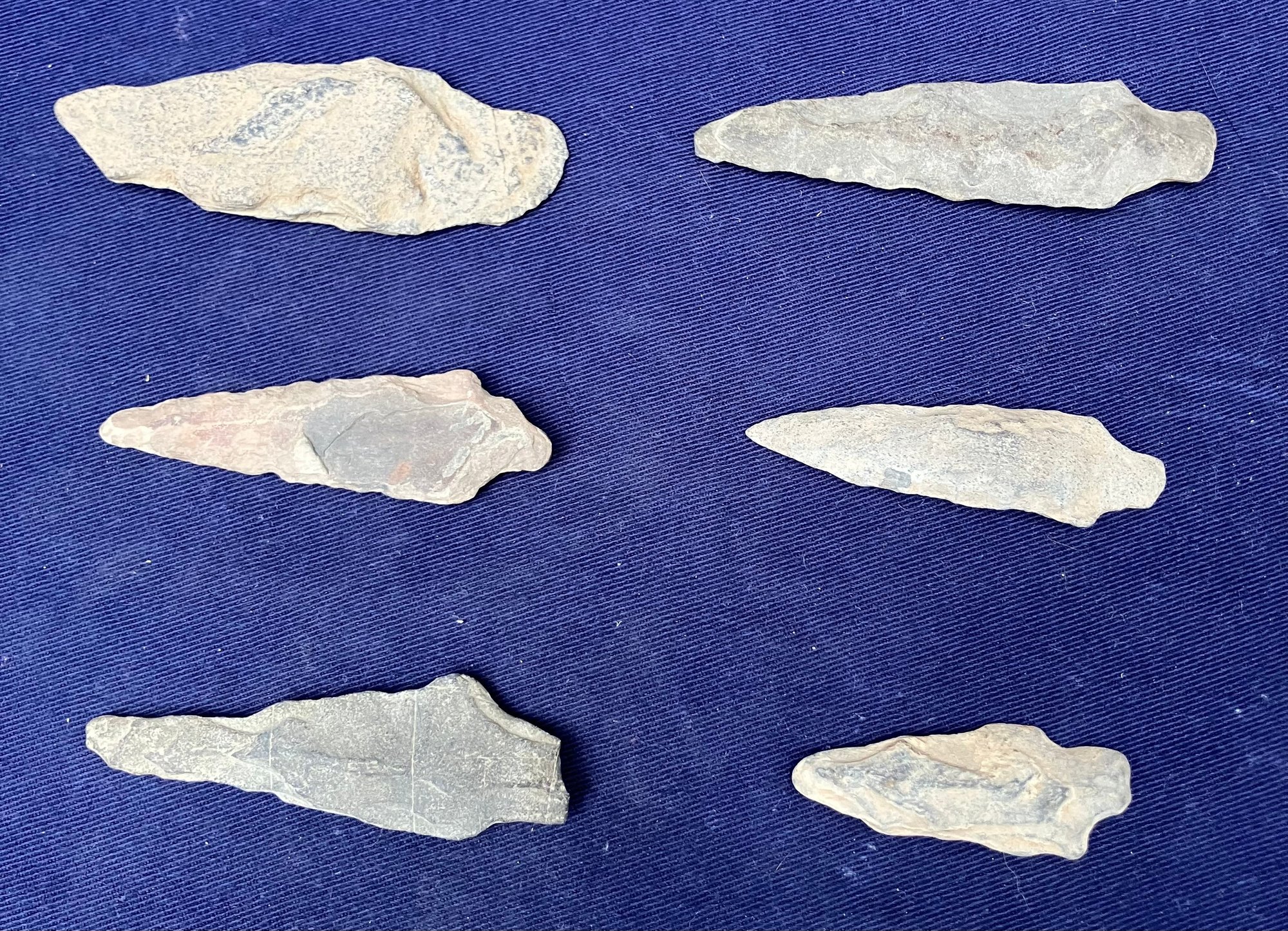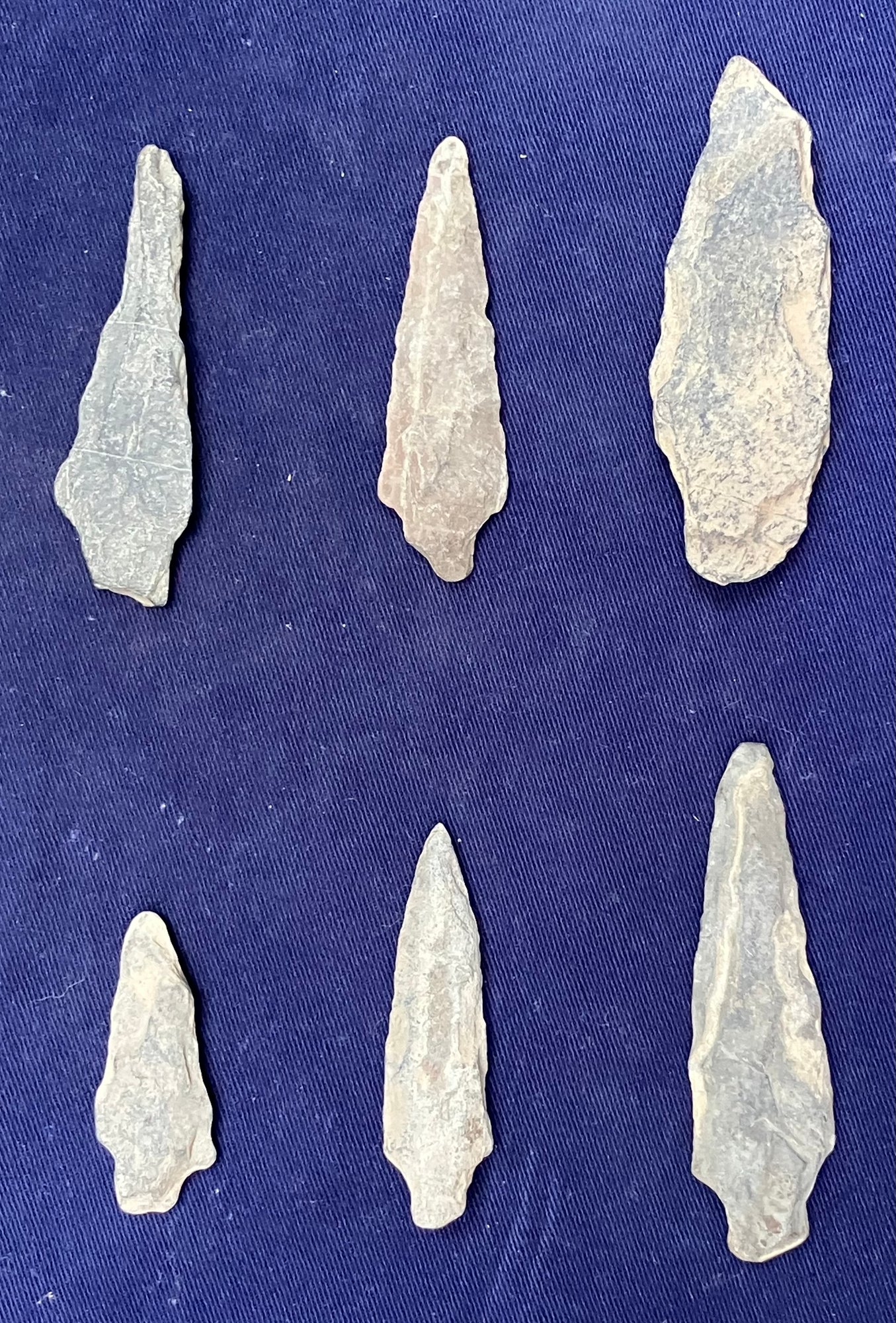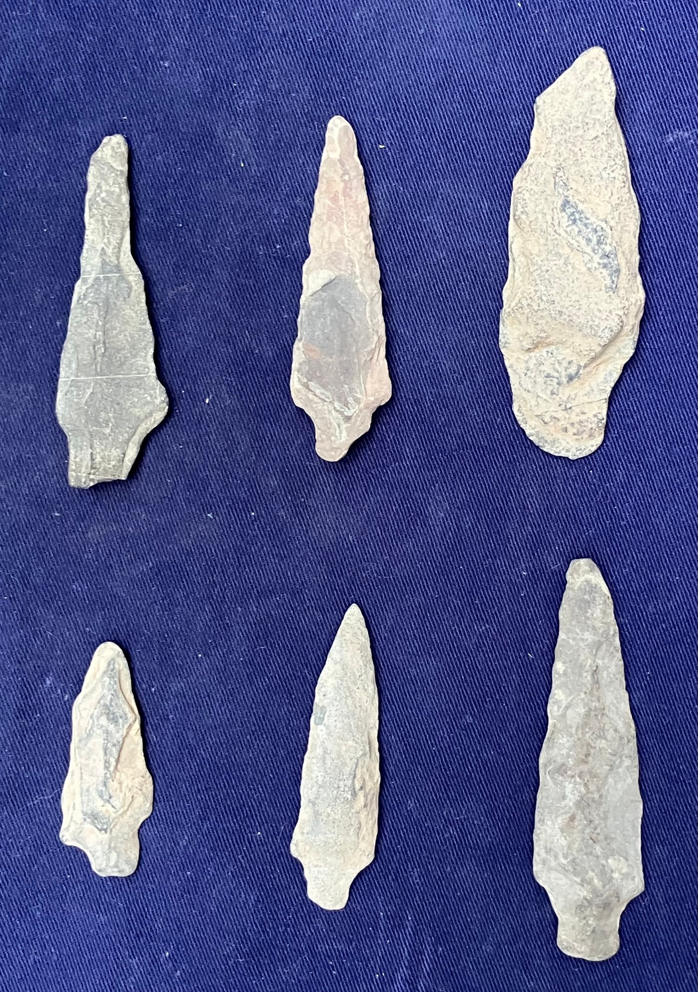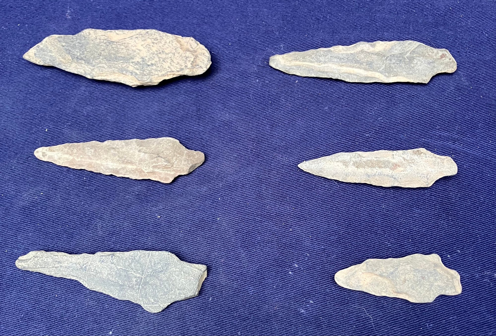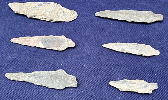 Found at a Native American dig site. They are all bi-facial and single stemmed. One is a knife blade.