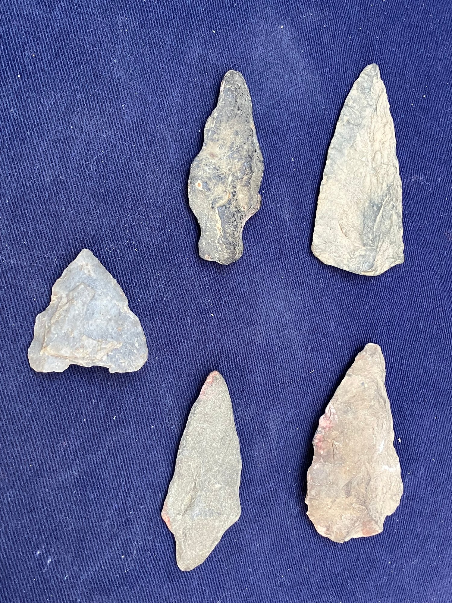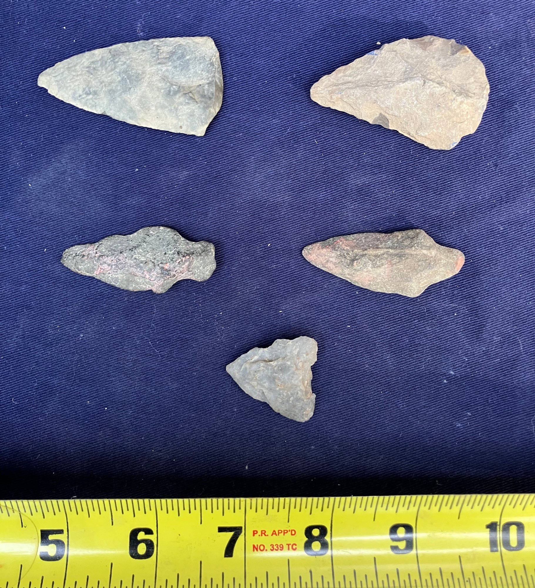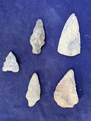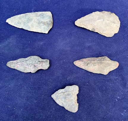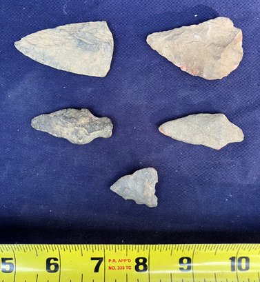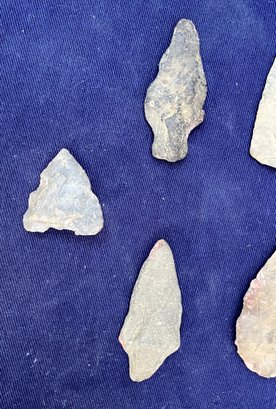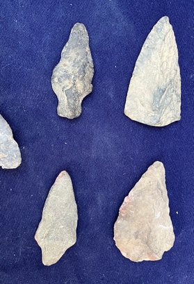 Found at a Native American dig site. Two are single stemmed. Two have broken stems and another is a cutting tool.