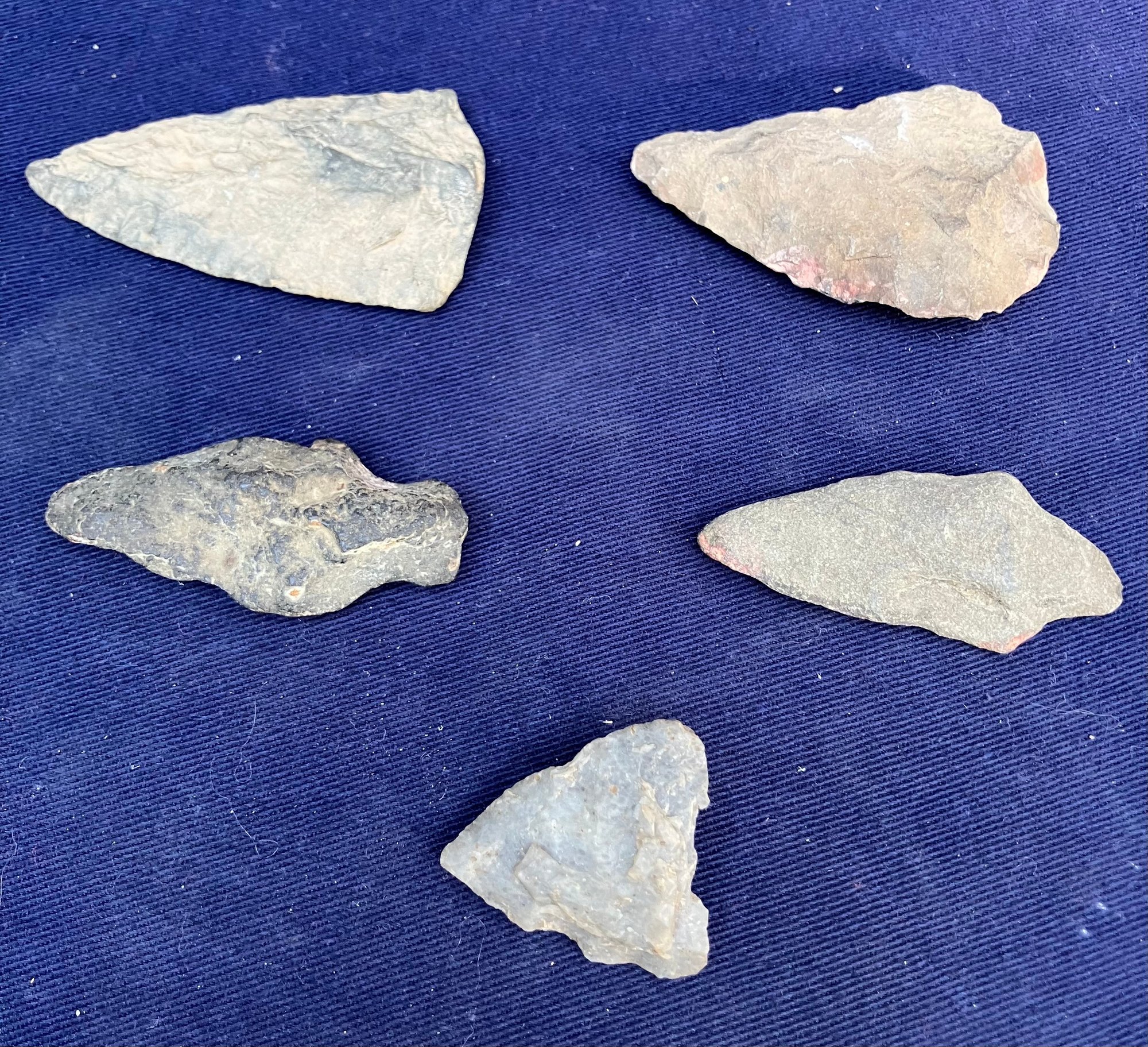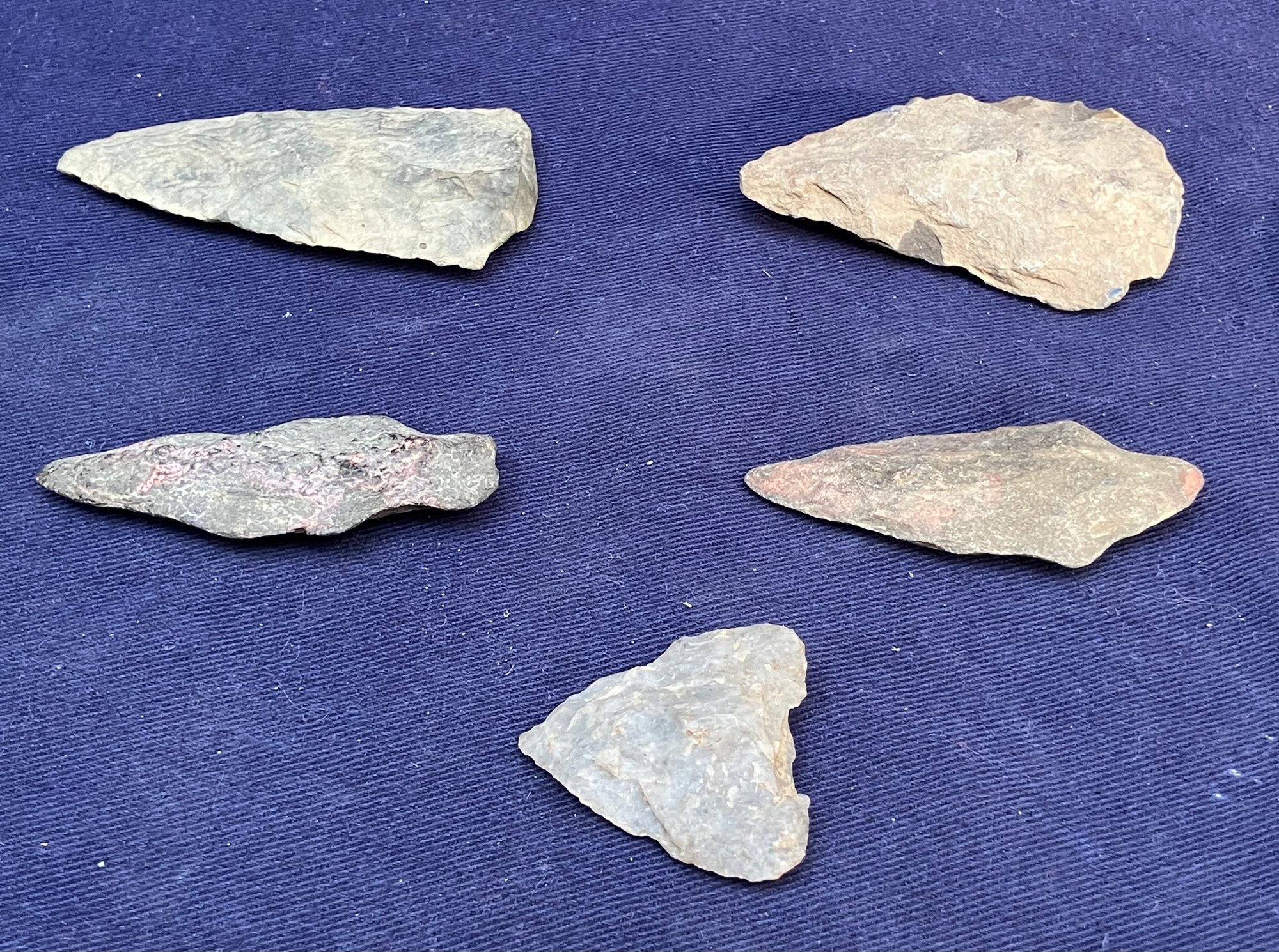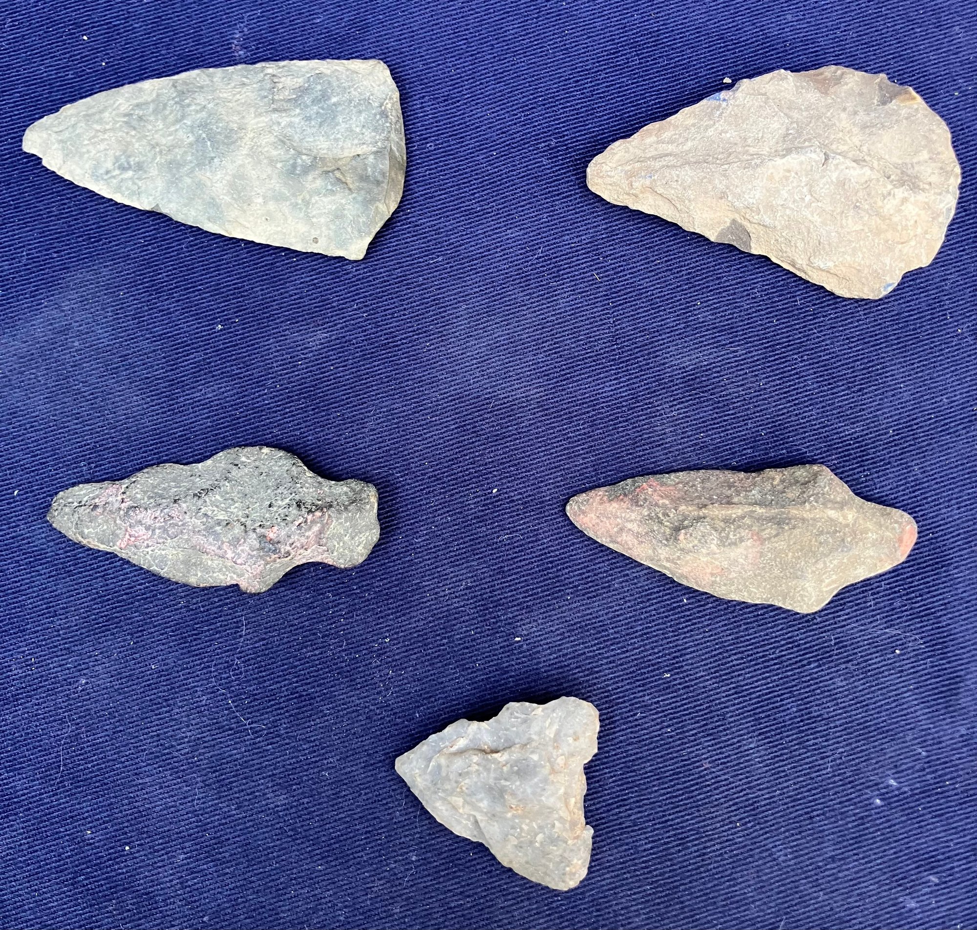 Found at a Native American dig site. Two are single stemmed. Two have broken stems and another is a cutting tool.