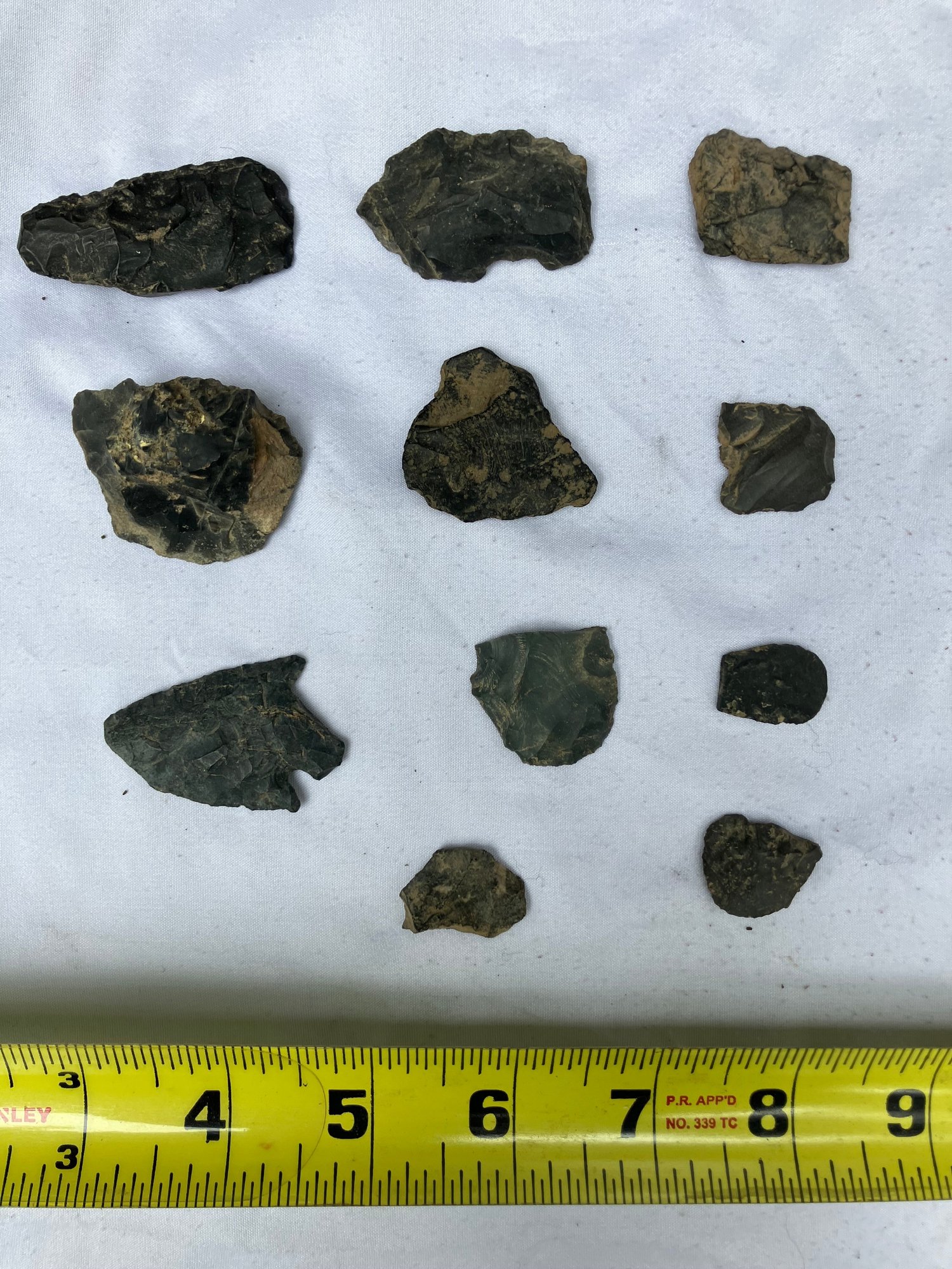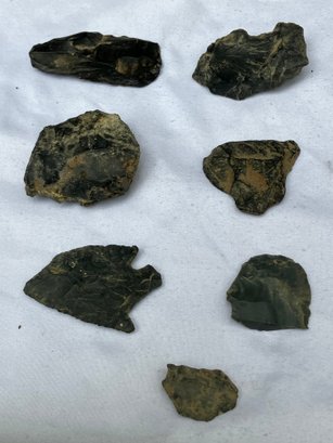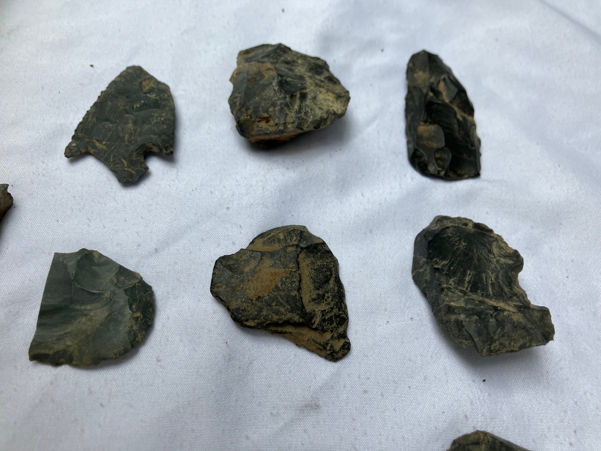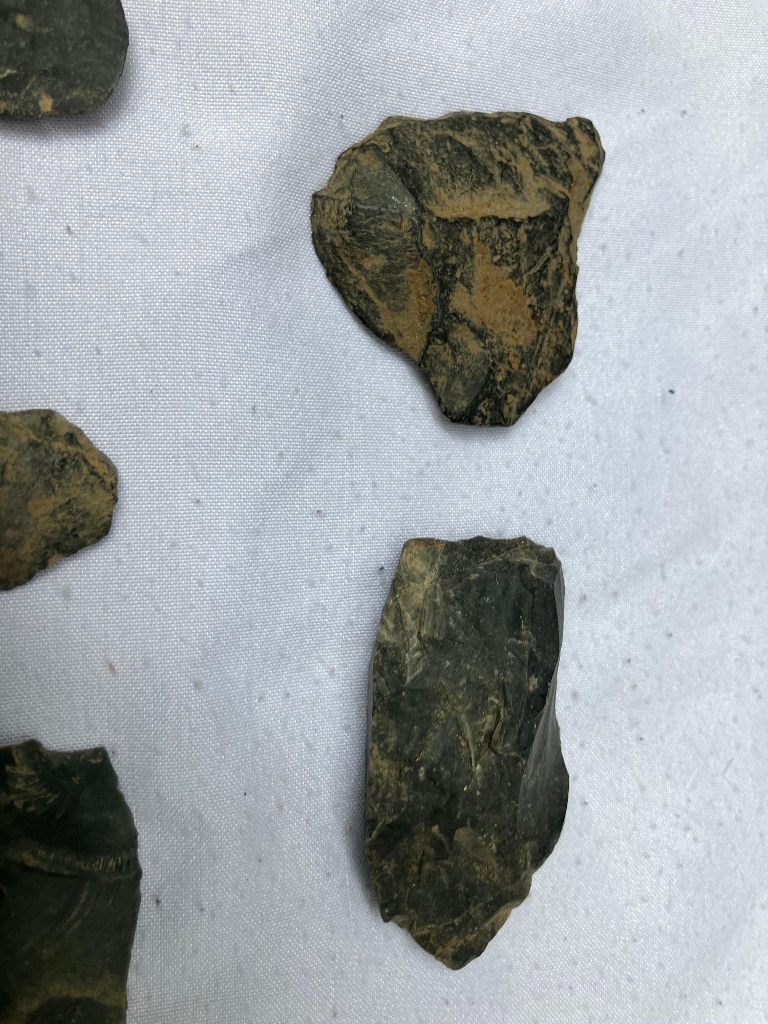Found at a Native American dig site. Made from flint. Most are scrapers or blades.