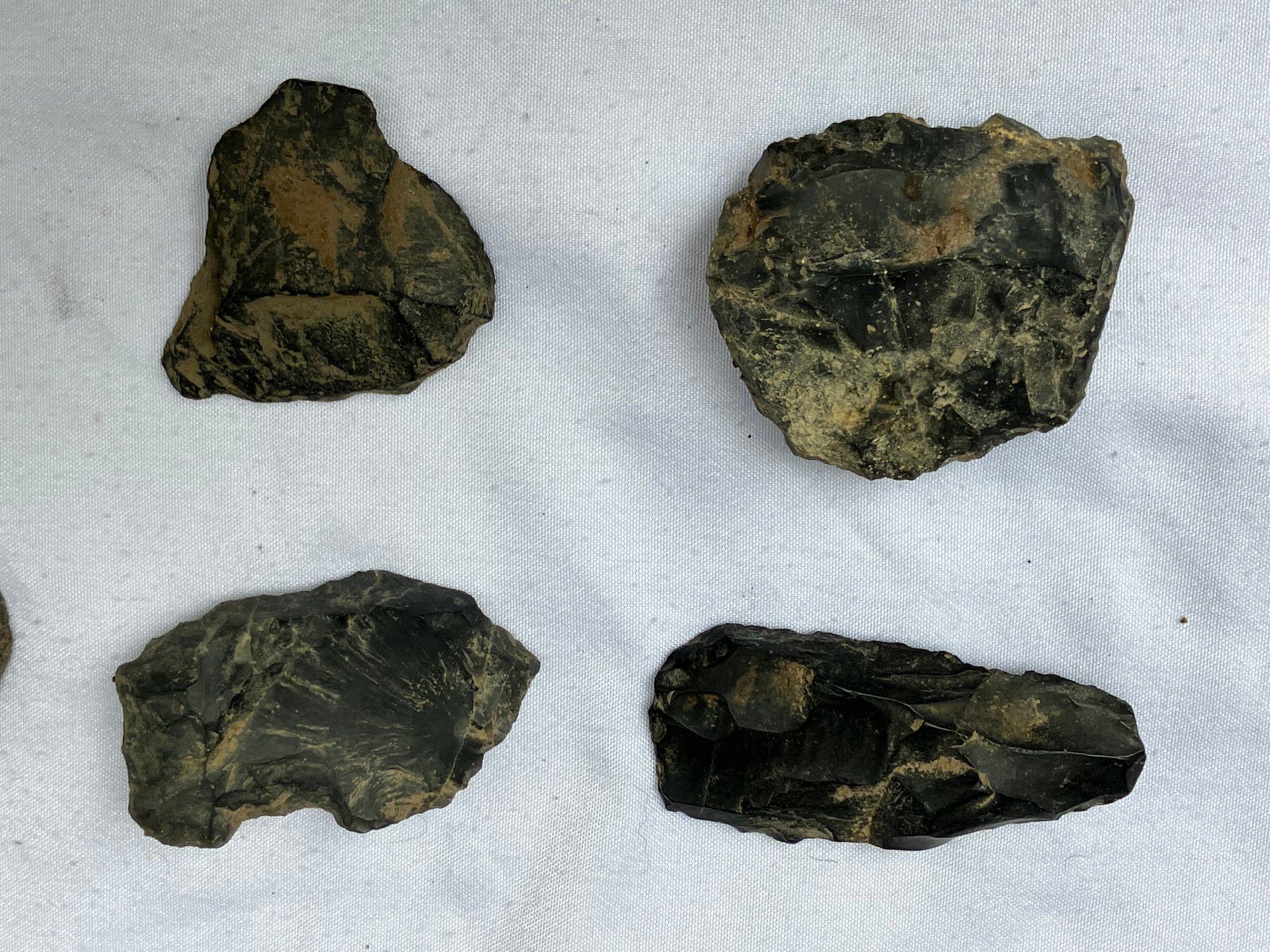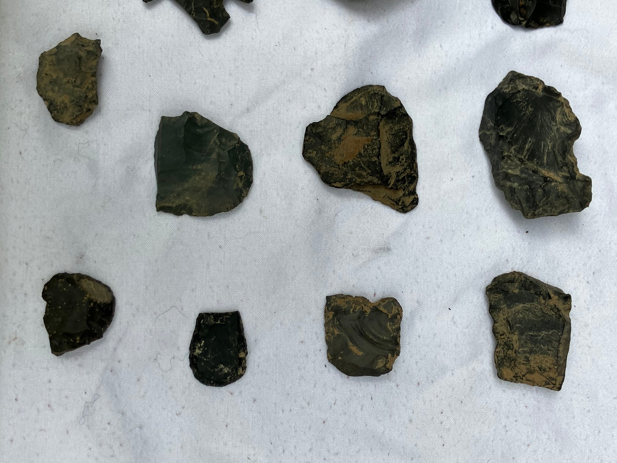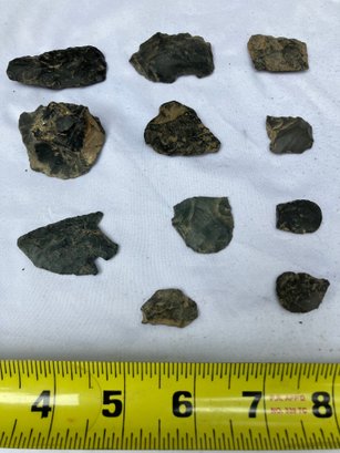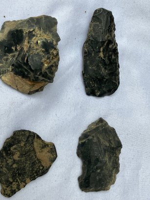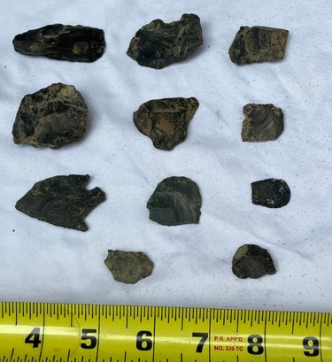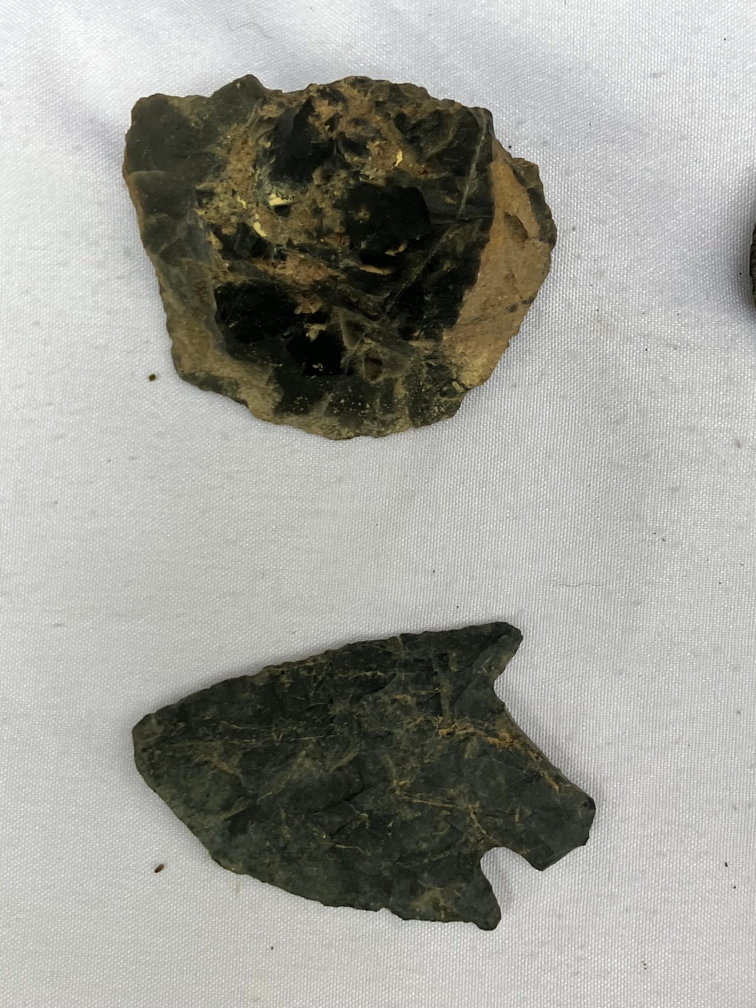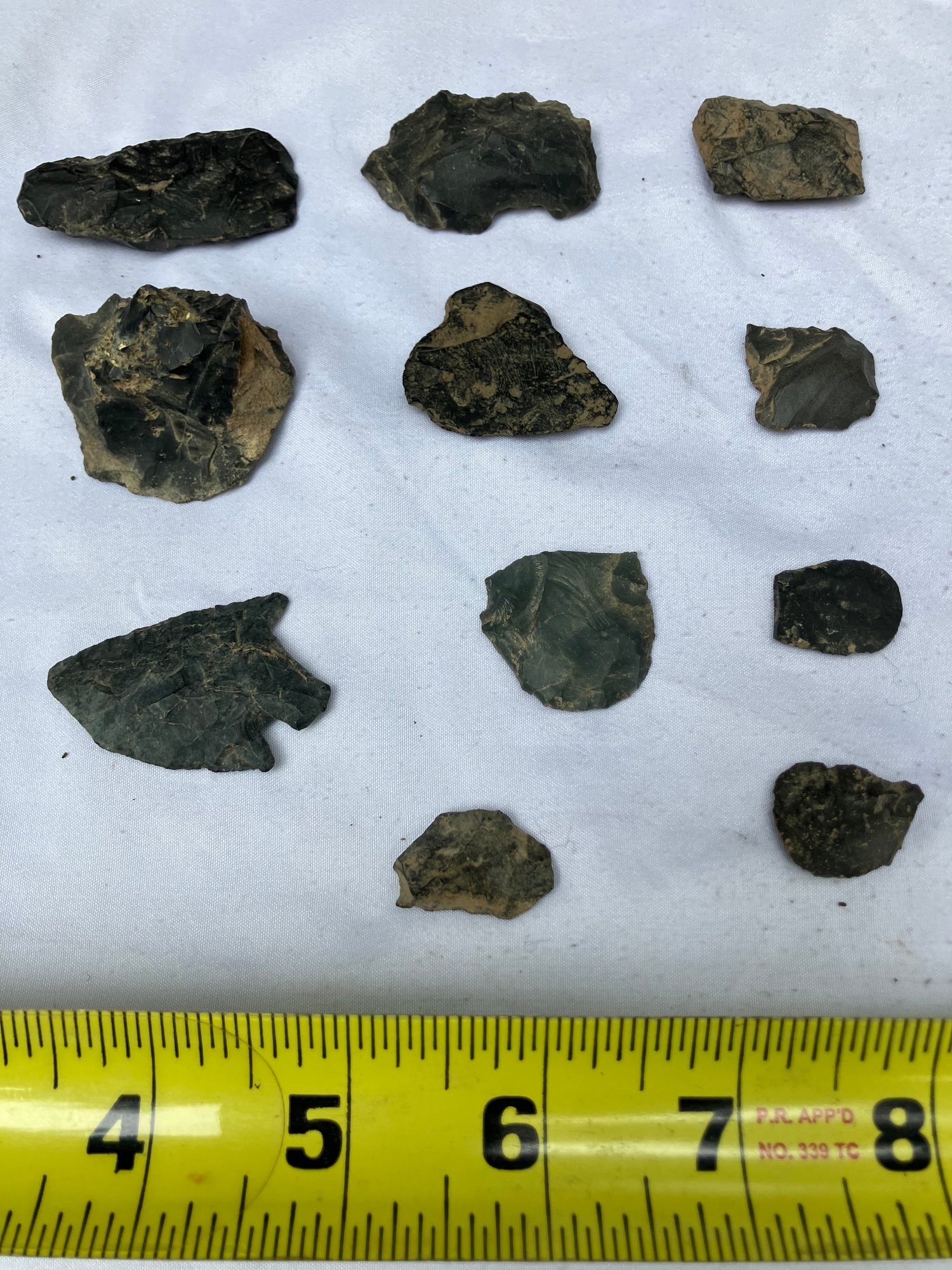 Found at a Native American dig site. Made from flint. Most are scrapers or blades.