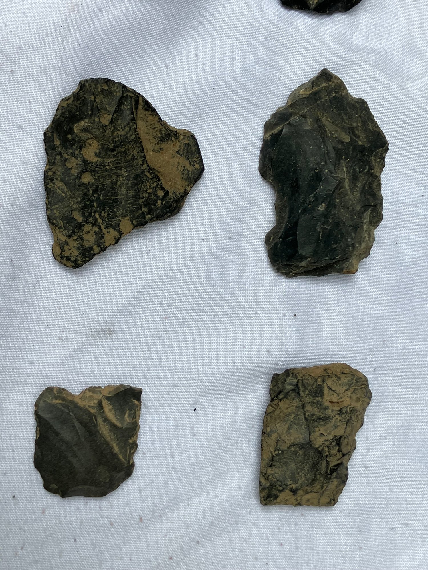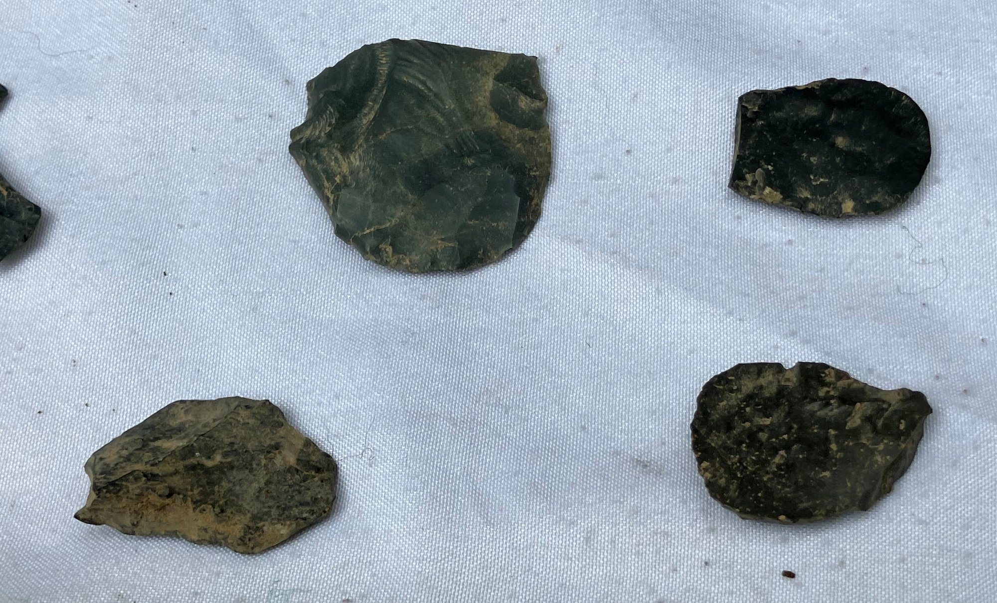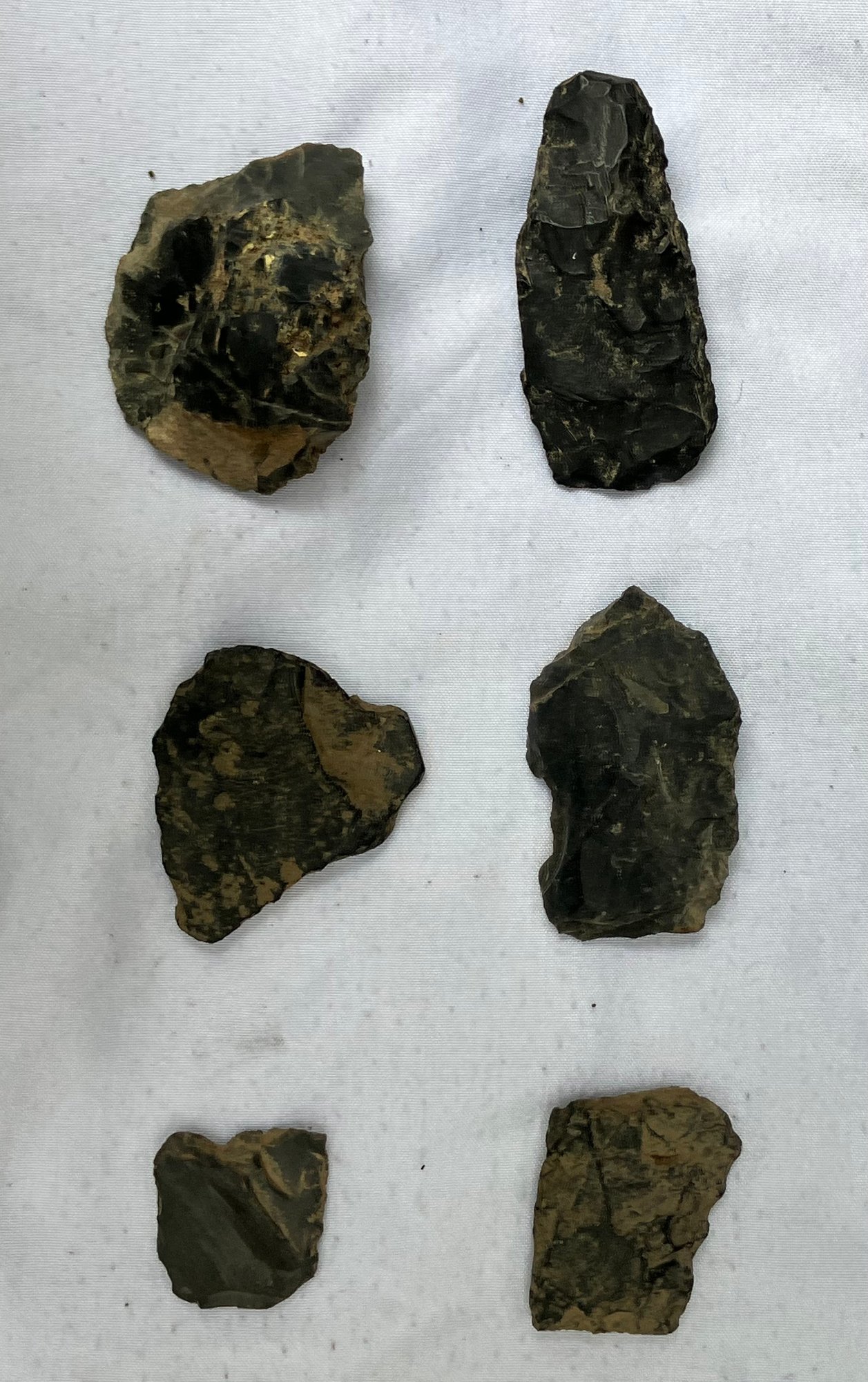 Found at a Native American dig site. Made from flint. Most are scrapers or blades.
