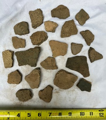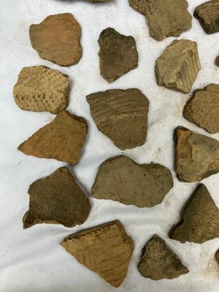 Assortment Of Native American Pottery Shards From The Woodland Period