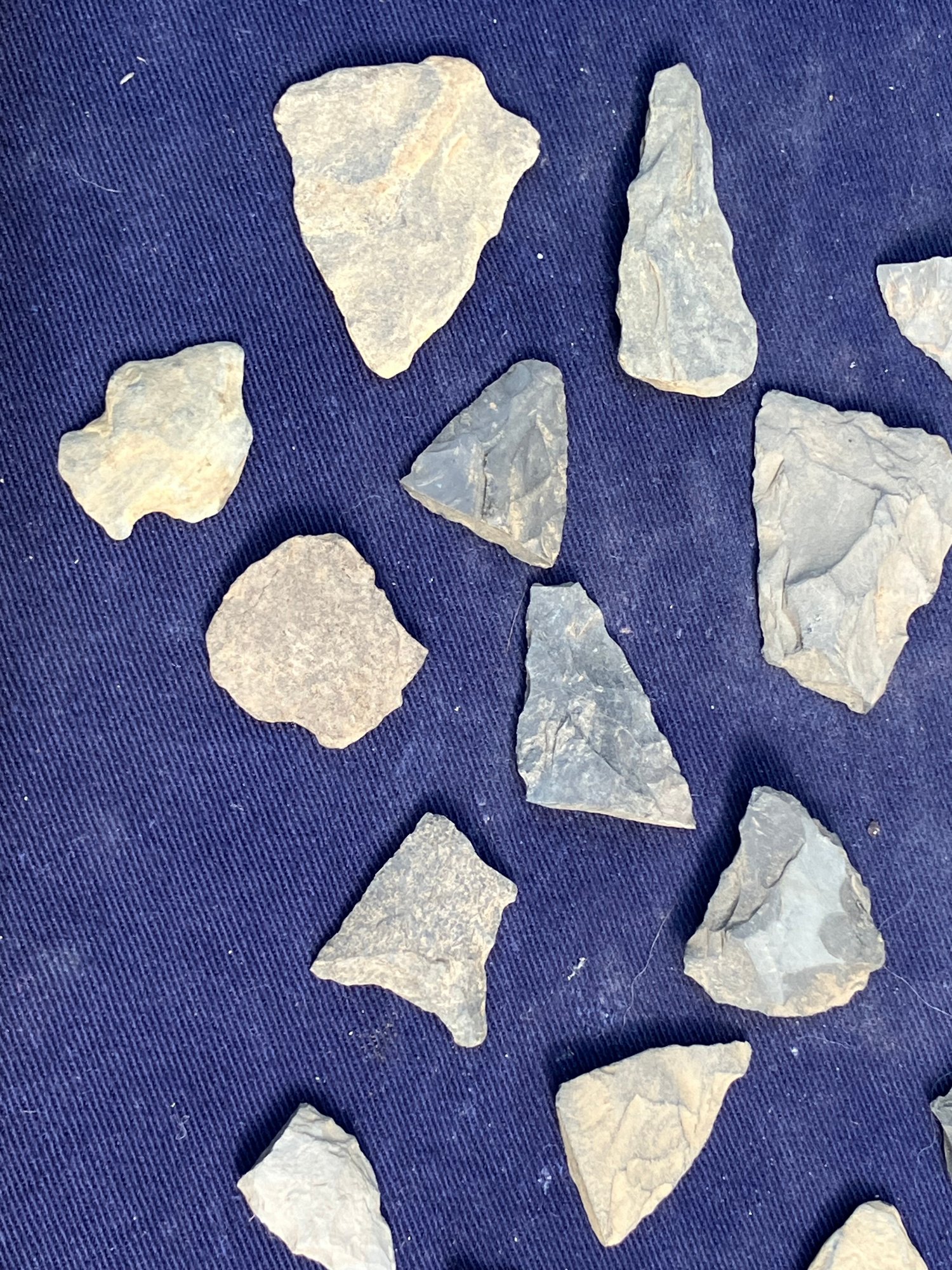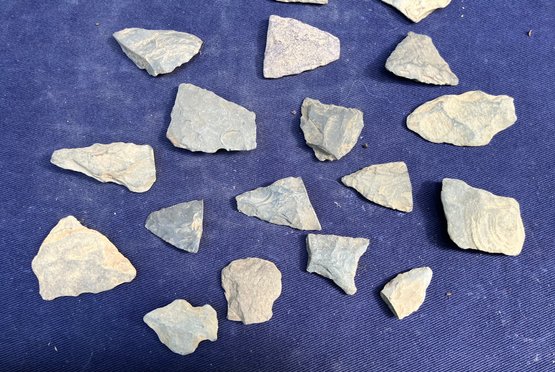 Found at a Native American dig site. Assortment consists of broken points and blades.