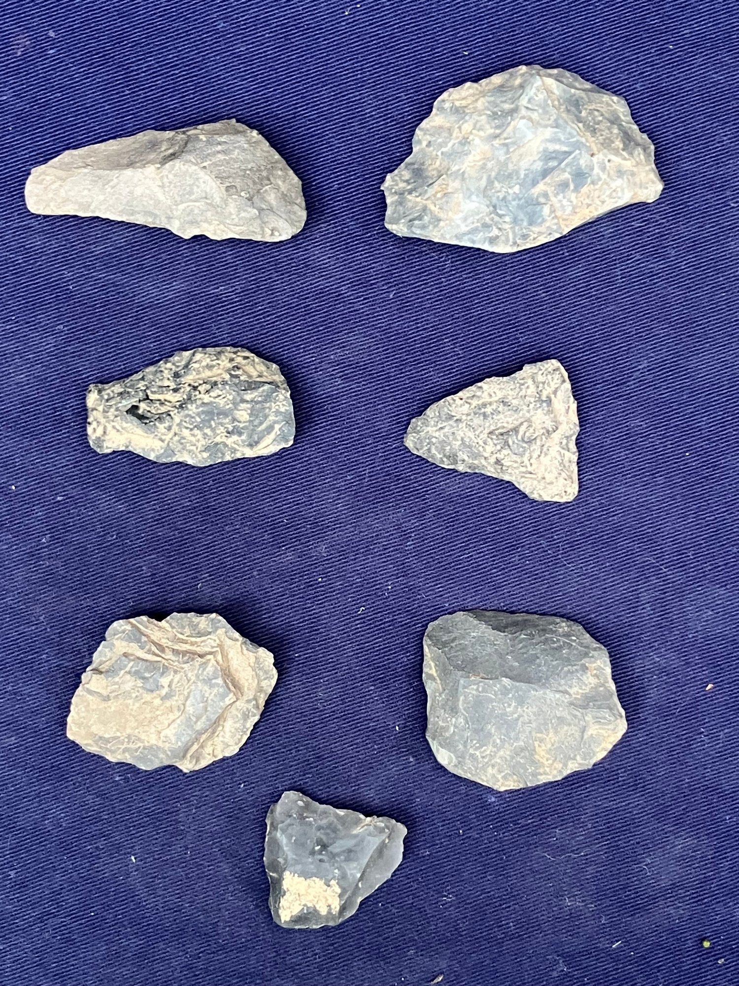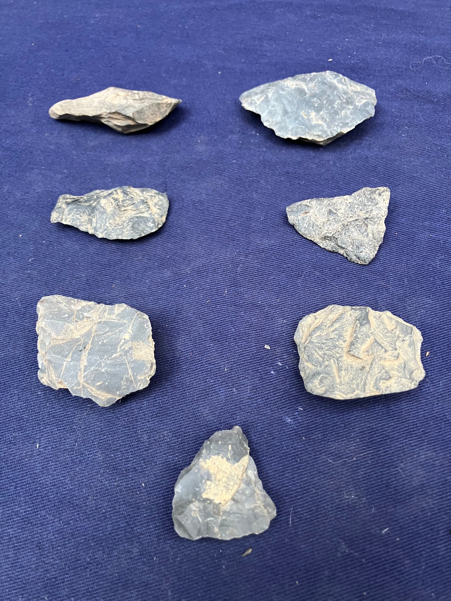 Found at a Native American dig site. Most are bi-facial and either flint or Chirt.