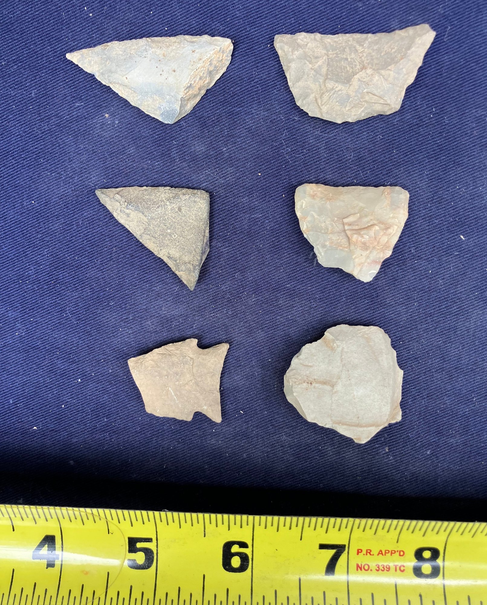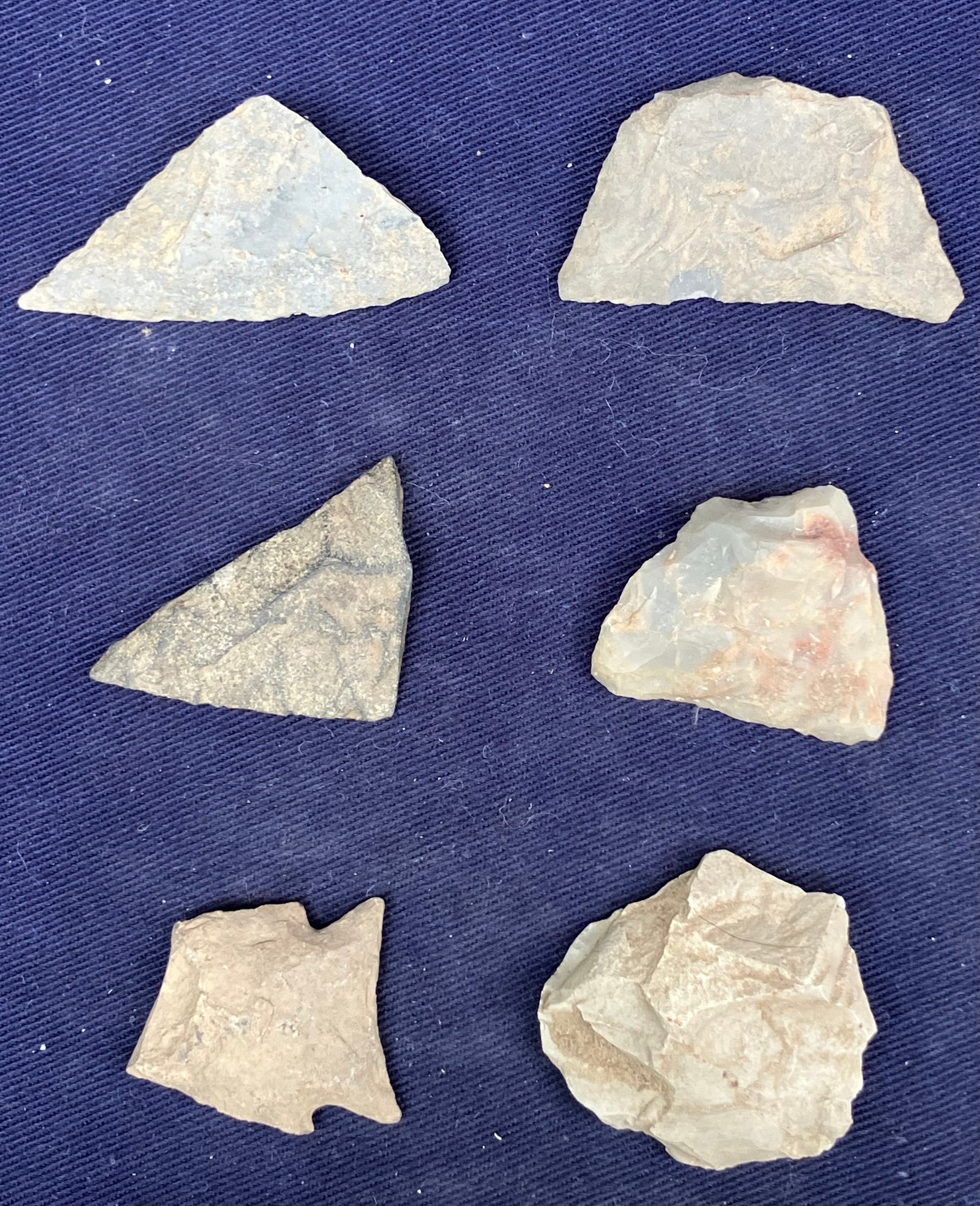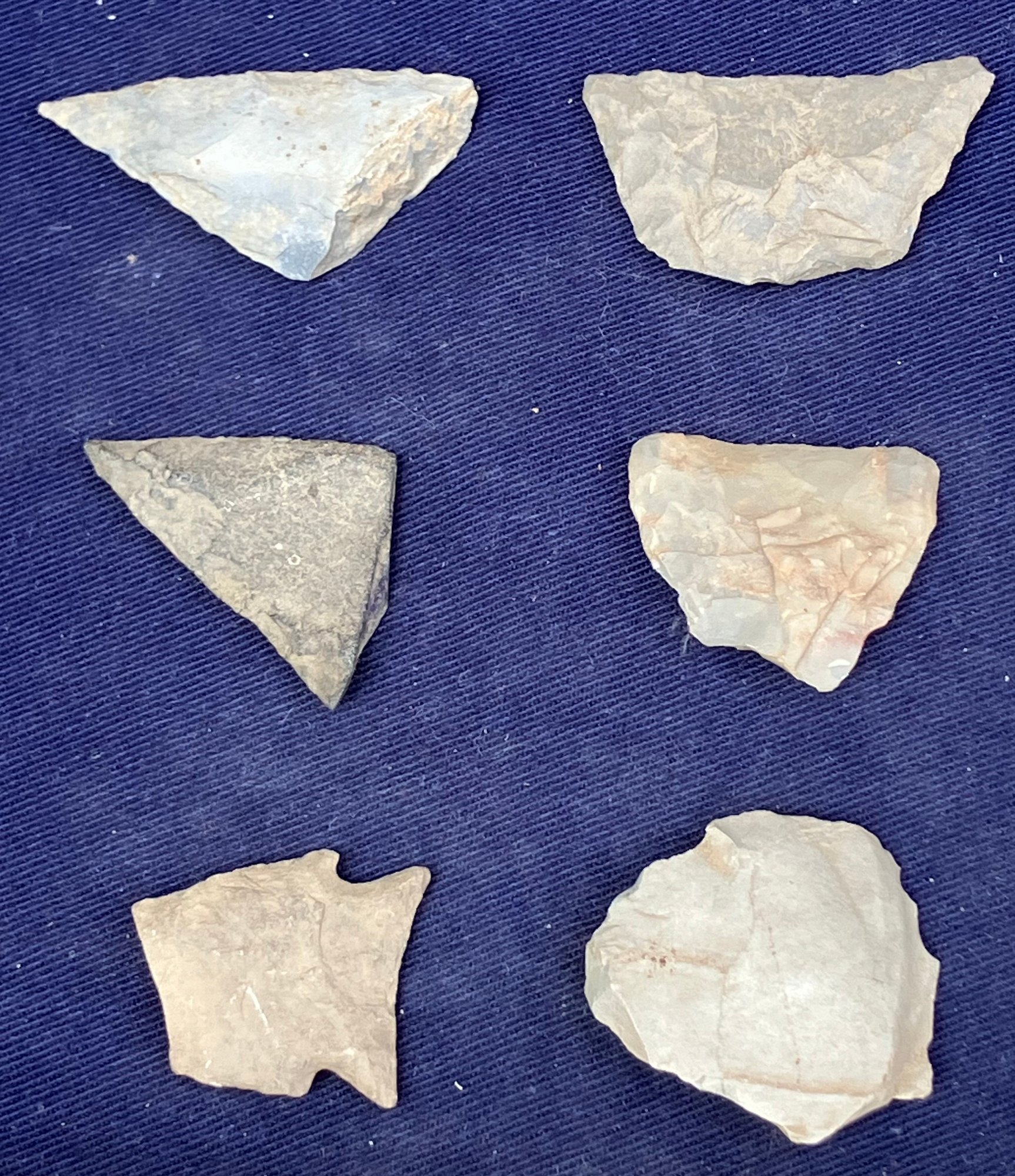 Found at a Native American dig site. Broken points have been repurposed as blades or scrapers.