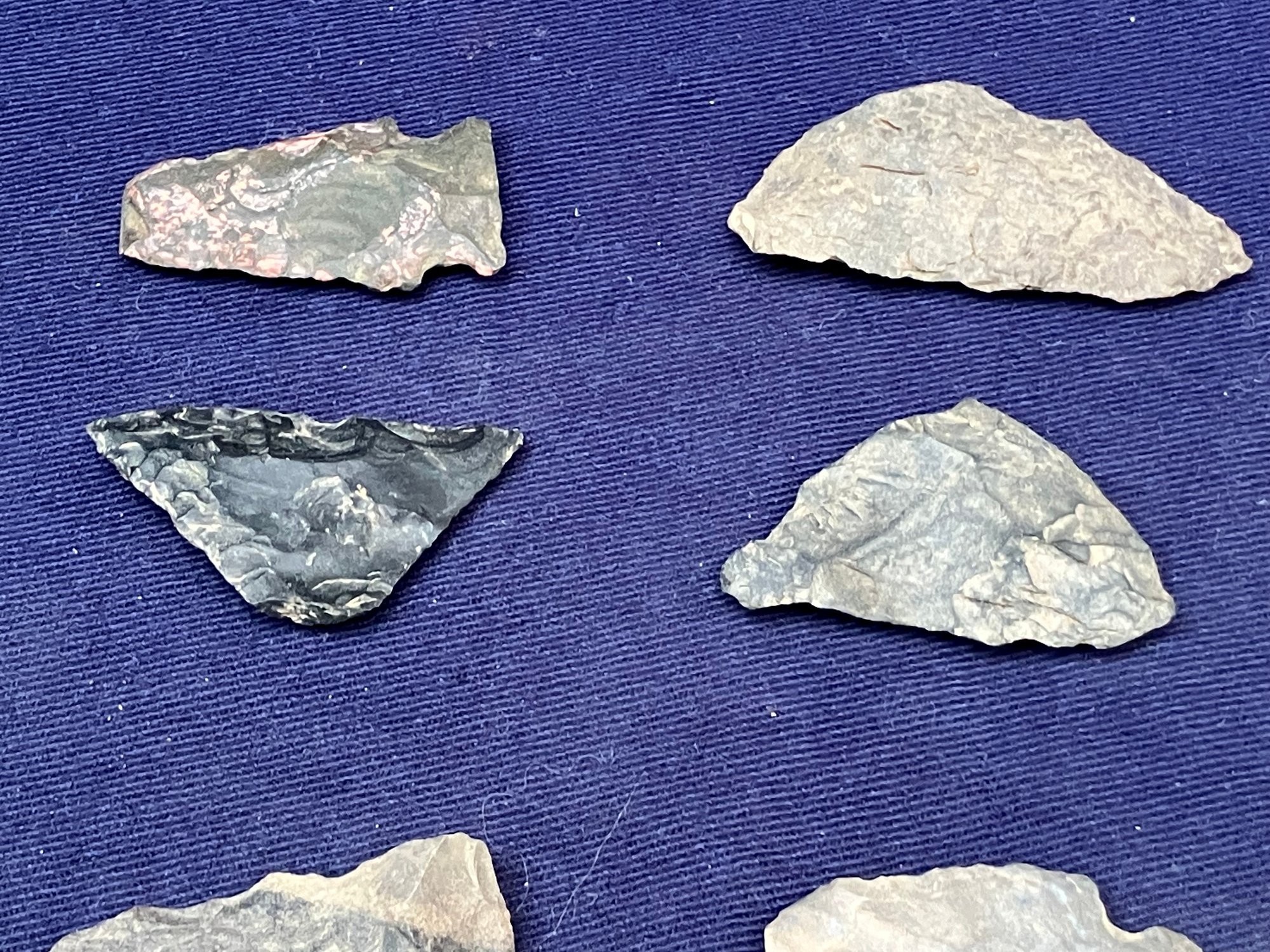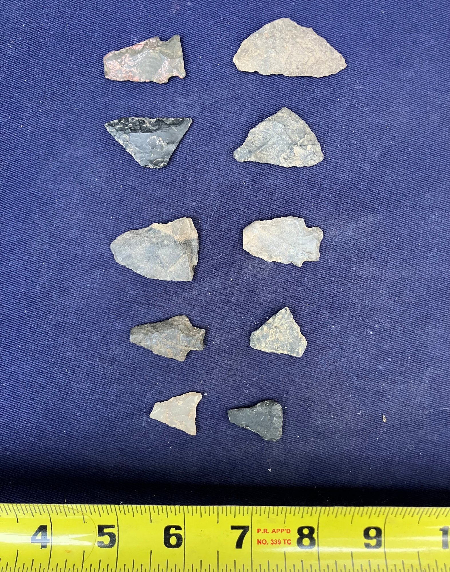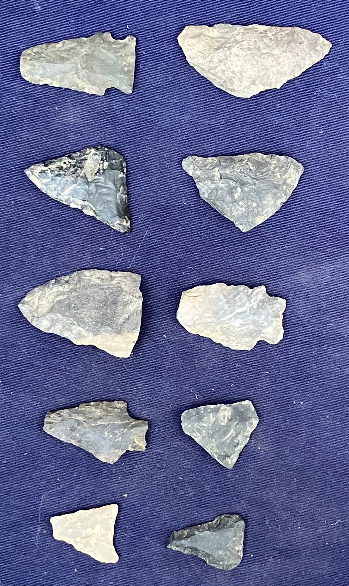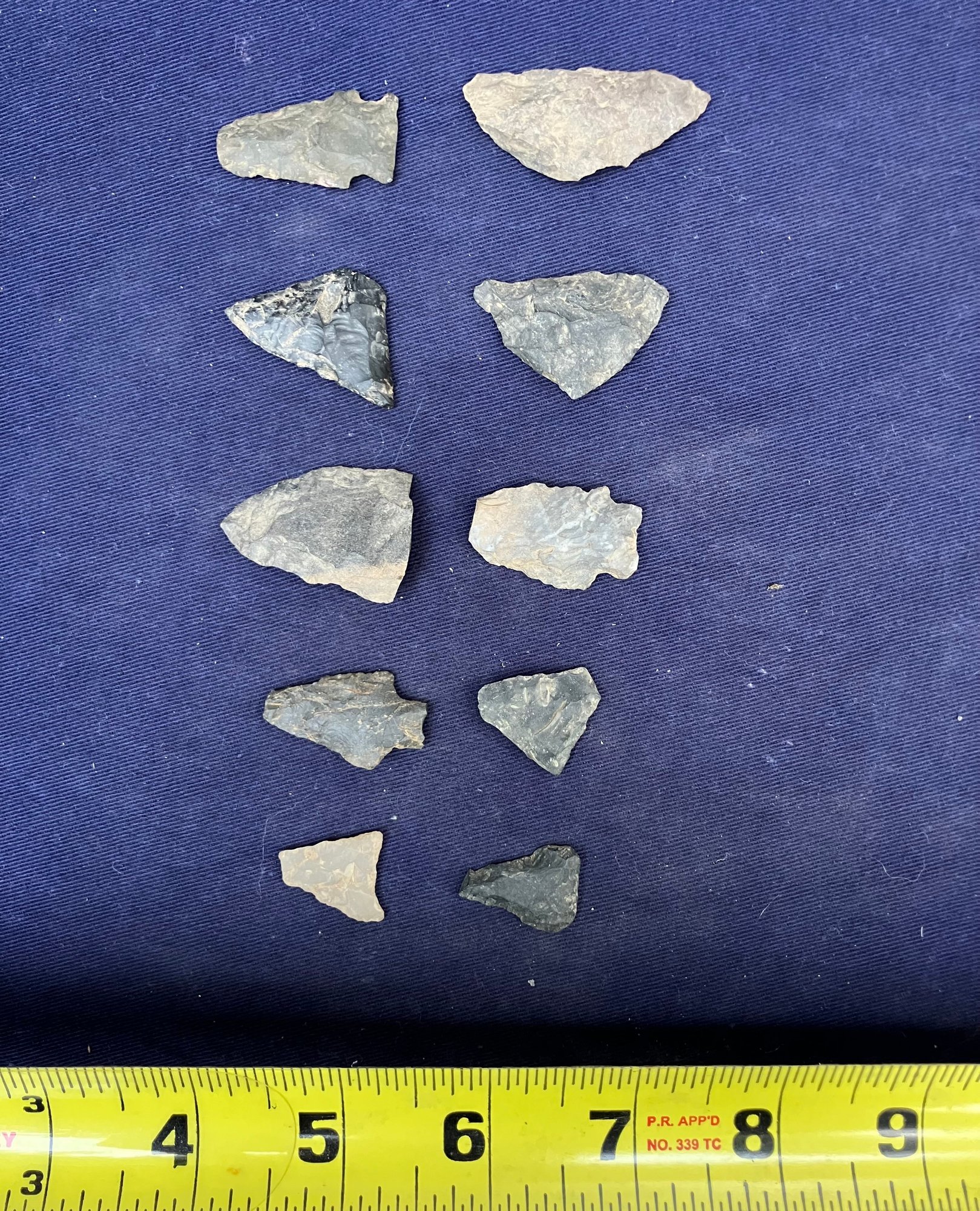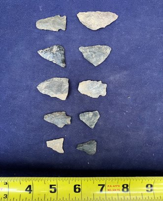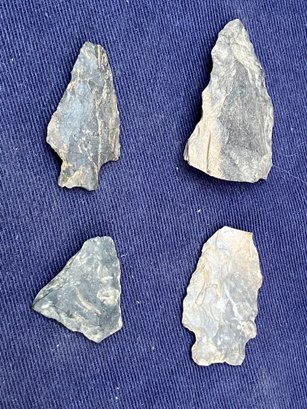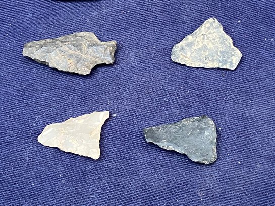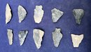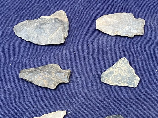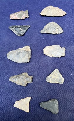 Found at a Native American dig site. Several have breaks at the point. Made from Chirt and flint.