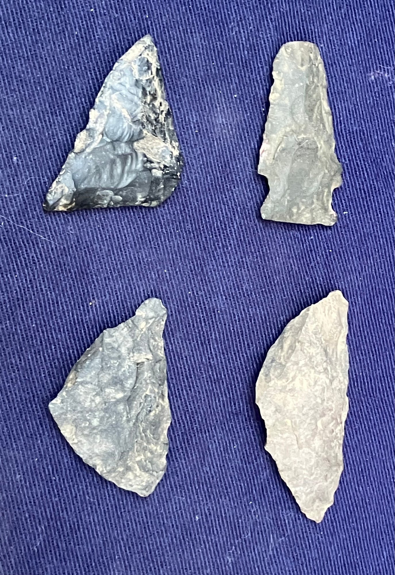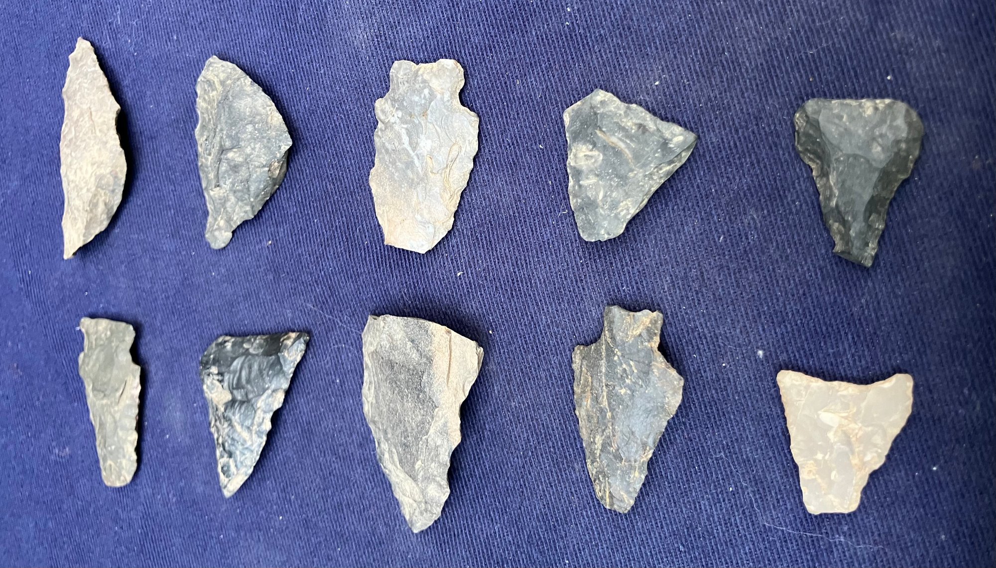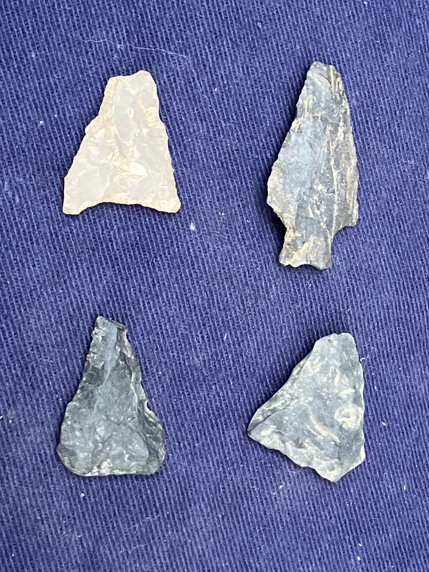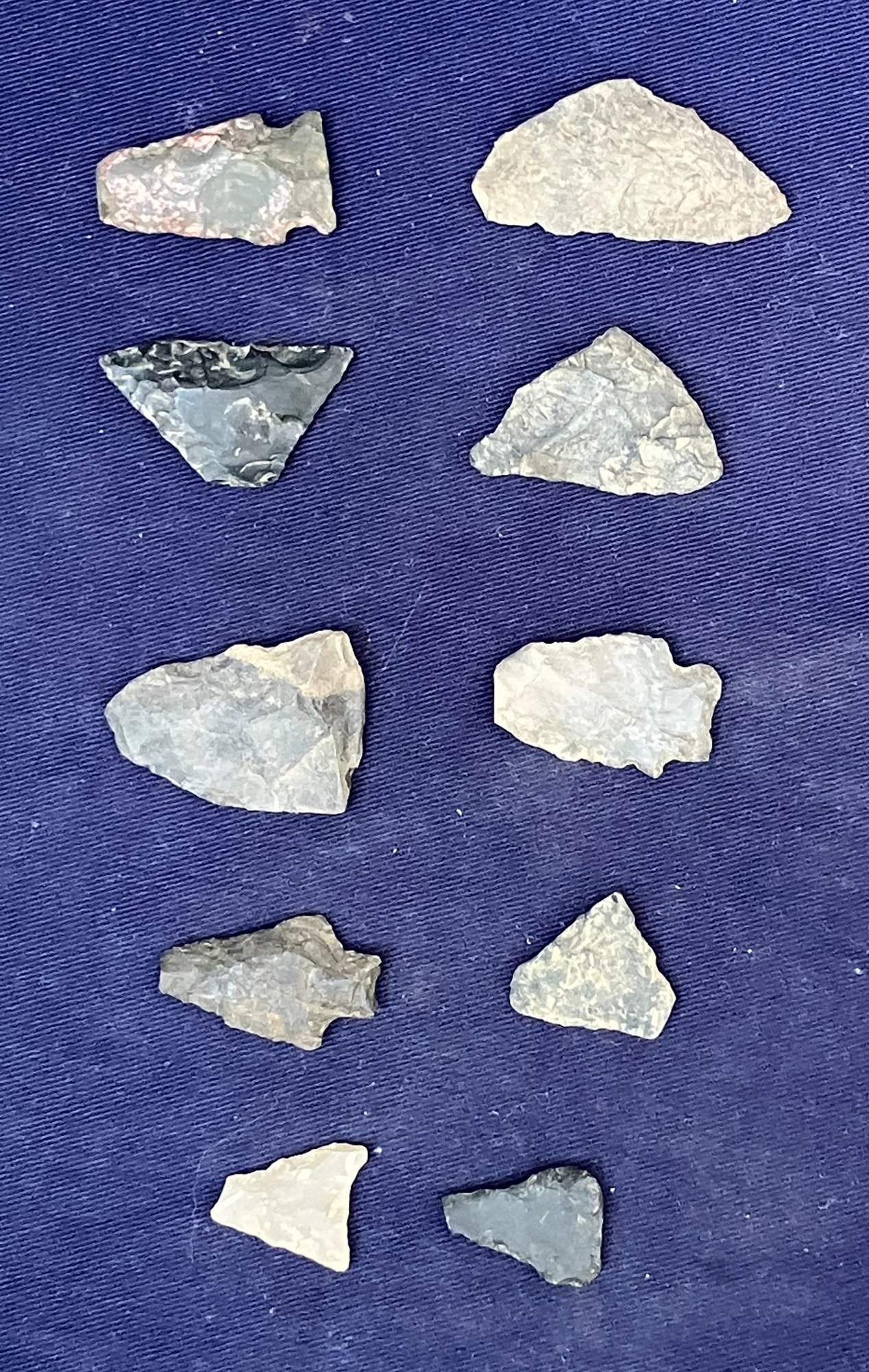 Found at a Native American dig site. Several have breaks at the point. Made from Chirt and flint.