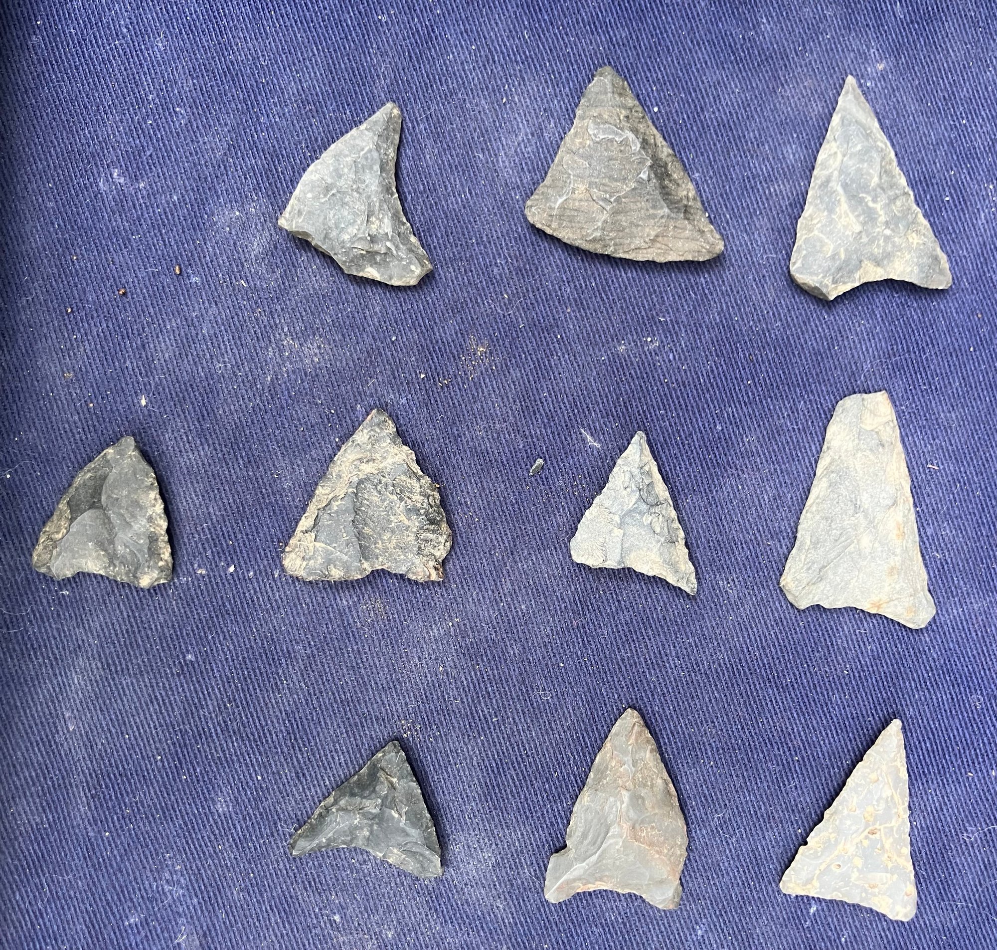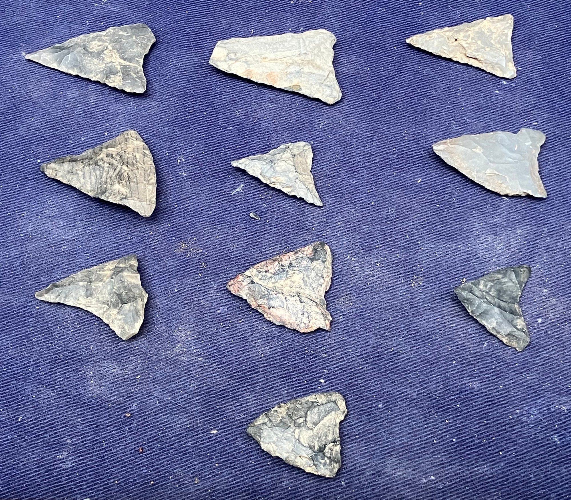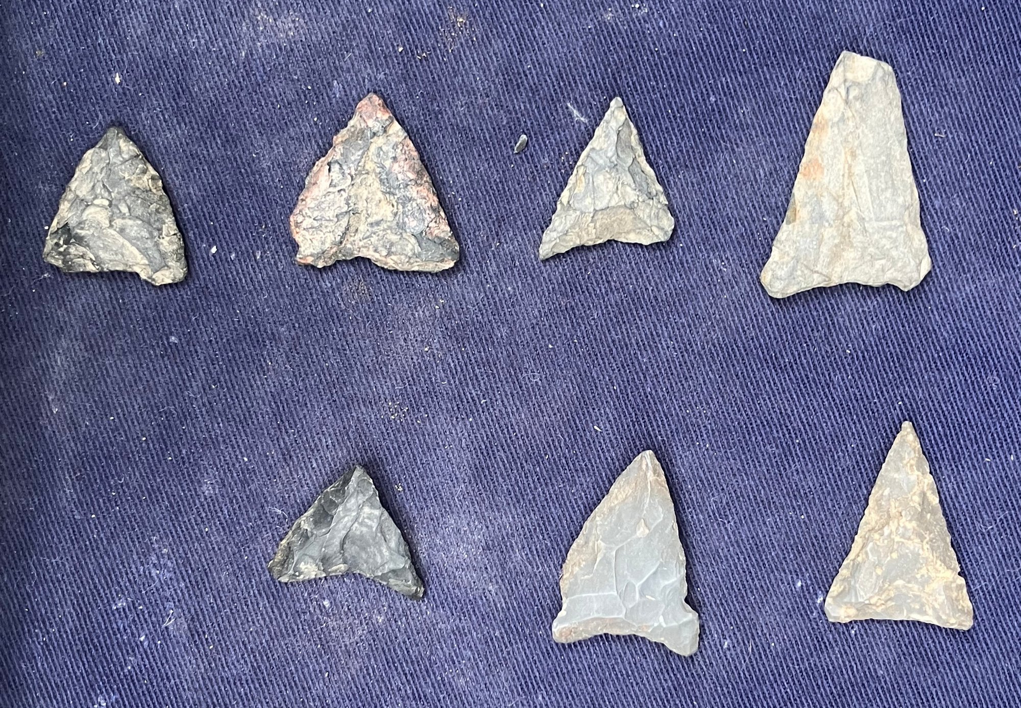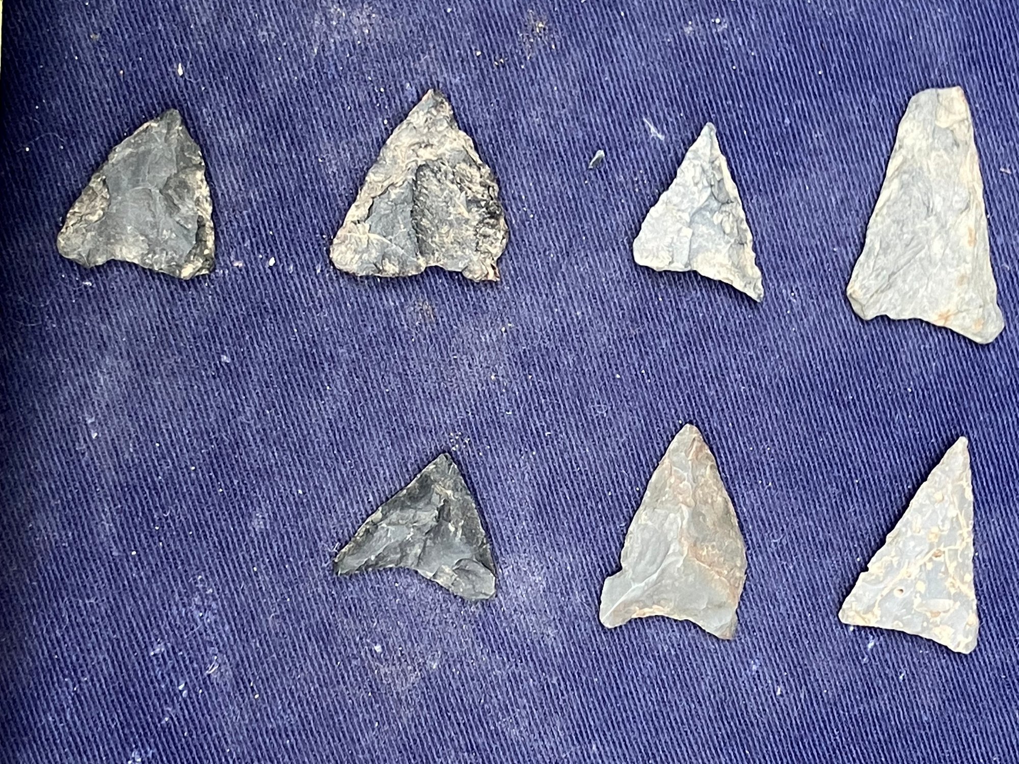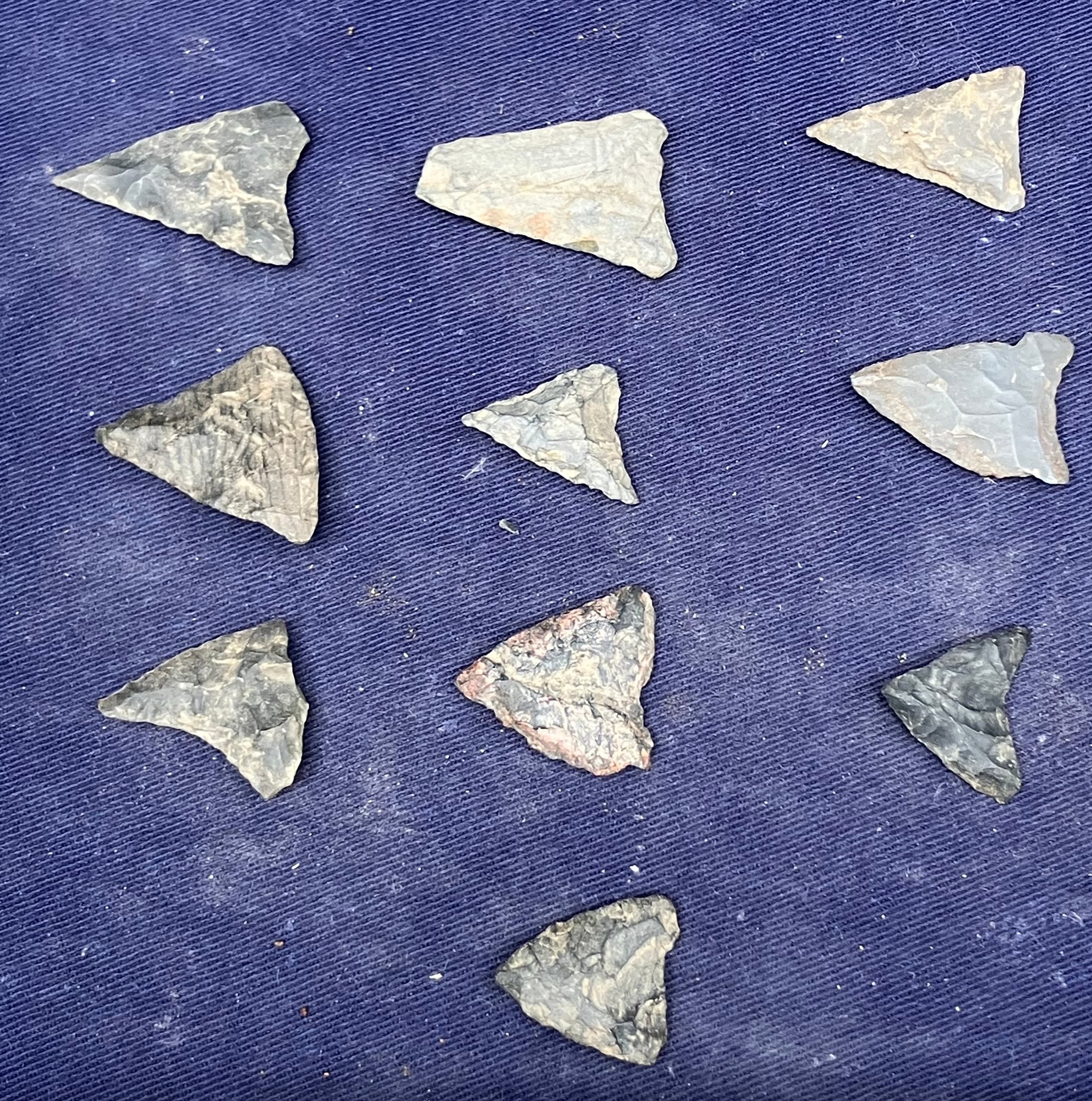 Found at a Native American dig site. They are bi-facial and made from flint and Chirt.