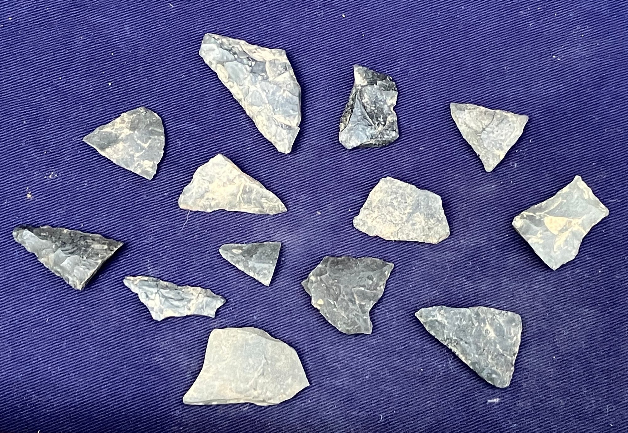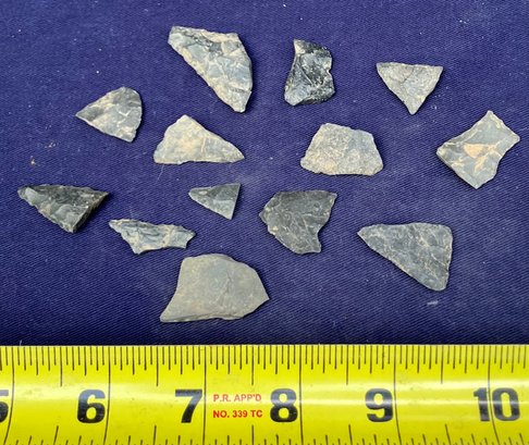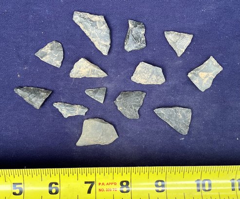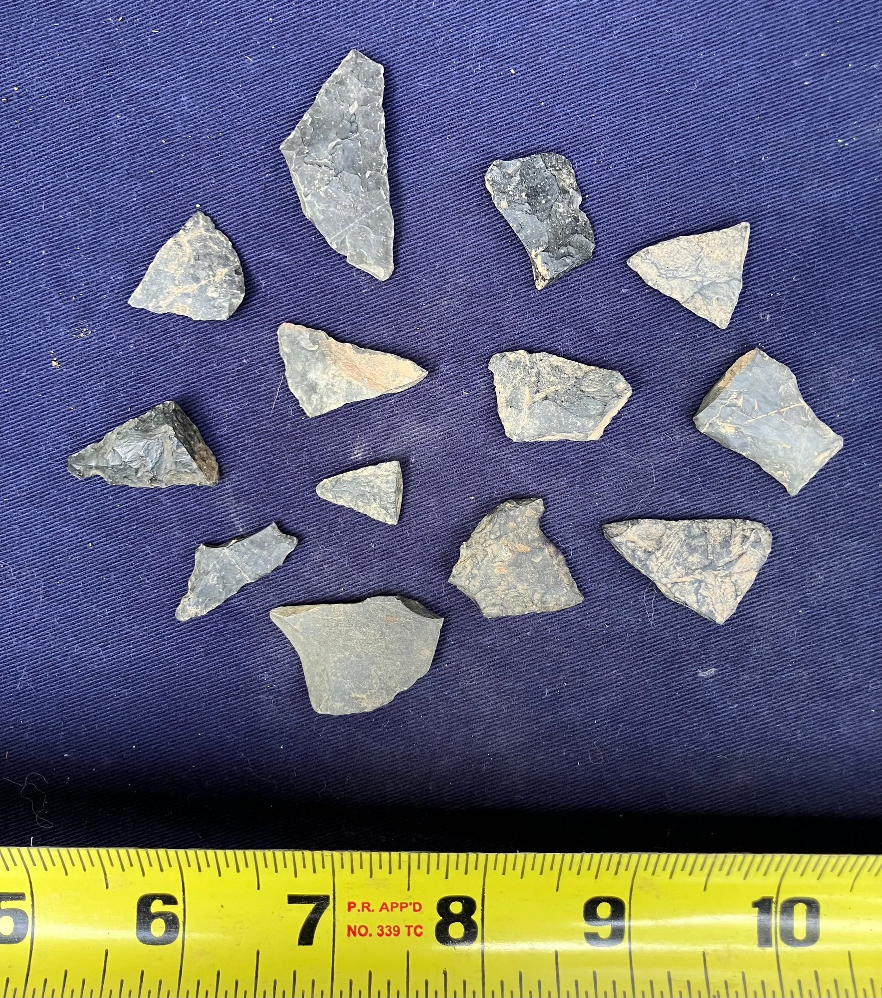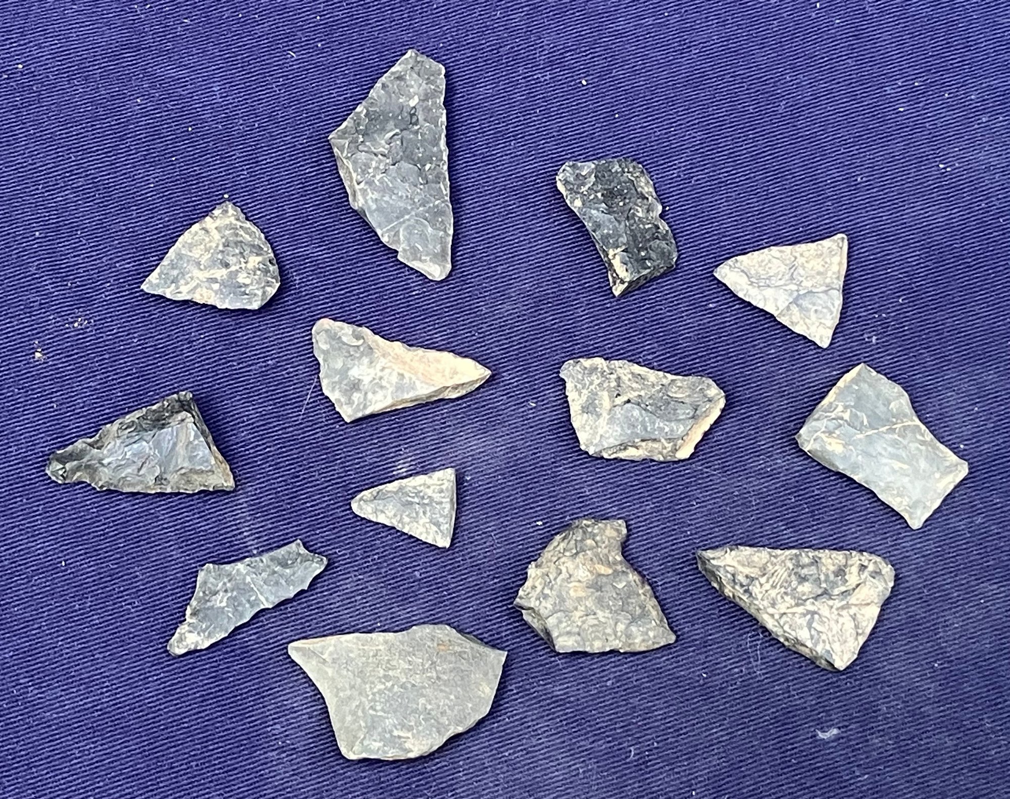 Found at a Native American dig site. Assortment of broken projectile points, tools and/or flakes.