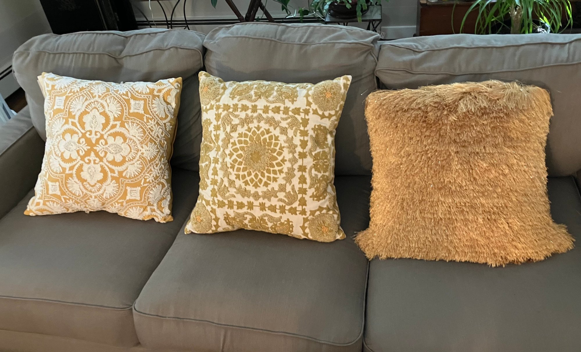 Assortment of three accent pillows. Dimensions: 20” square. Good condition.