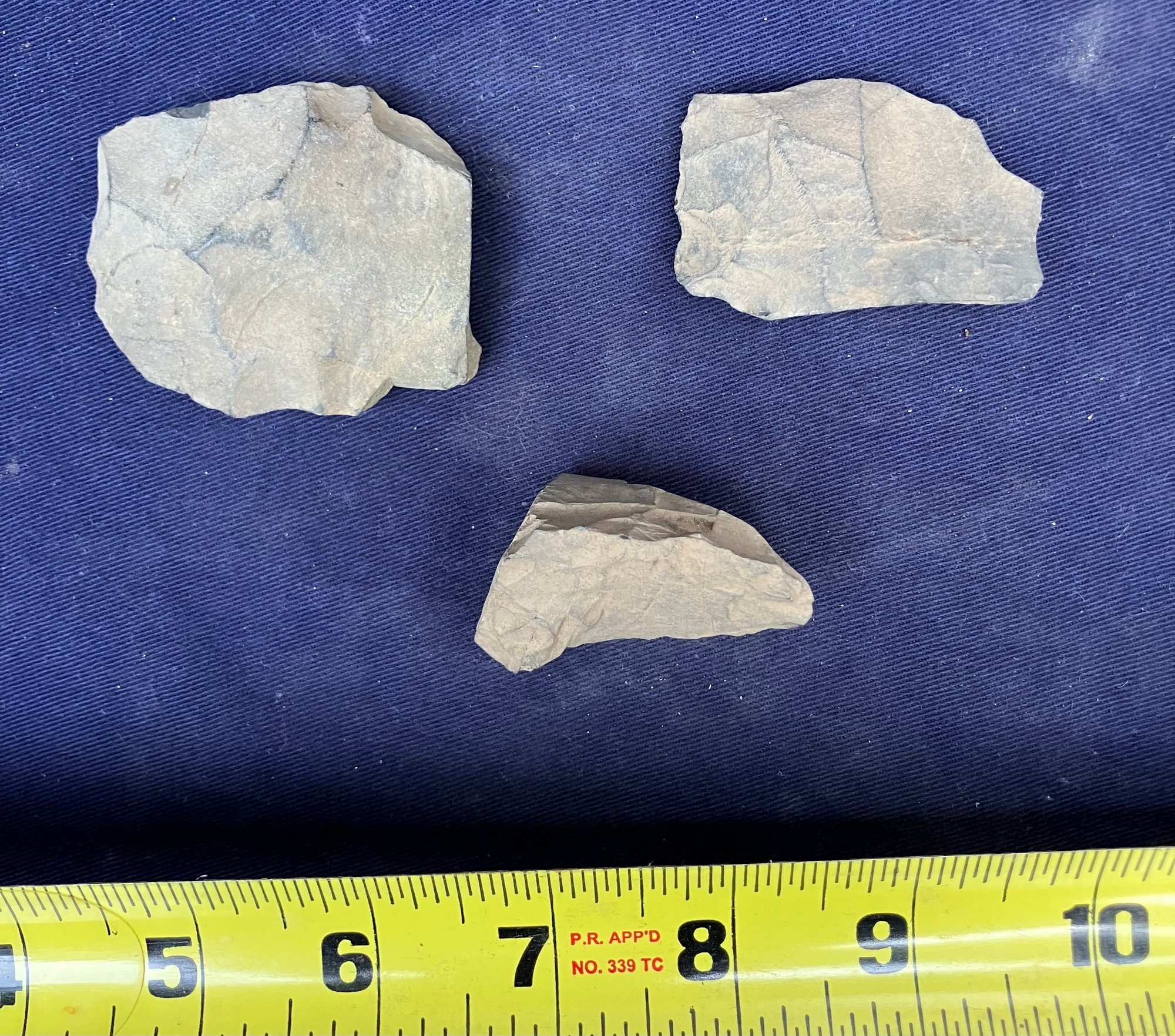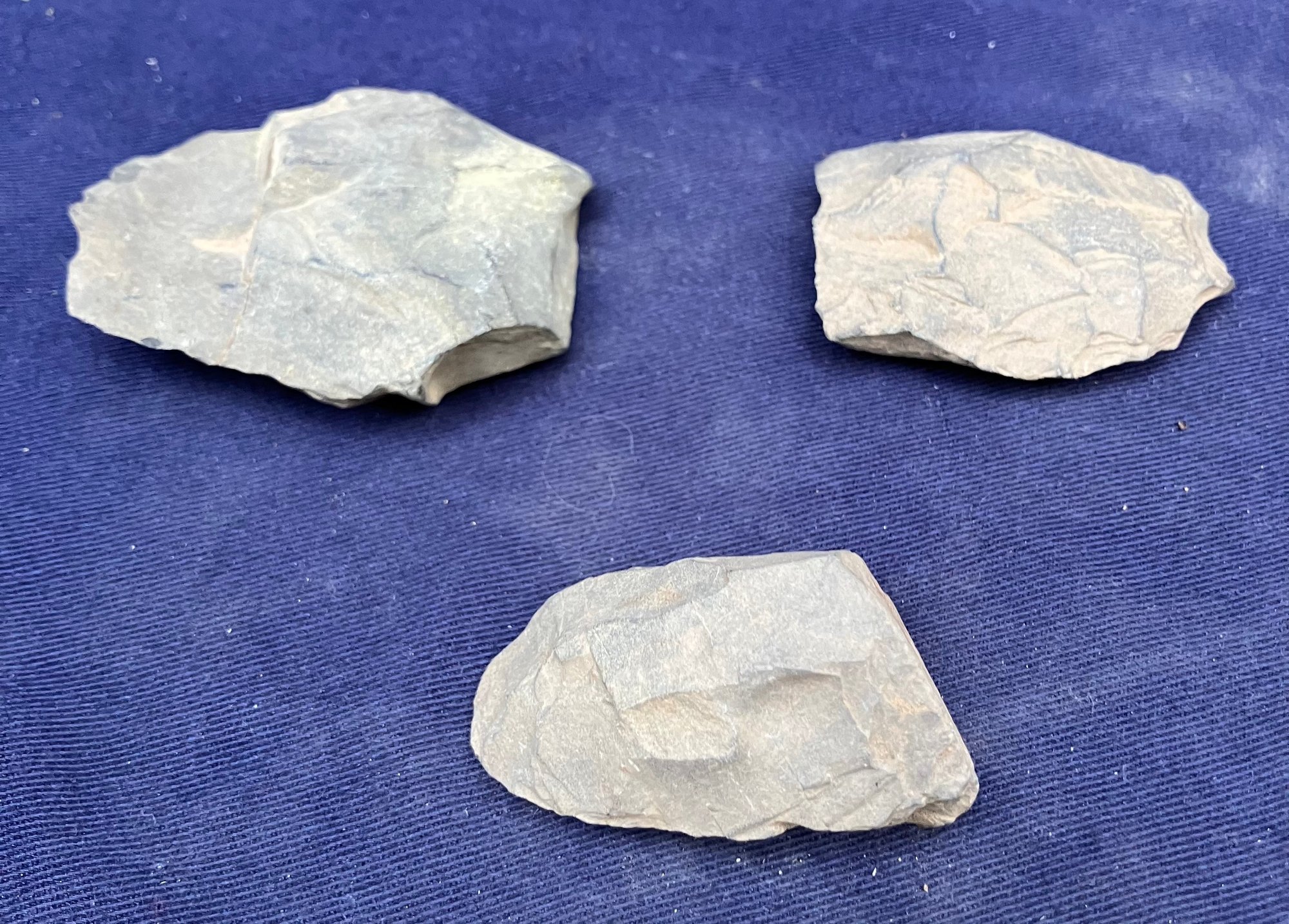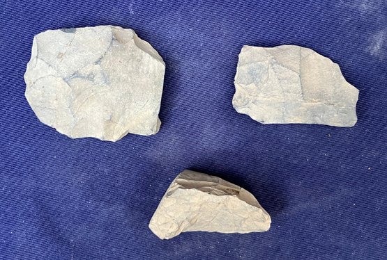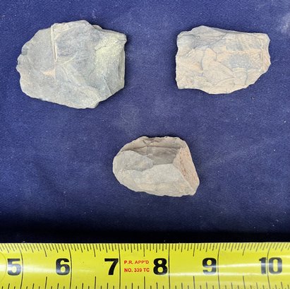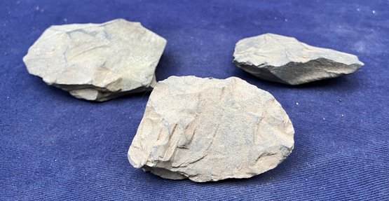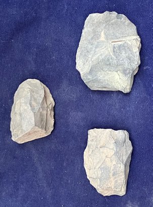 Found at a Native American dig site. Two are bi-facial and one is Omni-facial. They are cutting tools or scrapers.