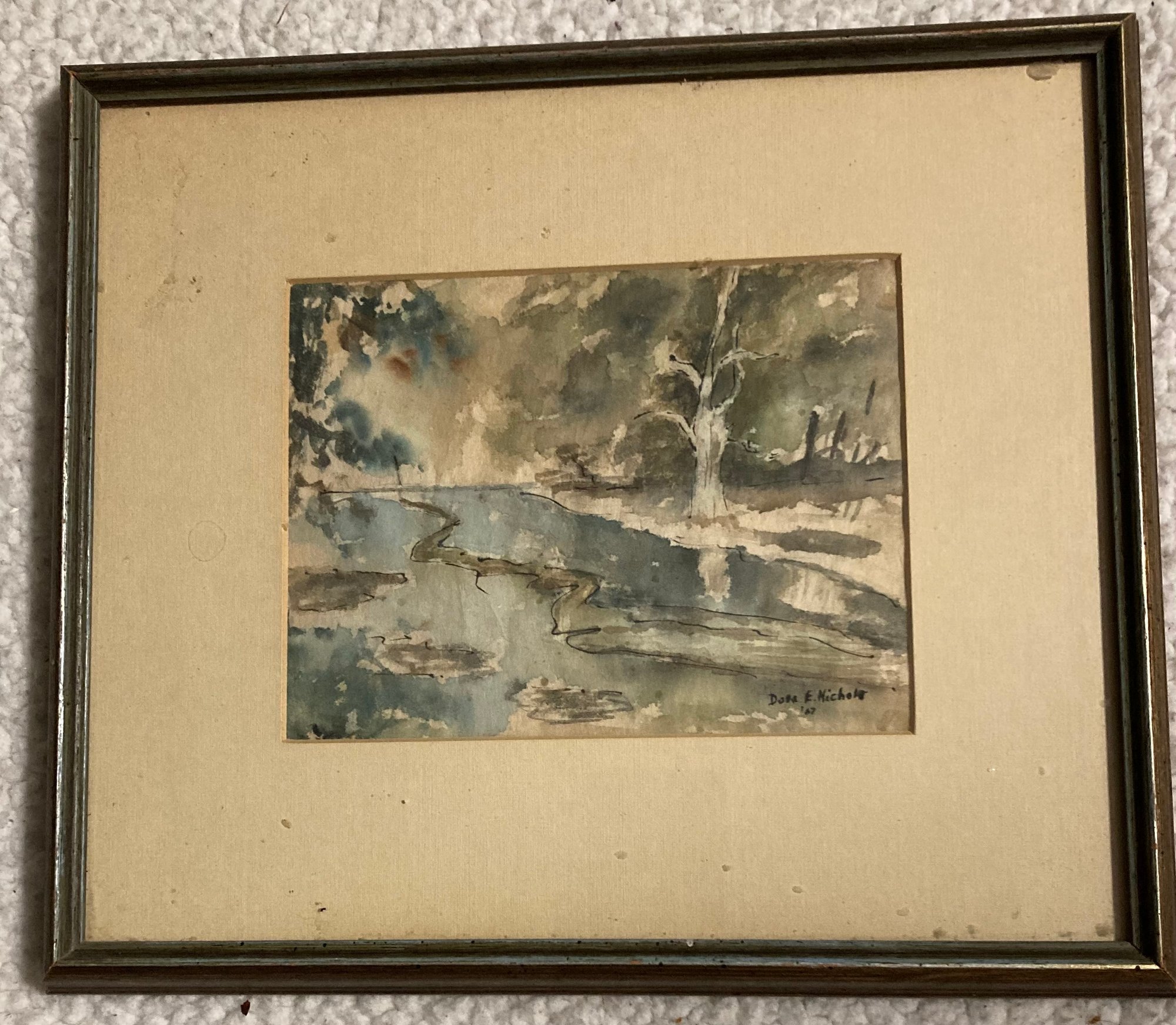 Pastel Watercolor By Dora E. Nichols circa ‘67. Dimensions are: 5“ X 6.5”. Fair to good condition.