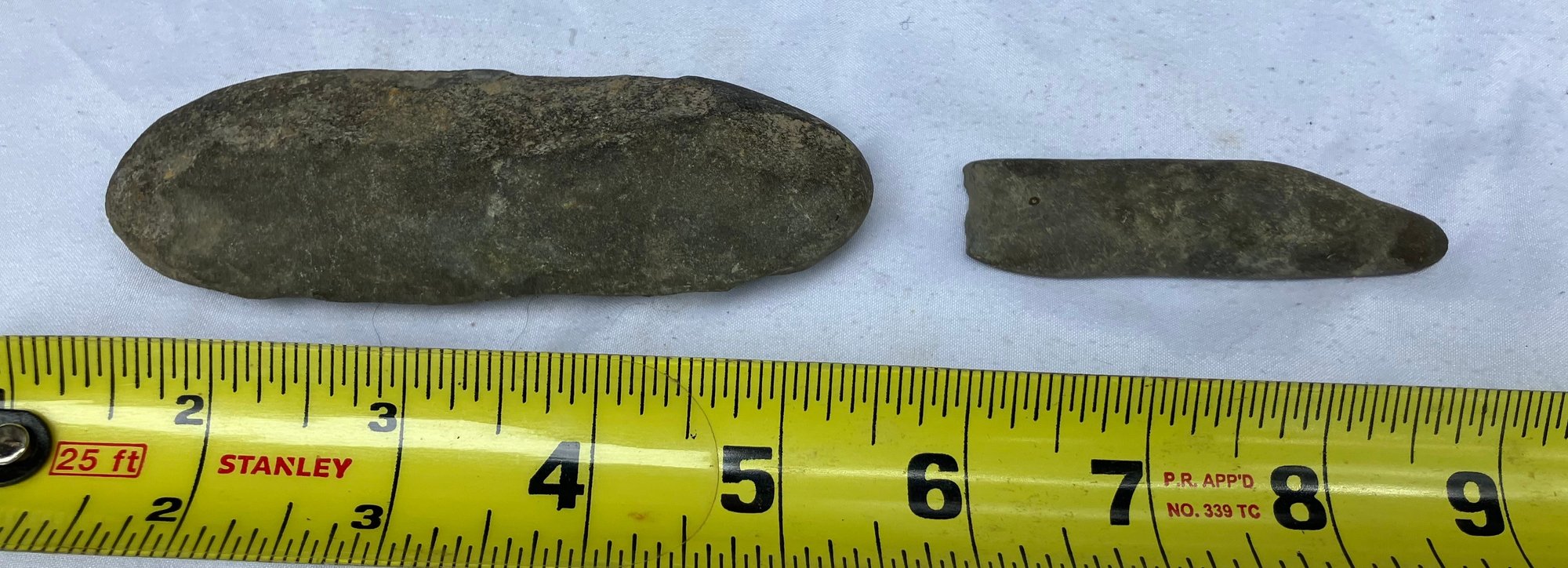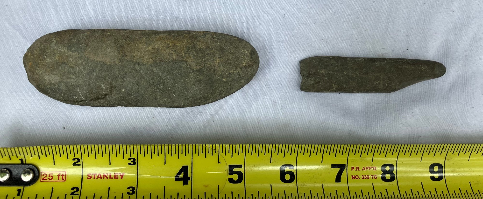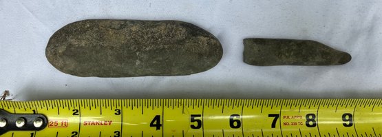 Found at a Native American dig site. Two grinding/sharpening tools. Worn from use.