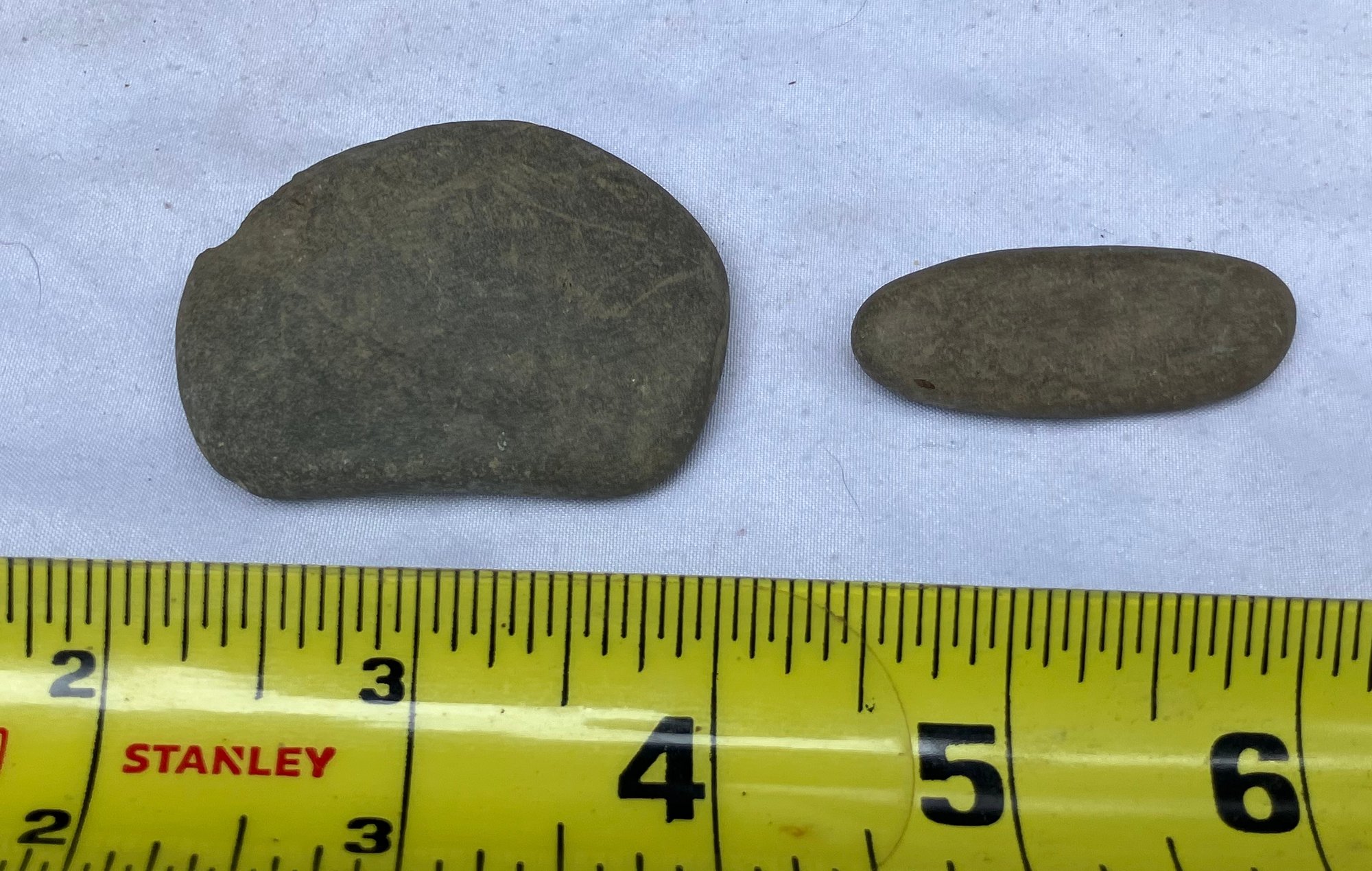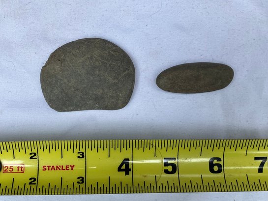 Found at Native American dig site. The larger one is a nice stone bowl. The smaller one is a sharpening stone or a grinding stone.