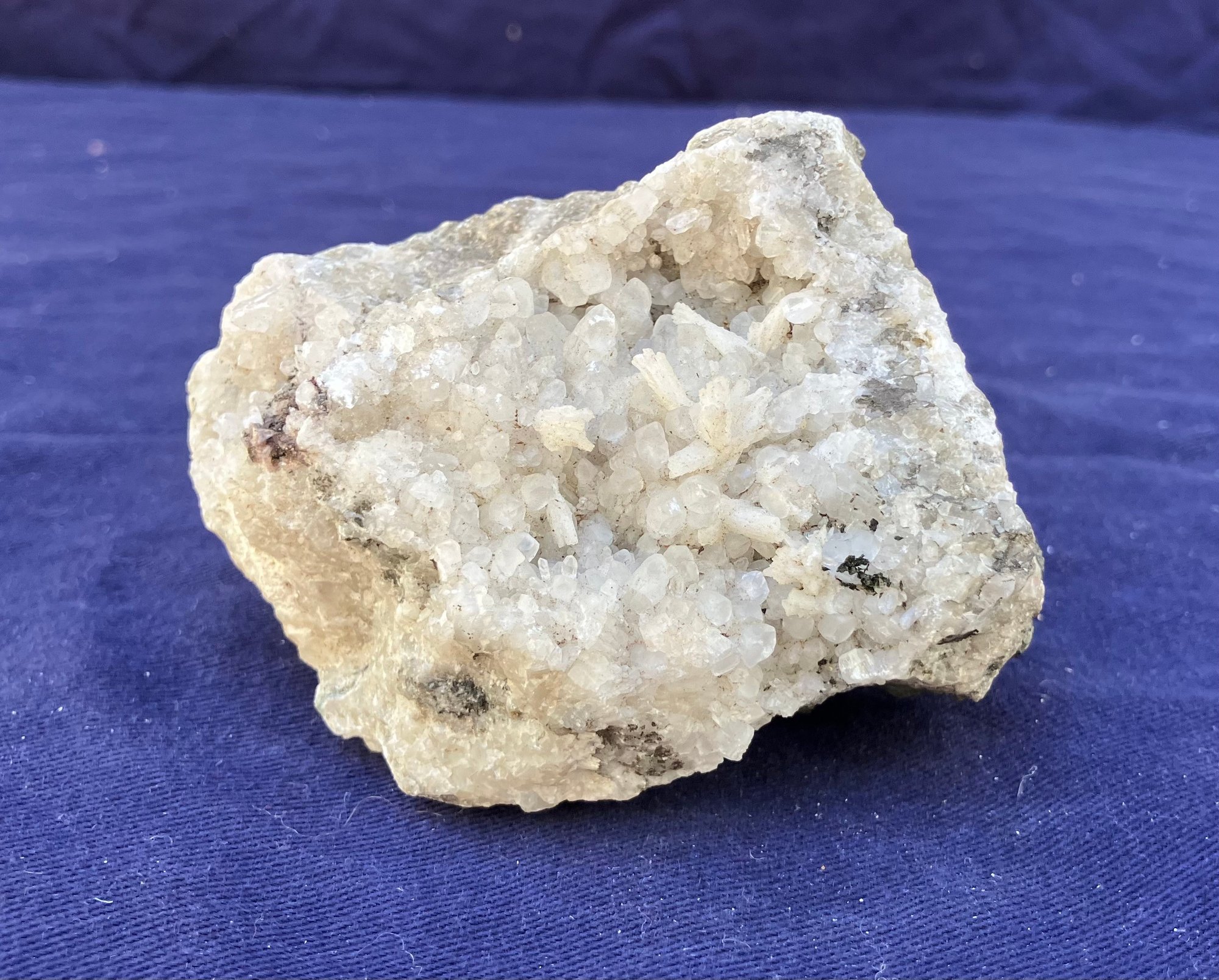 Calcite stilbite Crystal cluster in matrix. Measures: 2” tall x 2 1/2” wide x 3 1/2” long. Weighs: 1.5 ounces.