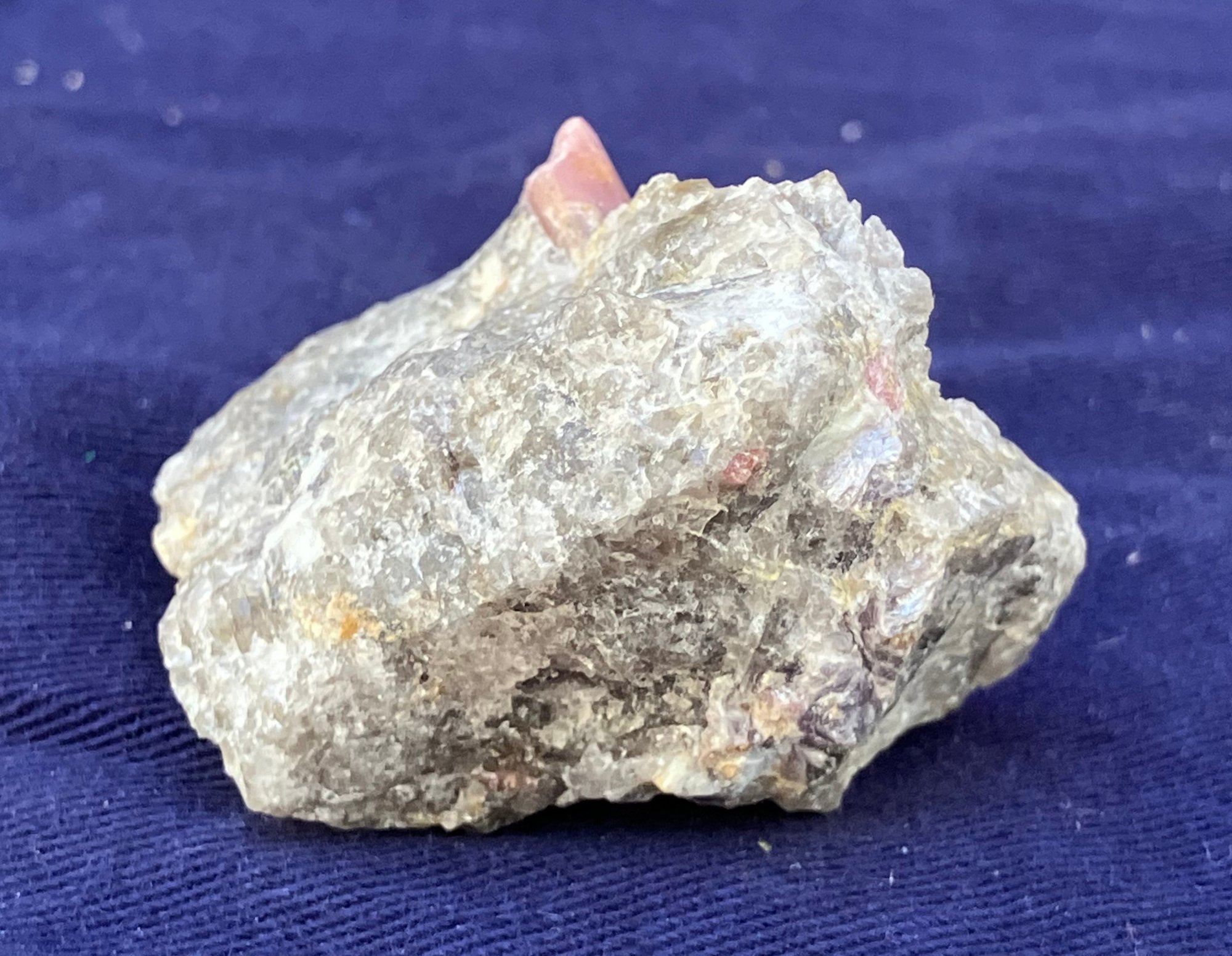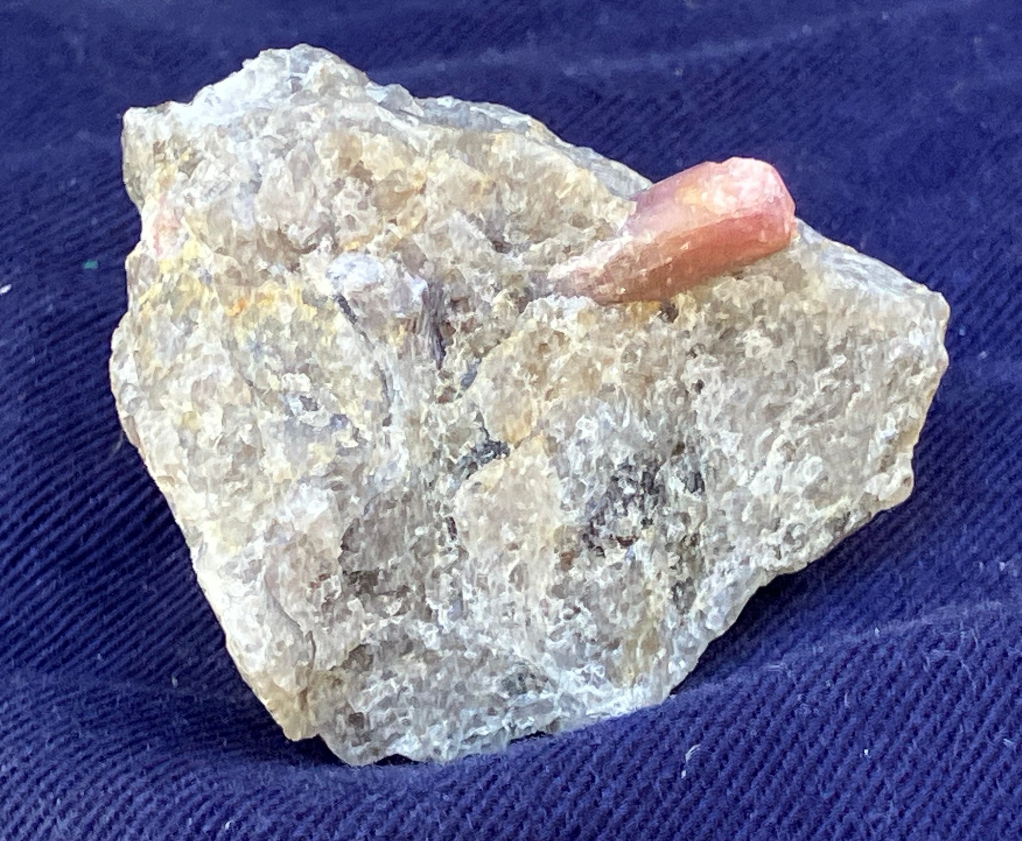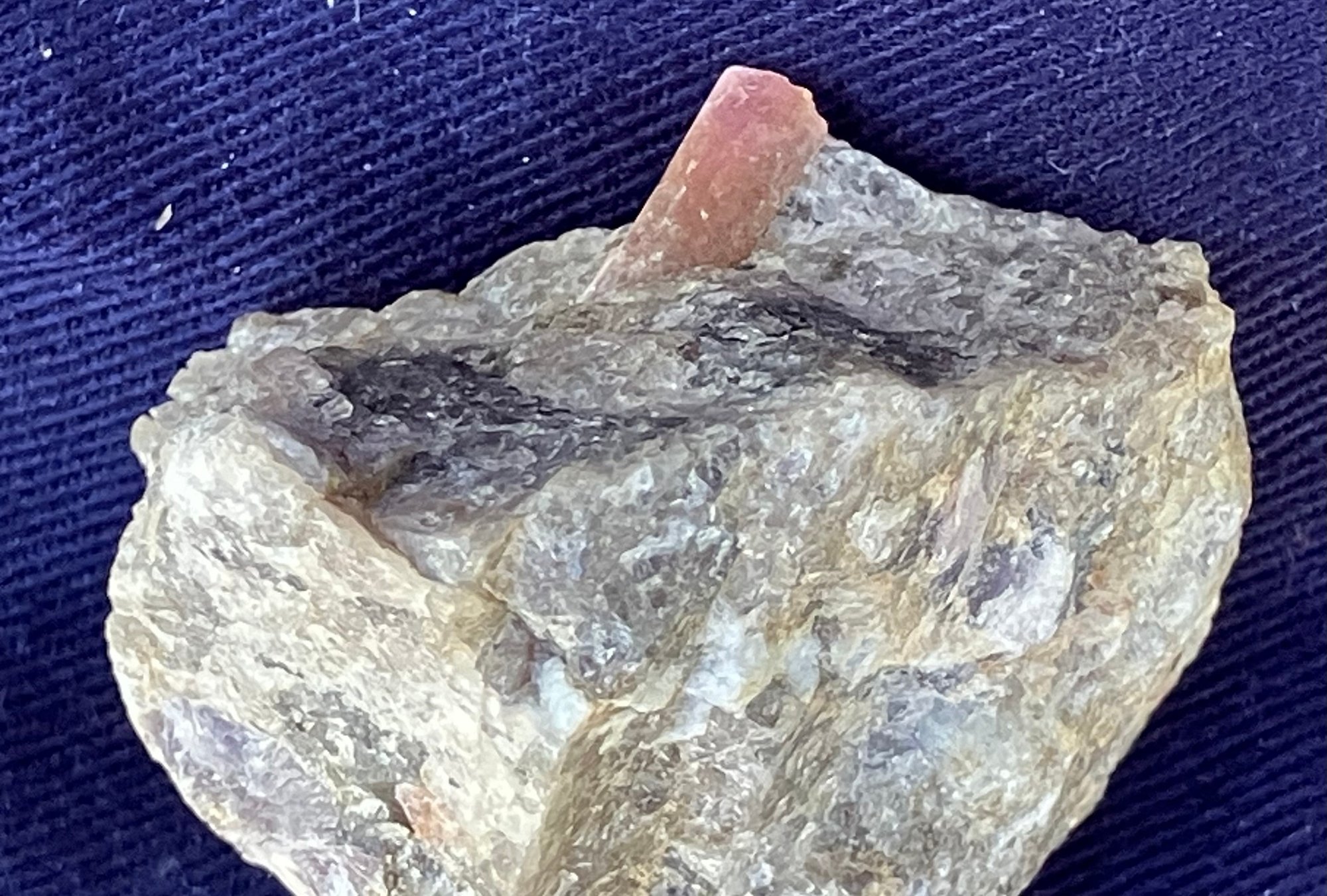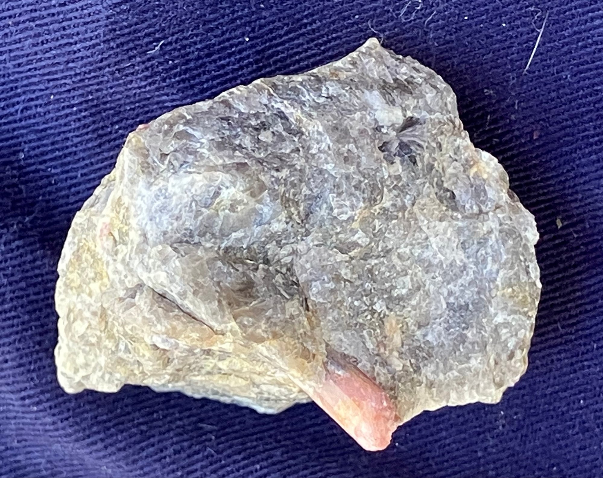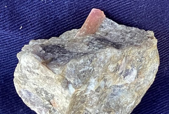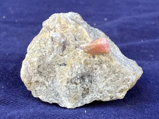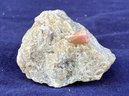Pink tourmaline crystal in quartz matrix. The crystal is approximately 3/16 in diameter. Measures: 1 1/8” tall x 1 1/2” wide x 1 3/4” long. Weighs: 1.6 ounces.