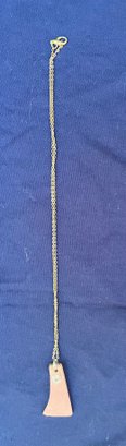 Catlinite & Blue Tooaz Tomahawk Necklace. Catlinite is a sacred pipe stone of Native Americans. Measures: 11” Long. The pendant is: 1” wide x 1 1/2” long.