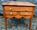 Cherry side table with drawer. There is a matching table also up for auction. Some water damage to the top. Dimensions are: 23 1/4” tall x 26 1/2” wide x 26” deep.